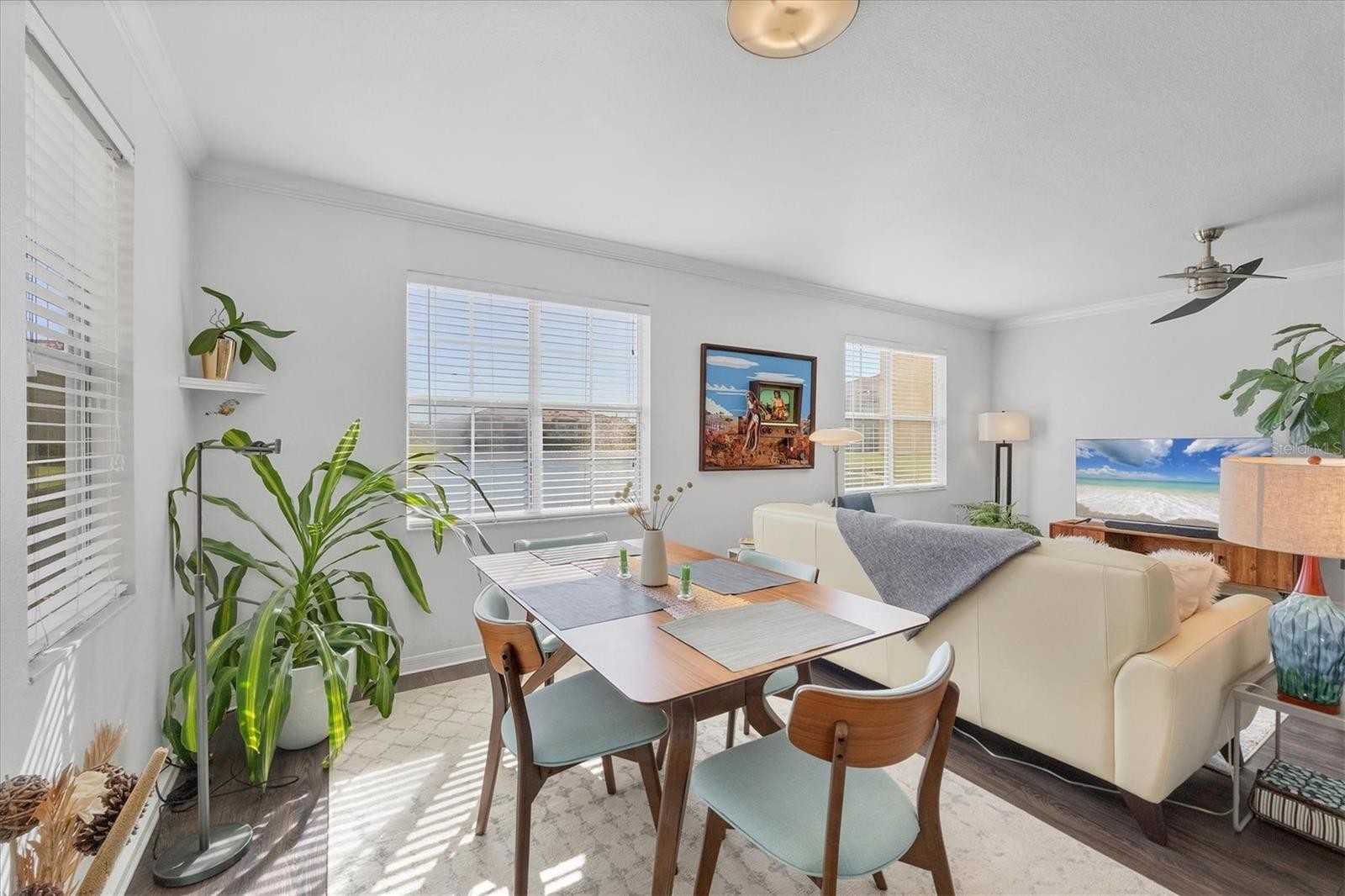 Welcome to this charming and meticulously maintained 2-bedroom, 2-bathroom condo with breathtaking water views. This home has been thoughtfully updated with modern finishes and is centrally located within the highly desirable, gated Villagio Condominiums, close to downtown Sarasota. Beautiful pond views greet you as you enter this corner unit, that is conveniently located on the first floor. Inside, you will find modern laminate flooring, paired with a neutral paint palette in every room, creating a clean and inviting atmosphere. Updated fans and light fixtures give the unit a modern touch. The spacious living area is enhanced with crown molding and large windows that allow plenty of natural light to flood the unit. Glass sliding doors lead out to your covered patio, where you can sip a cup of coffee while the serene pond views and Florida's wildlife mesmerize you. Enjoy hosting and cooking in your open concept kitchen with wood cabinetry, stainless steel appliances, gleaming granite countertops and a breakfast bar counter, perfect for casual dining or entertaining guests. Your primary bedroom is completed with a spacious walk-in closet that will hold all your possessions and then some. The ensuite bathroom is fully updated with a nicely tiled garden tub, plenty of storage space and beautiful granite countertops. The guest bedroom is located on the opposite side of the unit, giving you some privacy. There is plenty of storage with dual closets and two windows keep the room nice and bright. The guest bathroom has a tub shower combo and plenty of countertop space. Just off the entrance is an office nook, which will help you keep all your office gear organized. A custom glass door allows you to keep it private, without feeling too enclosed. You will also appreciate the practical laundry closet with high end front load washer and dryer, adding to the home's overall convenience and functionality. The gated community boasts an array of amenities, including a clubhouse with a fitness center, a heated resort-style pool, a tennis / pickleball court and a fenced in dog park. The community had all the buildings painted in 2024 and all the roofs replaced in 2021. Despite recent hurricanes the community has stood strong without any damage to any of the buildings or any flooding ever reported on their grounds. Discover the convenience of living close to downtown Sarasota, marinas, and the Baltimore Orioles' spring training home at Ed Smith Stadium. Lido Key's & Siesta Key's pristine beaches are just a short distance away, while the Sarasota/Bradenton International Airport ensures easy travel. You'll also find a variety of delicious restaurants close by. Whether you are looking for a full-time home, a winter escape or an investment property - Call today to schedule your showing or virtual tour.