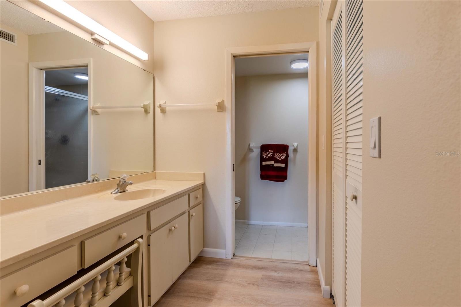 GREAT LOCATION, BEAUTIFUL VIEW, REFRESHED WITH NEW FLOORS, LIGHTING, PAINT, KITCHEN CEILING/LIGHTING, SMOKE ALARMS, RANGE, MICROWAVE AND DISHWASHER. Here's your opportunity to live the resort lifestyle in The Meadows, a wonderful golf course community offering 1650 acres of open space, over 85 ponds and lakes, and 14 miles of walking and bike trails. Whether you're looking for a full-time residence, seasonal escape from the harsh northern weather, or an investment for the future, this first floor unit is move-in ready and being offered furnished or unfurnished for the buyer's convenience. The living/dining area is open to the sliding doors and a screened-in patio with roll-down storm shutters and a peaceful view overlooking the pond and golf course. The primary bedroom is spacious, light and bright with windows to the pond and golf course and access to the screened-in patio by sliding doors. Easy access to the unit from your parking space right outside your door. Plus, the community has its own heated community pool/gathering area that overlooks the pond and golf course. Now's the time to make the move to this great community - close to I-75 and downtown Sarasota, Gulf beaches, University Town Center, the new Mote Marine Aquarium and Benderson Park. Don't just take a vacation - live every day like you're on vacation!