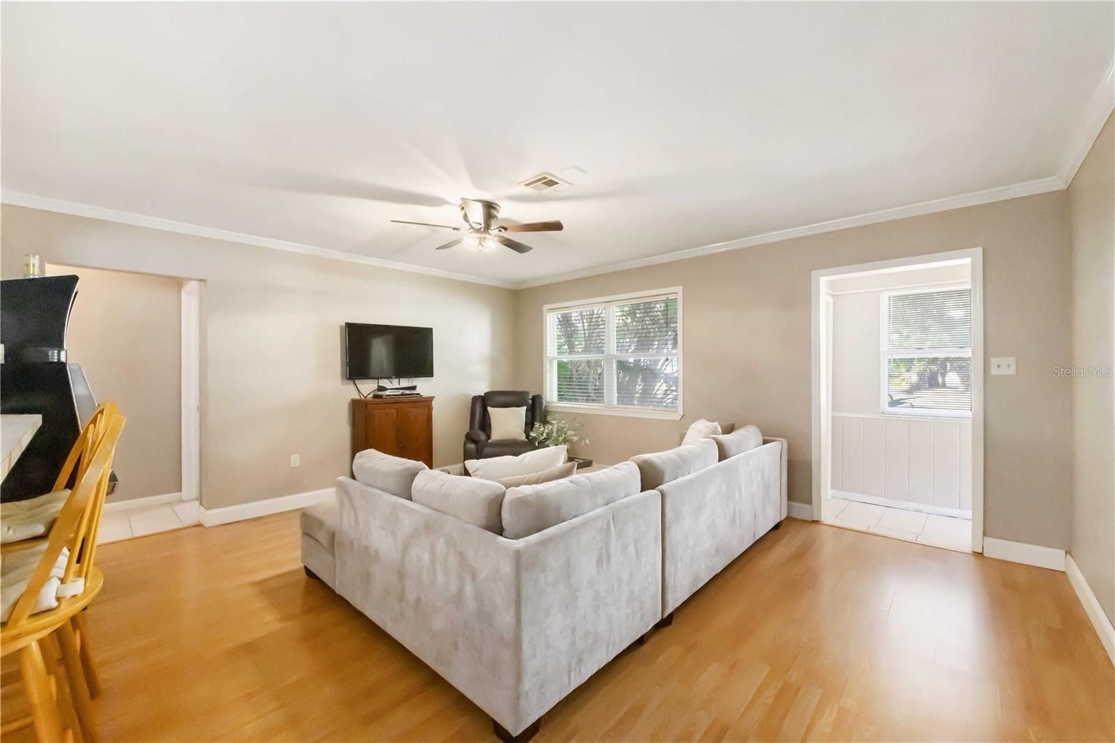 One or more photo(s) has been virtually staged. Location, Location, Location. Located on Venice Island, this 4-bedroom, 2-bathroom home sits on a corner lot just 1.3 miles from the Venice Fishing Pier and 1.9 miles from Downtown Venice. As you enter the home from the Cooper Street entrance, you walk through a 360 sq. ft. patio into the Family Room and Dining Room. The primary bedroom is an en suite with a bathroom and walk-in closet. The kitchen is positioned as the heart of the home, and it features an additional space that could be used as a breakfast nook. The kitchen bar is open to the living room. From the Living Room, you will find two guest bedrooms that share a bathroom. Continuing through the Living Room toward the door that opens to Field Ave., there is an additional bedroom. This location provides convenient access to local amenities and coastal living. Less than a 5-minute drive to the beach. A third guest bedroom is located through the living room toward the side exterior door that opens to Field Ave. The location provides convenient access to local amenties and coastal living. Less than a 5-minute drive to the beach. Venice, Florida is known for its historic downtown, walkable streets, and community events. The city features public beaches, parks, and recreational options for residents and visitors.