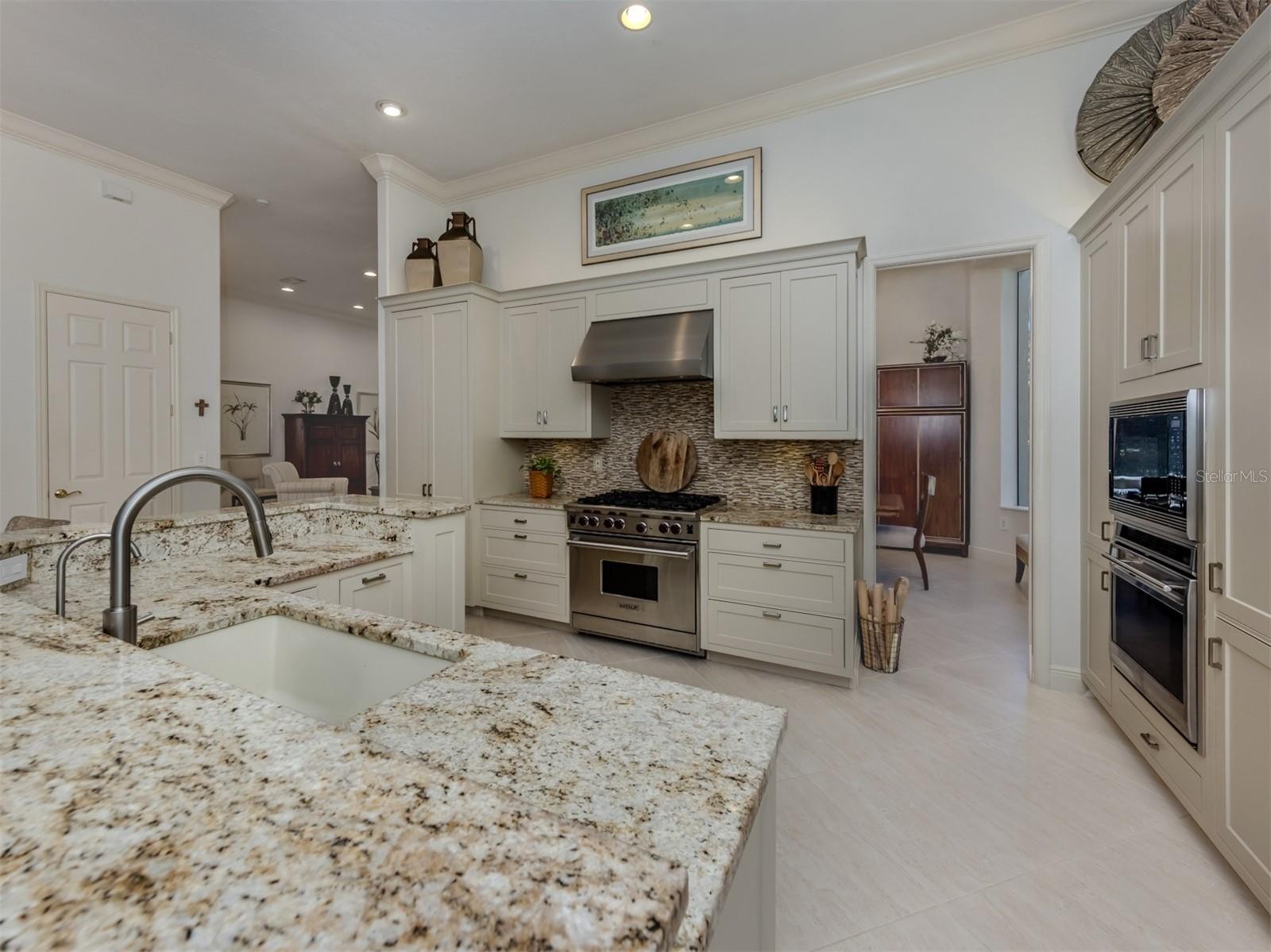 Exuding refined sophistication, this exceptional courtyard residence is set within a premier golf and country club, offering an elevated lifestyle where luxury living meets world-class amenities. New porcelain tile flooring and high ceilings with crown molding throughout, including the casita, set the tone, complemented by upgraded kitchen and baths. The inviting family room opens seamlessly to the kitchen, featuring wood cabinetry, a two-drawer dishwasher, Wolf range, Wolf electric oven and microwave combination, Sub-Zero refrigerator, center island and dining area. This space overlooks the private courtyard with a striking feature wall, Cypress ceiling over the covered area with a new 84-inch fan, new pavers and a refurbished pool. An additional private lanai has been thoughtfully reimagined with a stone-faced fireplace, Cypress ceiling with an 84-inch fan, power shade, and a fully equipped outdoor kitchen offering an EVO flat-top grill, Lynx grill, Kalamazoo pizza oven, Cypress cabinetry, two refrigerators and dining area. The spacious primary suite is a calming retreat with a spa-like bath, dual closets and direct courtyard access. A separate private casita with its bath and kitchenette is ideal for guests or flexible living space. An additional bedroom and bath, formal living and dining rooms, three-car garage, and new paver driveway and sidewalk complete the home, where seamless indoor-outdoor living is enjoyed. Venice Golf and Country Club is a member-owned golf and country club community committed to creating and maintaining an environmentally friendly oasis. Residents will enjoy an array of amenities, including premier golf, dining, recreational and social experiences. With an Aquatic Center featuring a newly renovated Junior Olympic-sized pool, tennis, pickleball and bocce ball courts, wellness center and clubhouse with a full calendar of events and entertainment, there is something for everyone to experience and partake in. All this is just minutes from downtown Venice and the seven-mile stretch of beautiful sandy beaches, shopping, restaurants and a world of recreational and cultural pursuits.