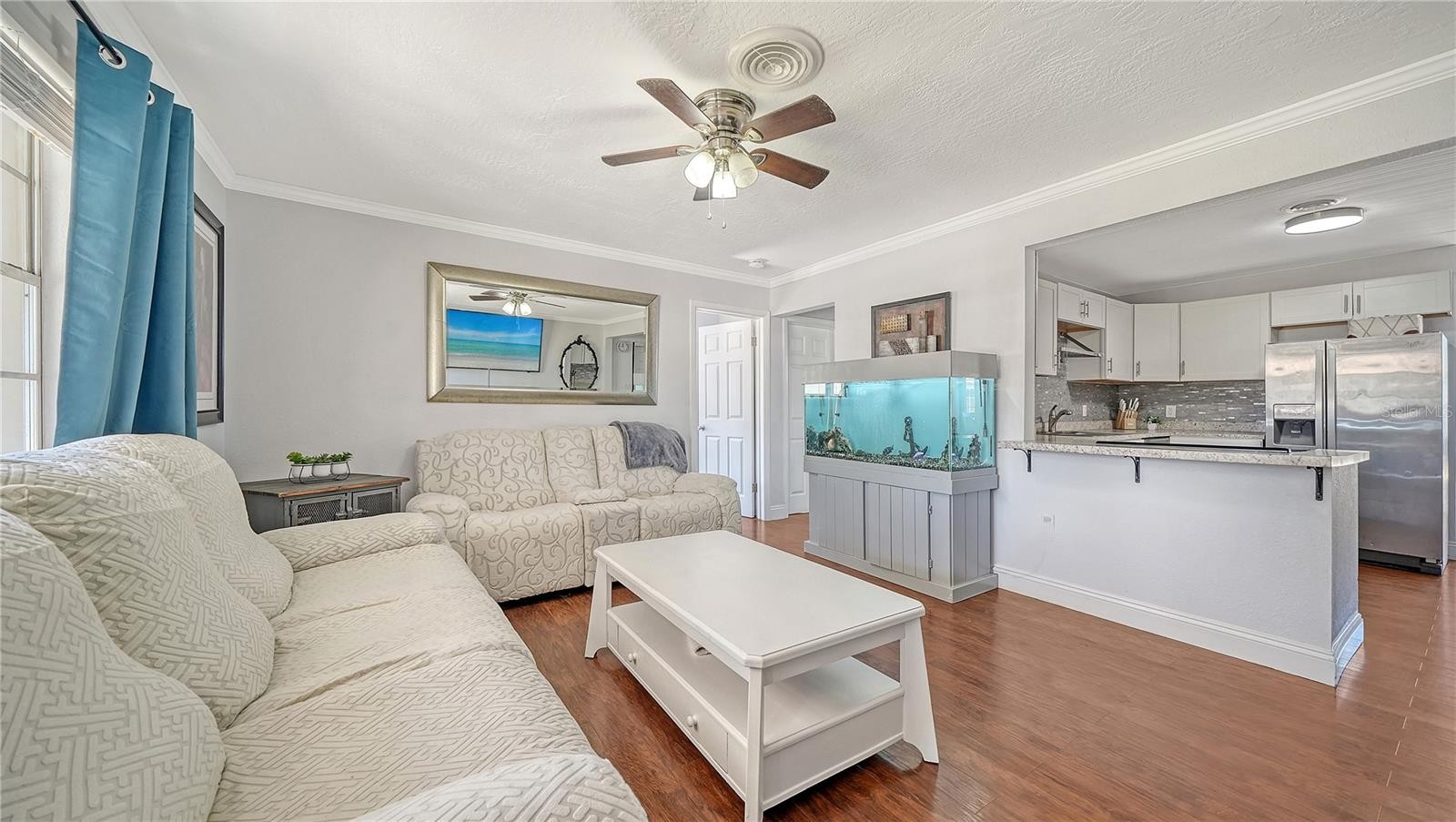 RENOVATED WITH PRIVATE MOTHER-IN-LAW SUITE. Tucked away on a quiet street, this home offers a rare combination of flexible living space and exceptional value. The smart floor plan includes a private mother-in-law suite with its own entrance and patio. Perfect for extended family, guests, or added privacy. A centrally located kitchen anchors the home, while hand-scraped wood laminate flooring runs throughout for a cohesive, low-maintenance feel. The fully fenced backyard features a spacious rear patio ideal for relaxing or entertaining, and a shed provides convenient additional storage. Located just minutes from the Legacy Trail, 10 miles from Siesta Key Beach, and 6.7 miles from Downtown Sarasota, this property delivers peaceful seclusion with exceptional access to dining, entertainment, and outdoor recreation. Recent updates include: Roof (2017), Shed (2018), Interior Paint (2026), Fully Fenced Yard.