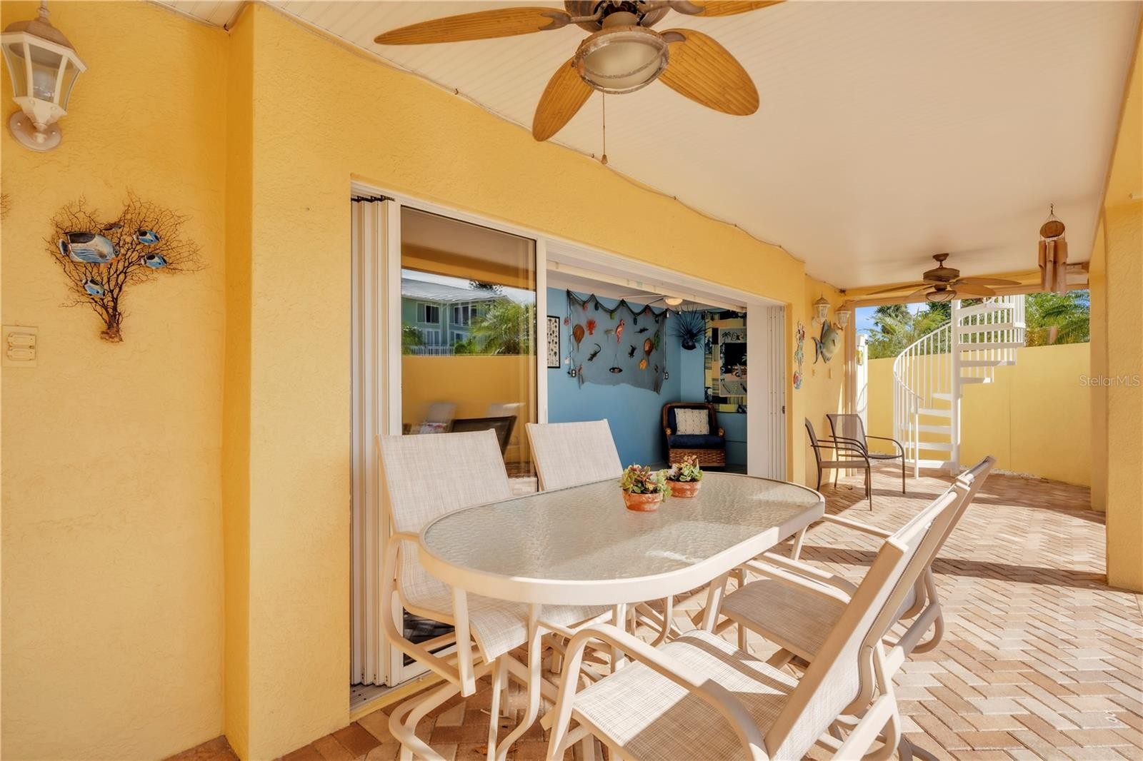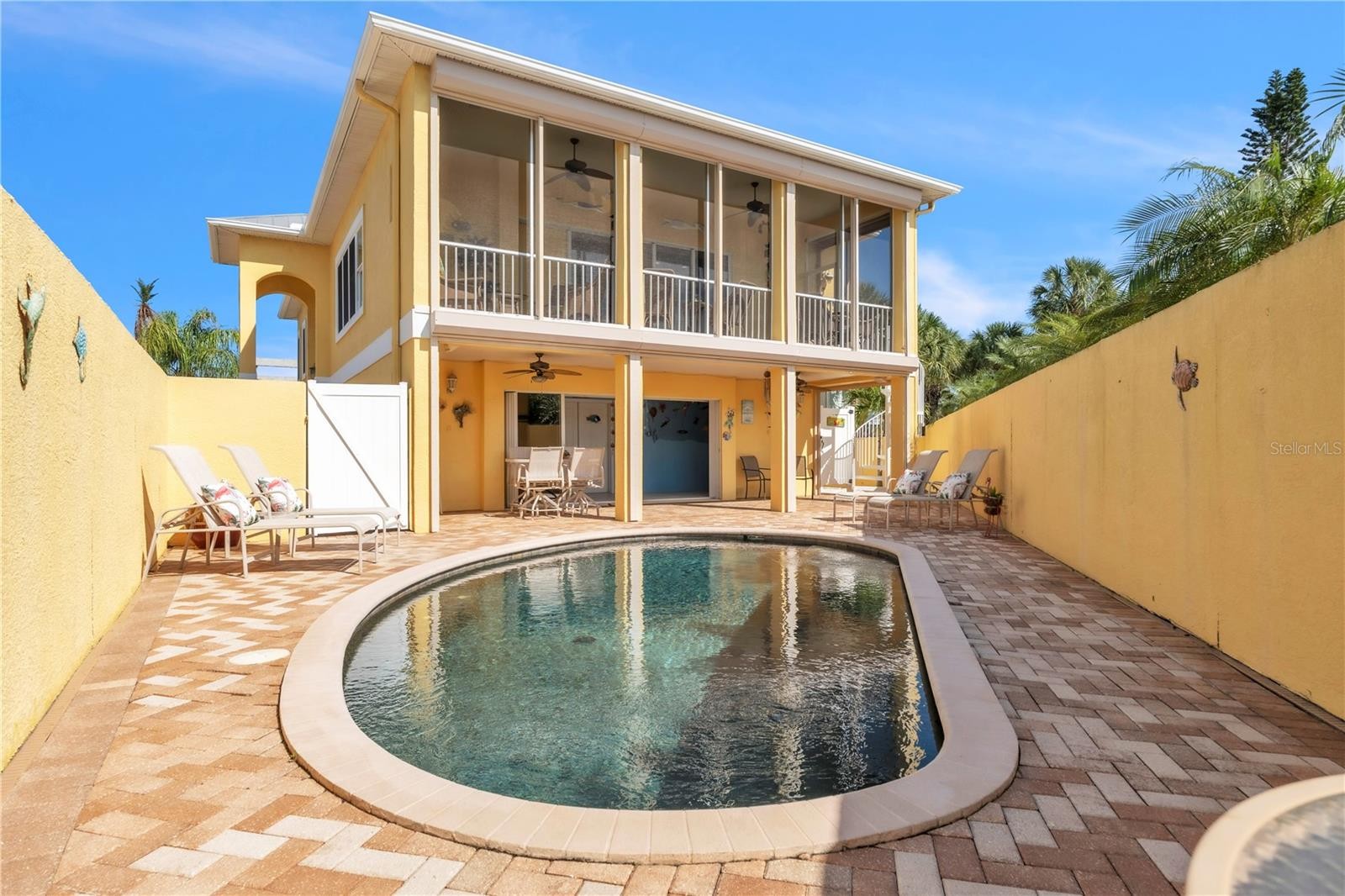 This elevated Holmes Beach retreat is all about location, just steps from the sugar-sand shoreline of Anna Maria Island and the turquoise waters of the Gulf. Thoughtfully designed for relaxed coastal living, this three-bedroom, two-bath home invites sunlight through a wall of sliding glass doors that open to the screened porch, framing tranquil views of swaying palms and hints of the Gulf beyond. Inside, the open layout flows effortlessly between the living, dining, and kitchen areas. Granite countertops, stainless steel appliances, central vacuum system and coastal finishes are just a few features that help create a space that feels both refined and welcoming. A private elevator offers convenient access to every level, including a rare five-car, climate-controlled garage—perfect for golf carts, beach gear, or a collector’s touch. Step outside to the inviting pool area, an ideal spot for lounging, cooling off, or gathering with friends after a day at the beach. Perfectly situated within Holmes Beach’s coveted weekly rental zone, this home offers exceptional flexibility as a full-time residence, vacation getaway, or income-producing property. Not to mention that this property comes turnkey furnished so all you need to do is pack your bags and move right in! Whether you're savoring sunset views from the porch or strolling to nearby cafés and shops, this home captures the very essence of laid-back island luxury. Boat owners will appreciate that Bay Palms Addition residents receive priority placement on the city’s waitlist for a boat slip—making it easier to enjoy life on the water.