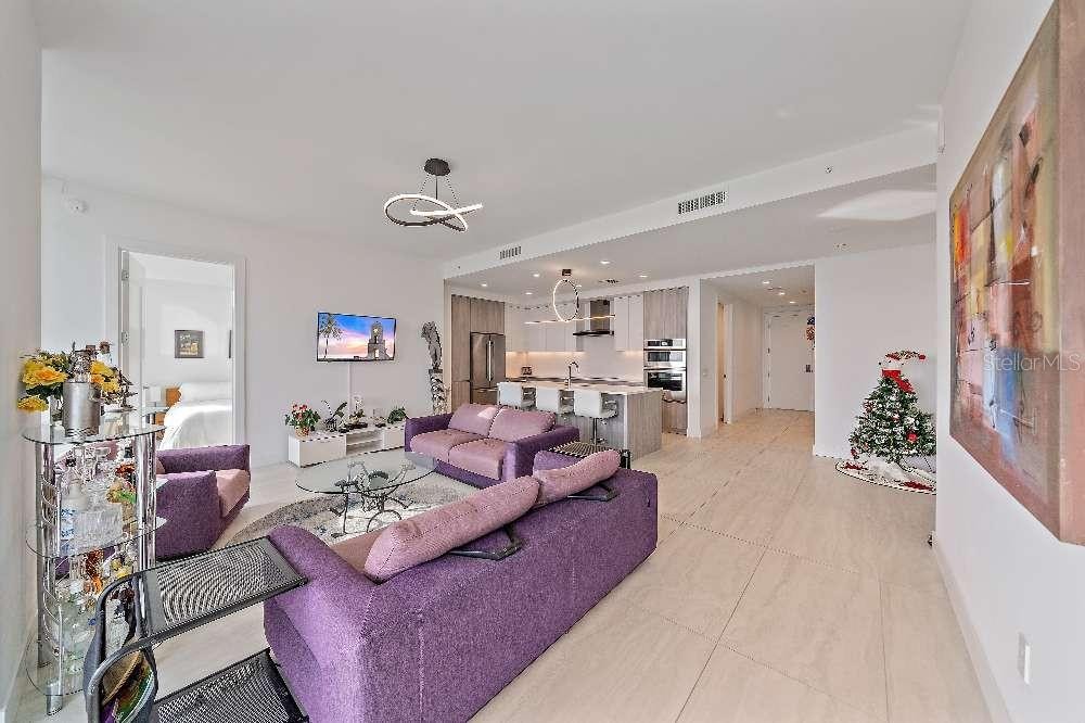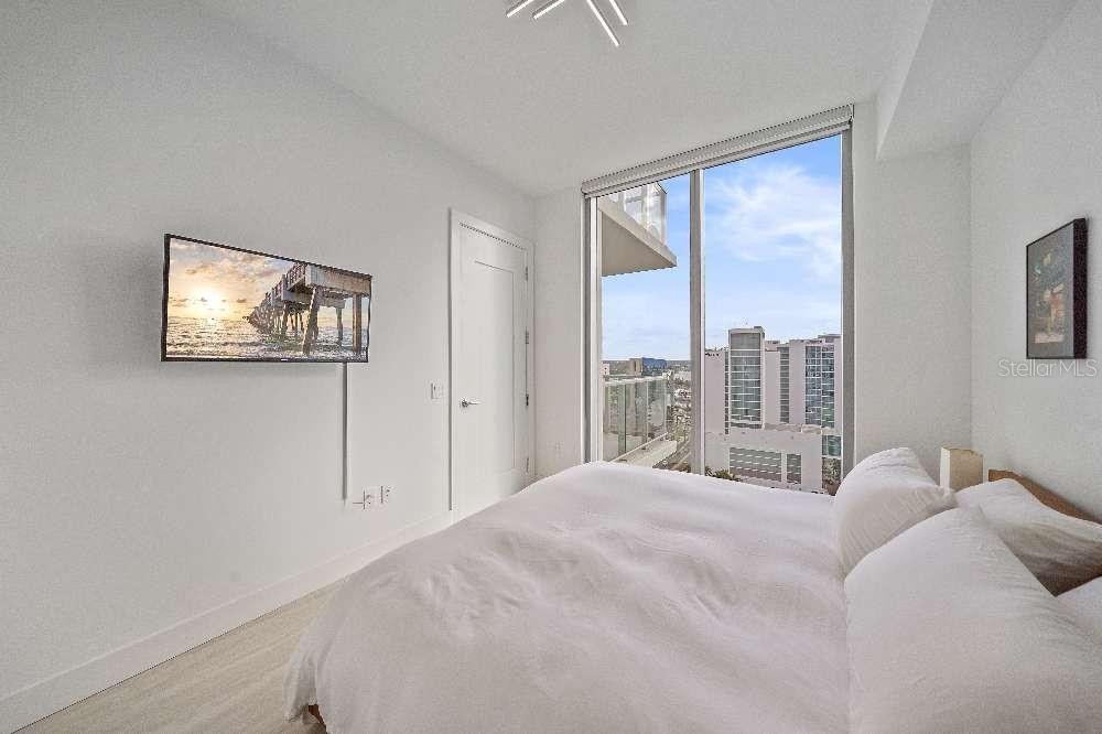 This is a condo that gets the details right — the ones that actually matter once you’re living there. From the 17th floor, you’re high enough to clear neighboring buildings, including the Hyatt, which means open views, real sunsets, and clear sightlines over the marina. Fireworks reflect off the water during events, and the evenings feel noticeably quieter than many nearby residences. One of the underrated advantages of this unit is what you don’t hear. Unlike other condos in the area, it’s positioned away from the loud rooftop and mechanical systems of neighboring buildings, including the Ritz-Carlton. The result is a space that feels calm, even though you’re in the middle of everything. Inside, the layout is clean and functional, with motorized shades in the main living areas and bedrooms to make privacy and light effortless. The kitchen has been thoughtfully upgraded with a custom backsplash and a built-in wine fridge — practical improvements that you use every day. The condo also includes two dedicated parking spaces, a meaningful advantage in this part of downtown where many units only have one. Location-wise, it’s hard to beat. You’re walking distance to downtown Sarasota restaurants, steps from the waterfront, close to the marina, and an easy walk to the bridge. The surrounding neighborhood — anchored by the Ritz-Carlton Residences — adds a level of stability and prestige that carries through the entire area. This is a place for someone who wants the benefits of downtown living without the tradeoffs that usually come with it.