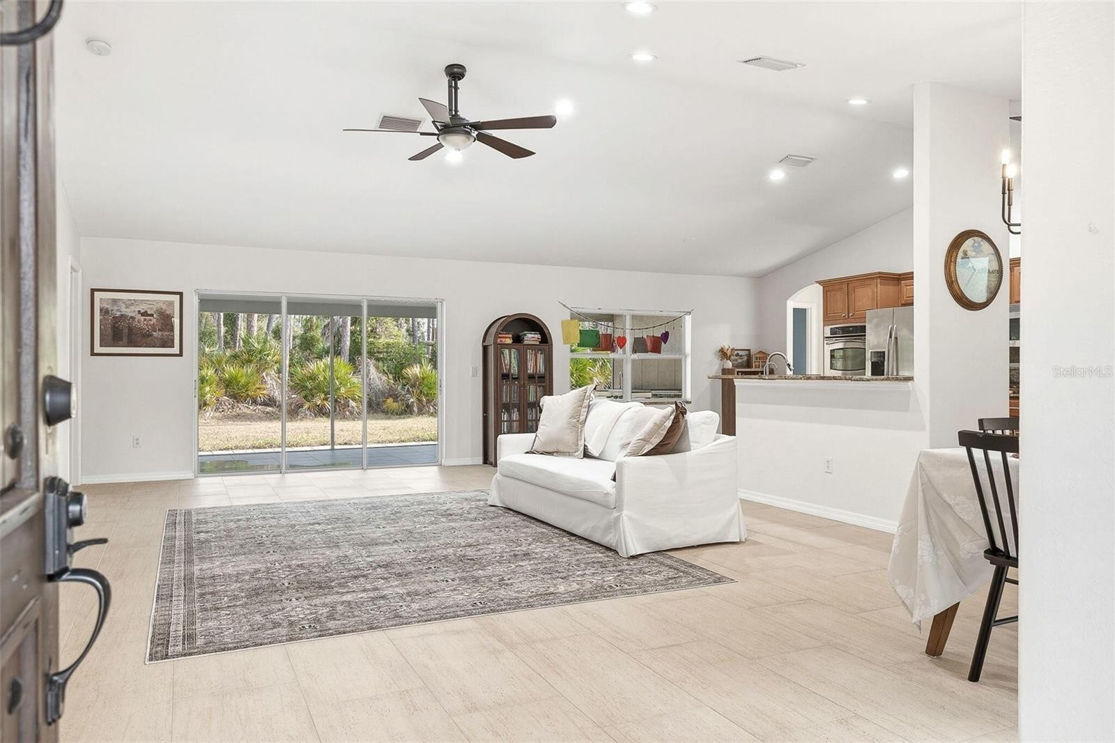 One or more photo(s) has been virtually staged. Welcome to 3070 Dalhart Ave, North Port, Florida — a beautifully maintained 3-bedroom, 2-bath home offering privacy, thoughtful upgrades, and true move-in-ready comfort. Situated on a spacious 10,600 sq. ft. lot on a quiet side street, this home provides the perfect balance of peaceful living and everyday convenience. Located just minutes from Interstate 75 , you’ll enjoy easy access to shopping, dining, schools, and nearby destinations including Wellen Park. The property is also located in Flood Zone X, meaning no lender-required flood insurance. Inside, the open-concept living and kitchen area is filled with natural light and features fresh interior paint. The kitchen is designed for both daily function and entertaining, offering granite countertops, stainless steel appliances, double ovens, ample cabinetry, and a reverse osmosis water filtration system. Step outside to a screened lanai overlooking a private wooded backdrop, complete with an outdoor kitchen — an ideal space for relaxing or hosting gatherings during Florida evenings. Recent major system updates provide long-term peace of mind: • New roof – 2022 • A/C system – 2021 • Hot water heater – 2022 • Well system – 2022 Located approximately 20 minutes from CoolToday Park, the spring training home of the Atlanta Braves, this home provides convenient access to surrounding Gulf Coast destinations including Venice, Sarasota, Punta Gorda, and Fort Myers. With no HOA restrictions, Flood Zone X classification, and updated major systems, this move-in-ready home provides flexibility for homeowners and investors alike. Schedule a viewing today!