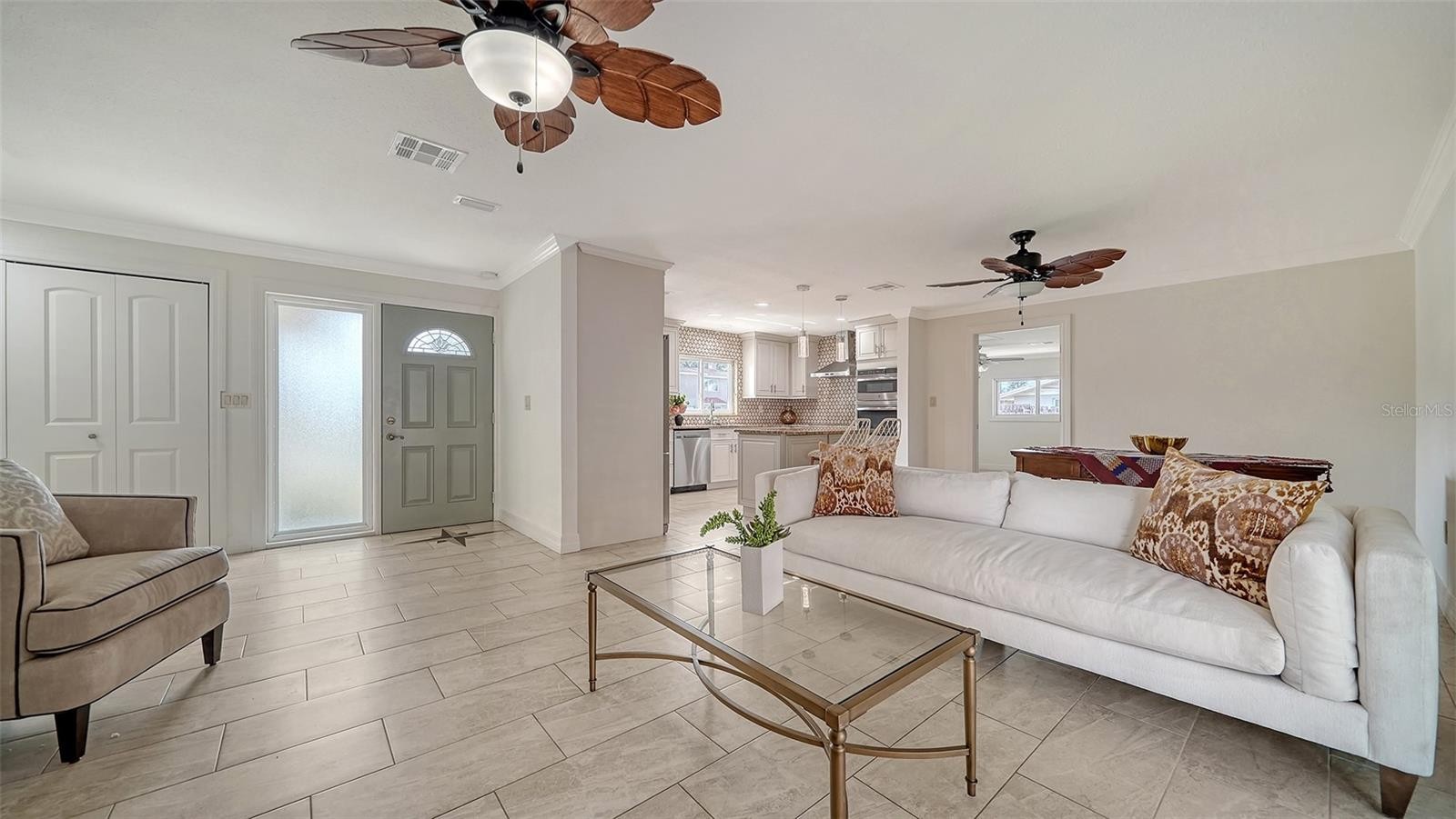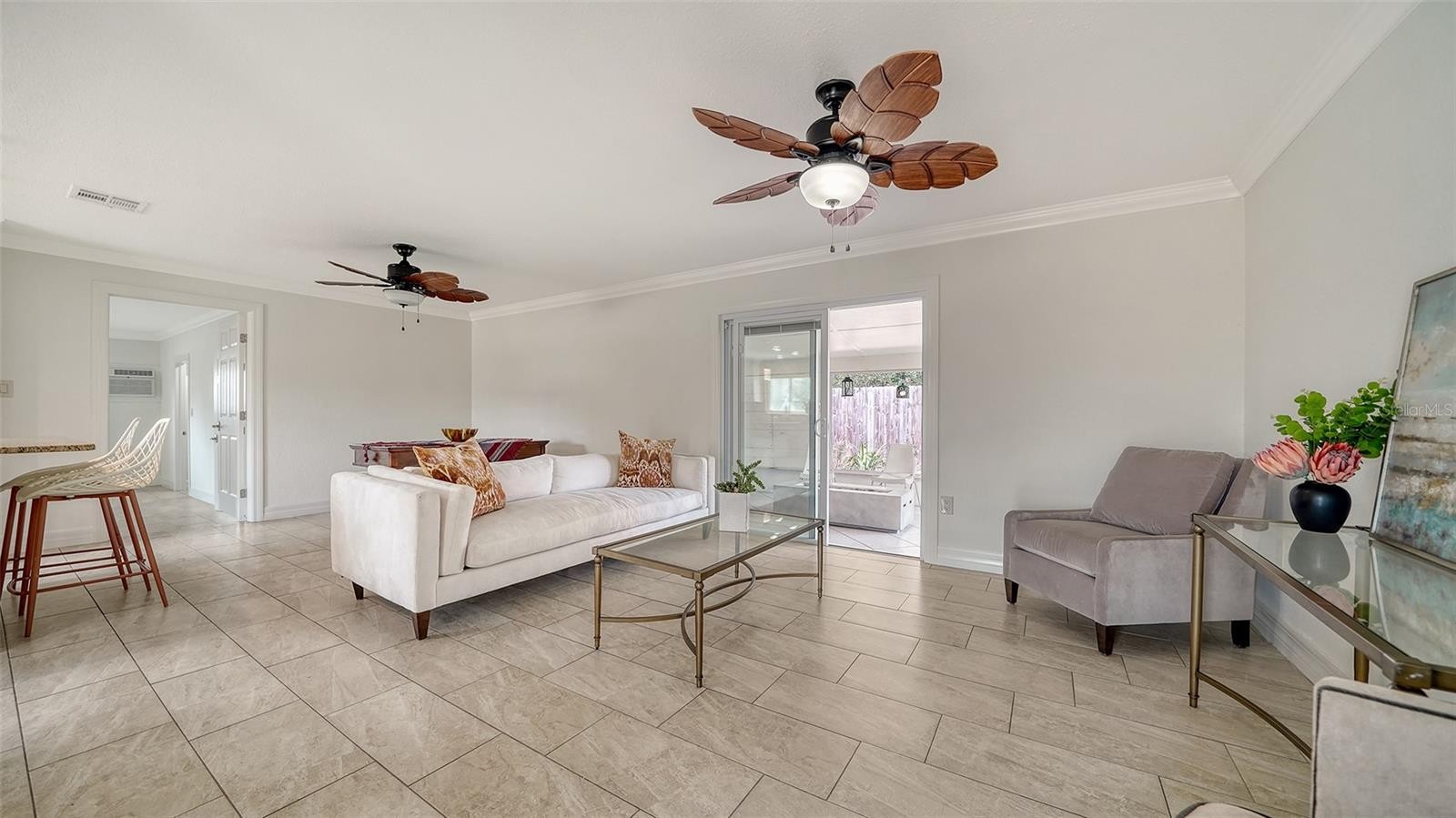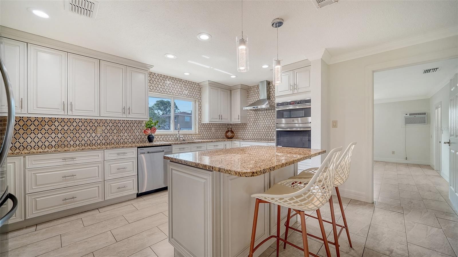 This rejuvenated residence sits on a ¼-acre in the heart of Southgate, a treasured community sought-after by families for its top-ranked school system. Young professionals appreciate the ideal proximity to downtown Sarasota’s arts and cultural venues, prized beaches, tons of recreational activities, and a wide variety of shopping and dining experiences. With 1,608 square feet of openness, this recently refreshed and upgraded home features 3 bedrooms and 3 baths. Casually comfortable interiors offer a pleasing neutral palette of beiges and creams that surround you in a quiet softness for easy Florida living. Natural light permeates this efficiently designed one-level home illuminating its modern conveniences and visual appeal. Adjacent to the living and dining area, the well-planned kitchen is highlighted by granite-topped island, hardwood cabinets, amazing backsplash, smooth surface cooktop, and stainless appliances including a side-by-side fridge, a built-in microwave and oven, a dishwasher, double sink and range hood. The baths feel luxurious with fully tiled walls matching the floors, vanities with granite countertops, and rich wood cabinetry. The three nicely-sized bedrooms are equipped with private baths and walk-in closets. Glass sliders open to a covered screen-enclosed porch that’s cozy and relaxing with a modern fire table adding a sparkle to cooler star-lit evenings. The fenced yard provides a large work shed, play area with swing set for the kiddos, ample area for barbecues with family and friends, or leisurely spot to kick back and enjoy life’s simpler moments. Everything throughout the home is new including ceiling fans, fixtures and finishes, solar panels for energy efficiency, high-volume water heater (2021), kitchen appliances (2019), and roof, A/C, windows and tile flooring (2018). The newly-created ambiance of warmth and style has been done to perfection and will welcome you home with graciousness. Take the time to explore the many amenities at 3085 Goldenrod. Homes in this vicinity are in high demand and often sell quickly. Don’t miss this opportunity to make it yours. It might very well become your ideal place for years to come!