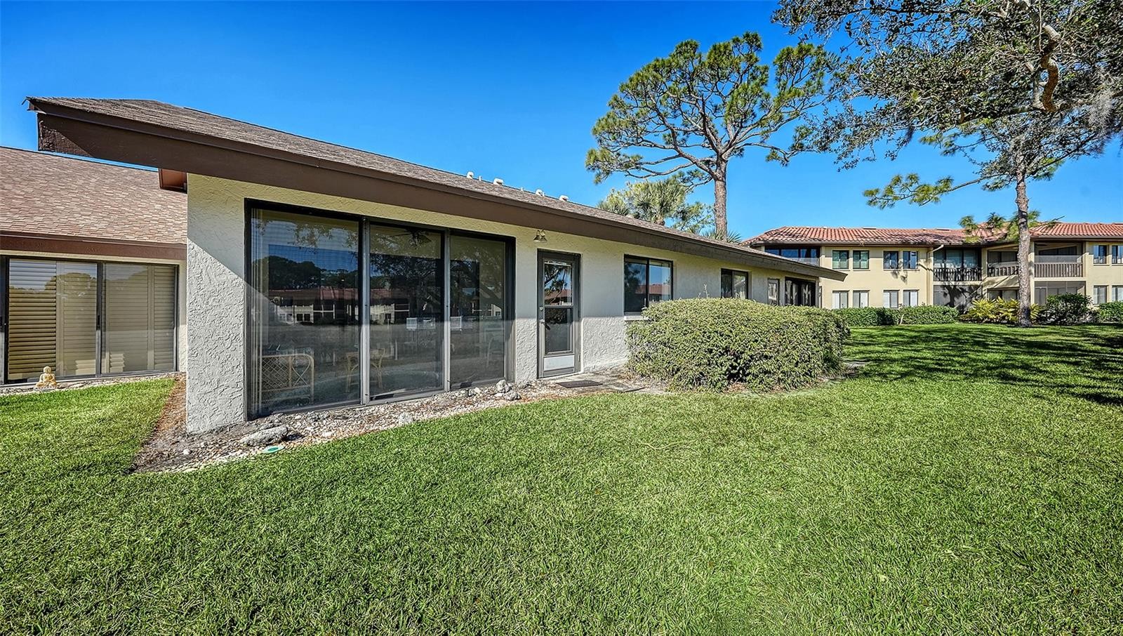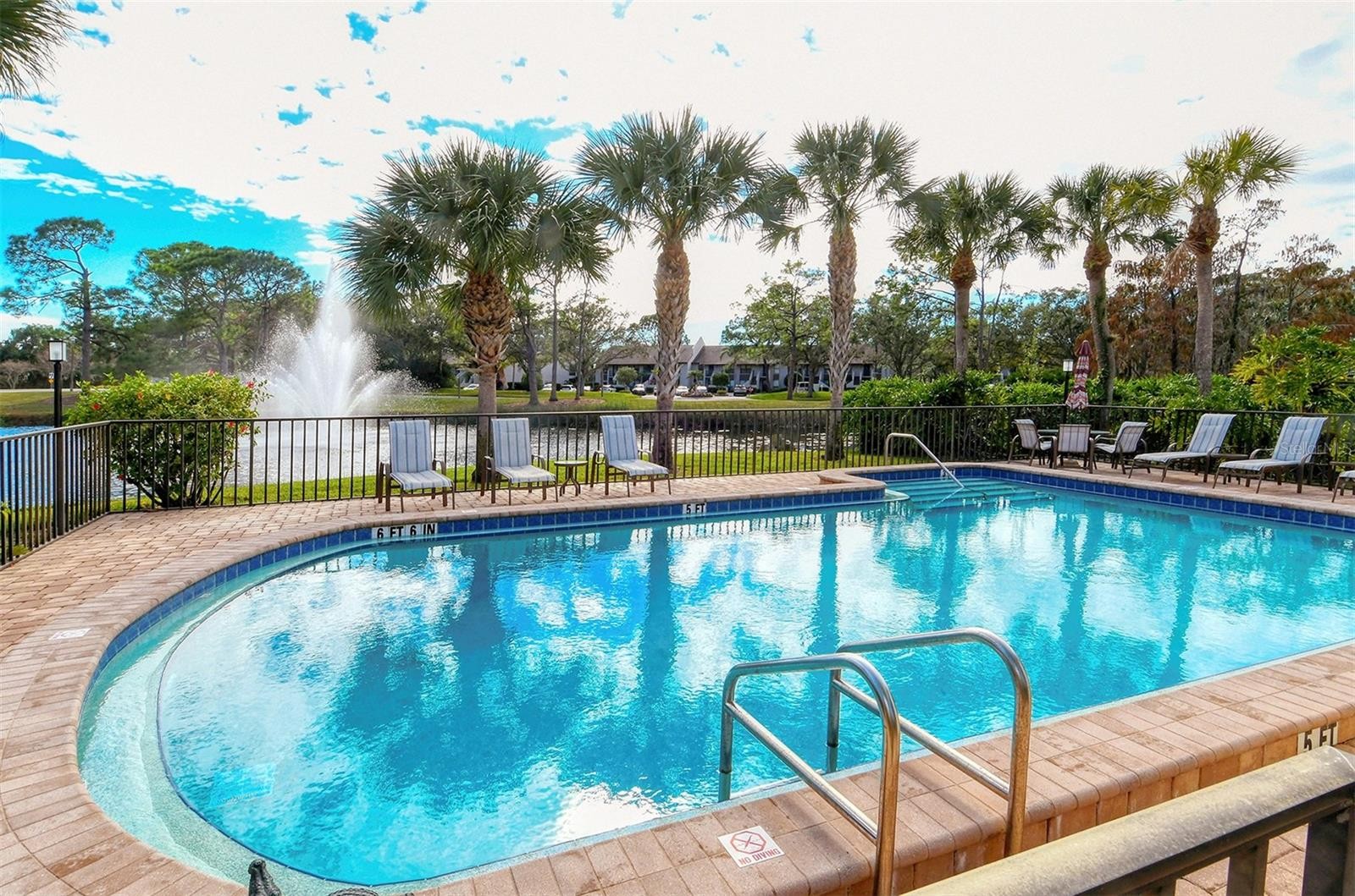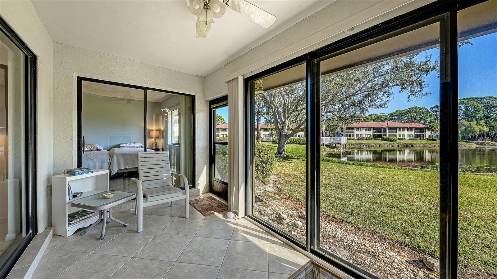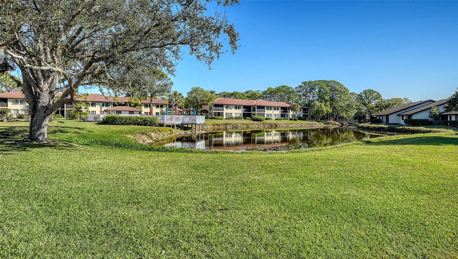 Fantastic location to all shopping, dining and entertainment at University Town Center & Aquatic Park. The Meadows is so conveniently located. Windrush Bourne is a very desirable community of 2 bedroom Villas with Paver Drive entry and courtyard. This Villa is well maintained, tiled throughout, Kitchen opens up to Paver Courtyard with vaulted ceiling in Great Room. Incredible long water view of lake and pedestrian bridge. Complex offers two heated pools. OFFERED TURNKEY.