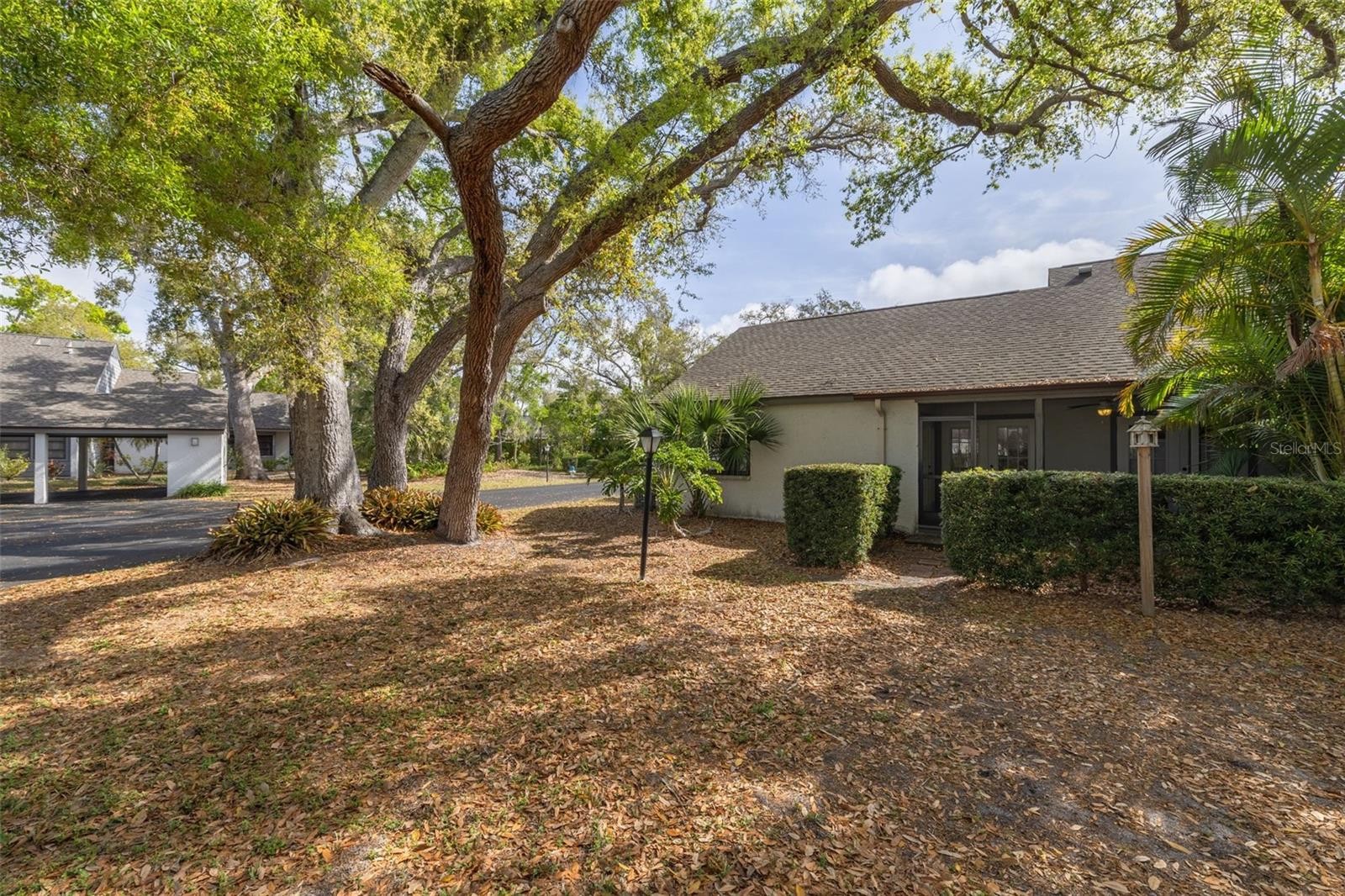 This bright and inviting 2-bedroom, 2-bath villa is located in the exclusive Eagle Chase community, a charming enclave of only 21 villas. The open floor plan features cathedral ceilings in the living room and luxury vinyl flooring (2025) throughout the main living areas. The living space has also been freshly painted, creating a light and welcoming atmosphere ideal for both everyday living and entertaining. Both bedrooms are generously sized, with well-appointed bathrooms offering comfort and convenience. Step outside to your private screened lanai overlooking lush landscaping, perfect for relaxing with morning coffee or unwinding in the evening Throughout the community, majestic oak trees create beautiful natural canopies, enhancing the peaceful setting and providing a serene retreat for residents and guests alike. This villa blends comfort and style, featuring thoughtful design and durable finishes, including a 2021 roof, 2020 water heater, and HURRICANE IMPACT WINDOWS throughout, offering added safety and peace of mind for new owners. The property also includes two reserved parking spaces, including a covered carport, providing convenience and protection for your vehicles. Eagle Chase offers quiet, well-maintained community living just minutes from Red Bug Slough Preserve, where nature lovers enjoy walking trails, biking, and birdwatching in a scenic natural setting. For beach enthusiasts, the villa is also just minutes from world-famous Siesta Key Beach, known for its powdery white sand and crystal-clear Gulf waters. Residents enjoy easy access to shopping, dining, and top-rated schools, combining coastal living with everyday convenience. Schedule your private showing today and discover the comfort and charm this villa has to offer.