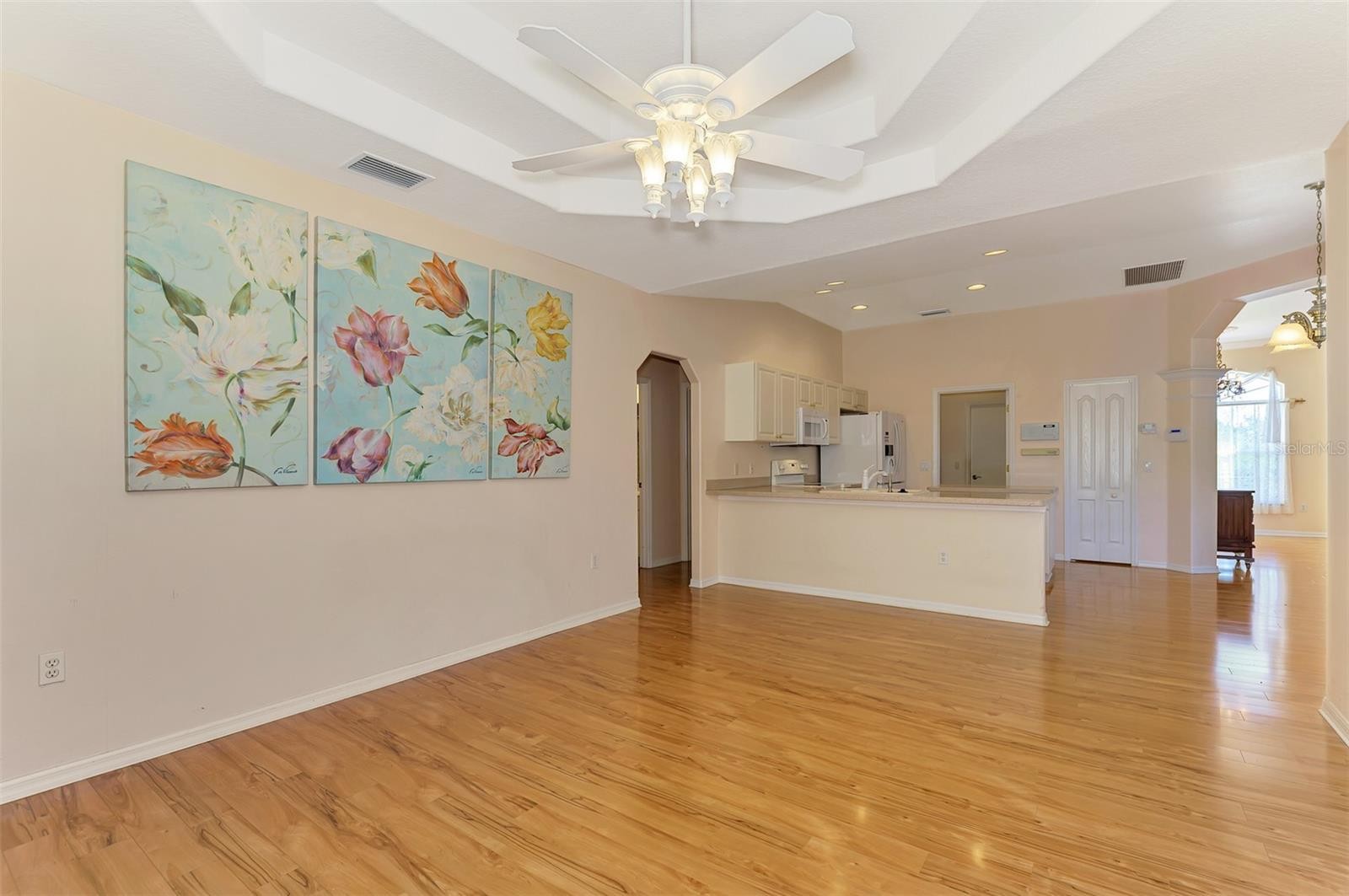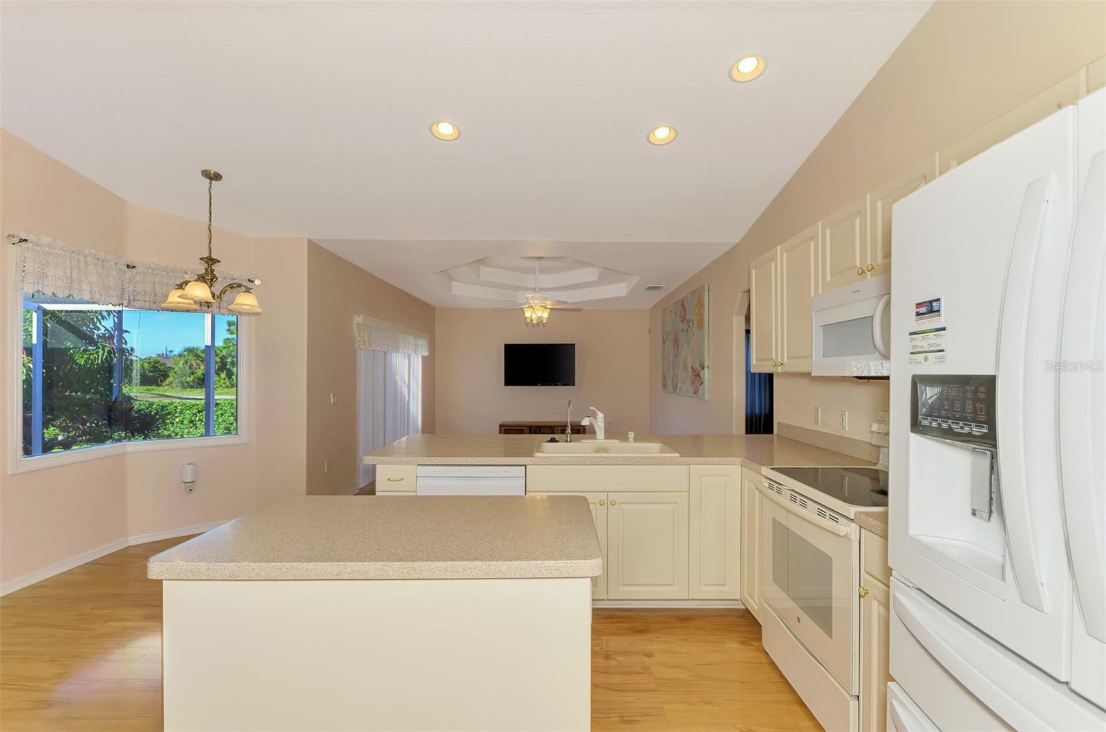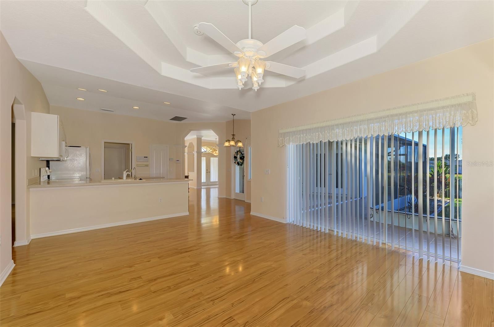Under contract-accepting backup offers. WARM MINERAL SPRINGS BEAUTY! This exceptional 3-bedroom, 2-bath, 2-car garage home in peaceful Warm Mineral Springs is truly a showpiece of quality and care. With its impressive pillared double-door entry, beautiful landscaping, and a sidewalk that wraps around the property, this residence blends elegance with comfort from the moment you arrive. A new roof (2022) adds lasting value and peace of mind, while accordion hurricane shutters provide full protection for every window and door. Step inside and feel the bright, airy flow of the 1,808 sq. ft. split floor plan, filled with thoughtful upgrades. A sparkling Murano crystal chandelier greets you in the foyer, setting the tone for the formal living and dining rooms that feature crown molding, volume ceilings, and sliding glass doors leading to the lanai. The arched entryway to the kitchen adds architectural charm, while the kitchen itself is a chef’s delight—complete with solid-surface countertops, recessed lighting, a new dishwasher (2023), center island, lazy Susan, and a reverse osmosis purification system under the sink. Enjoy breakfast by the Aquarium glass window dinette, where sunlight pours in and a door opens to your covered lanai. The family room is the perfect gathering space, highlighted by an eye-catching octagon double tray ceiling and sliding doors to the tiled patio. The master suite impresses with its 21-foot length, tray ceiling, French doors, and two walk-in closets. The ensuite bath offers dual sinks, a walk-in shower with grab bars, and ceramic tile flooring. Additional features include a new hot water heater (Aug 2024), indoor laundry room with washer, dryer, and built-in sink, and laminate wood flooring throughout most of the home. The expanded screened lanai wraps around the back, creating a perfect space to relax, grill, or garden, complete with a drip system for plants. Extras abound—intercom and security systems, Rain Bird irrigation, Culligan water softener and chlorinator, 240-volt garage outlet, and garage screen doors. All just minutes from Wellen Park, Atlanta Braves’ stadium, shopping, dining, and the white-sand Gulf beaches only 20 minutes away. Experience true pride of ownership in this Warm Mineral Springs gem—a home that combines timeless beauty, comfort, and convenience in one incredible package.