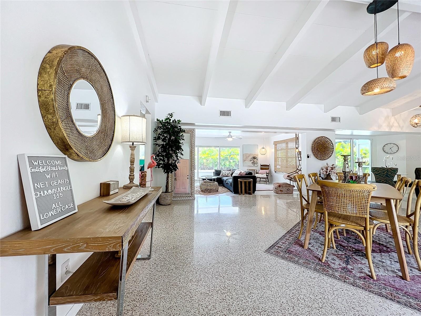 Stunning Mid-Century Modern Retreat in Sarasota, Florida Seize this unique opportunity to own a piece of Sarasota’s sought-after living with this versatile property that promises both a serene retreat and lucrative returns as an investment Property (70K 2024) With Future Bookings booking in place , Sold Turnkey Furnished!. Experience the perfect blend of timeless design and modern luxury in this fully renovated Mid-Century Modern home. Vaulted ceilings and beautifully refinished terrazzo floors create an open, airy feel throughout the living spaces. The brand-new designer kitchen and bathrooms feature high-end finishes and contemporary style, offering both comfort and sophistication. Step outside into your own tropical paradise, complete with, New lush Mature landscaping Lighting, Irrigation and an oversized Heated Salt Water sparkling pool — perfect for relaxing or entertaining. Located in one of Sarasota’s most desirable areas, this home embodies Florida living at its finest. For active residents, The well known Legacy Biking, Jogging, Walking Trail is just Blocks away, Talking you to Down Town Sarasota to the North and South all the way to Down Town Venice! Sarasota, renowned for its cultural richness and pristine beaches, nearby, the iconic Siesta Key Beach boasts powdery white sands and turquoise waters. Explore the artistic allure of The Ringling Museum or venture to the lush Marie Selby Botanical Gardens. Sarasota's vibrant downtown, with its eclectic First Class dining, shopping, and nightlife, is just moments away. The city's picturesque sunsets and waterfront parks promise an exceptional lifestyle for residents and vacationers alike. New PVC Plumbing, Electrical Panel, Landscaping, Irrigation, Lighting, Oversized Salt Water Heated Pool, Impact Sliders - 2022 . New Roof, Water Heater - 2023 No Hurricane Damage or Flooding!