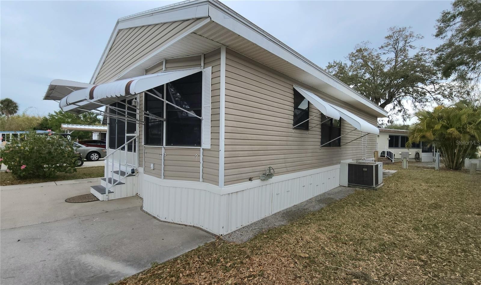 TURNKEY MOBILE HOME IN ACTIVE 55+ COMMUNITY! This one bedroom, 1 1/2 bath home features a comfy, enclosed front porch, covered back porch, space to park two vehicles, newer membrane roof, and a spacious kitchen. There is a separate laundry room and plenty of storage. Central A/C. Awnings and an additional cabinet storage shed outside make maintenance easier. SUGAR CREEK ESTATES HAS QUARTERLY HOA FEES OF $550 which include water, sewer, cable, internet & grass mowing. The community has a clubhouse, pool, shuffleboard, and laundry facilities. Sold for CASH ONLY. A minimum 750 credit score is required to purchase in this community. Property is near the Braden River and River Links Golf Course. Sorry, this is not a dog lot.