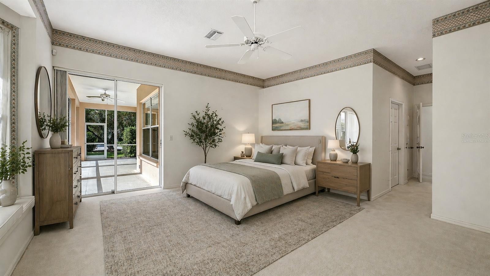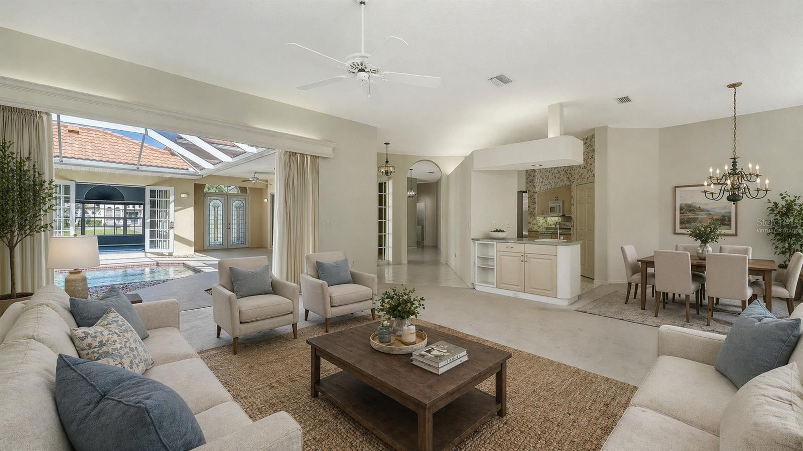 One or more photo(s) has been virtually staged. Positioned on a spacious corner homesite of more than half an acre along a quiet cul-de-sac, this courtyard pool residence in Laurel Oak Estates offers a rare sense of privacy, flexibility, and classic Florida living. A double glass door entry opens into an expansive screened courtyard, where the pool and spa create a private outdoor centerpiece designed for both relaxation and entertaining. The layout is centered around this space, with multiple sets of pocketing sliding glass doors that disappear completely—seamlessly blending indoor and outdoor living while filling the home with natural light from its desirable southeastern exposure. The main residence features a two-bedroom, two-bath configuration with open living and dining areas, a spacious kitchen with solid wood cabinetry, and a casual dining nook that connects easily to the courtyard. The primary suite includes direct access to the outdoor living space, along with a large bay window with a built-in window seat, adding character and charm. A detached one-bedroom, one-bath casita provides exceptional versatility, offering a comfortable and private space for guests, a home office, or extended family living. Additional highlights include an oversized two-car garage with extra length to accommodate a golf cart and ample storage, along with a large storage closet. The home has been consistently maintained, with regularly serviced A/C systems, updated mechanicals, and a long-standing maintenance history that supports confidence in ownership. Outdoor living extends beyond the courtyard with an additional screened patio accessible from the main living areas and primary suite, offering even more space to enjoy the surrounding grounds. The property presents a wonderful opportunity for a new owner to personalize while benefiting from a well-cared-for structure and a highly functional floorplan. Located within the guard-gated community of Laurel Oak Estates, residents enjoy mature landscaping and optional membership to Laurel Oak Country Club, featuring two championship golf courses, tennis, pickleball, dining, and a vibrant social environment. Conveniently positioned east of I-75, the home is just minutes from Waterside Place at Lakewood Ranch, UTC’s shopping and dining district, and a short drive to downtown Sarasota’s cultural venues and Gulf beaches—bringing together privacy, space, and accessibility in one of the area’s most established communities.