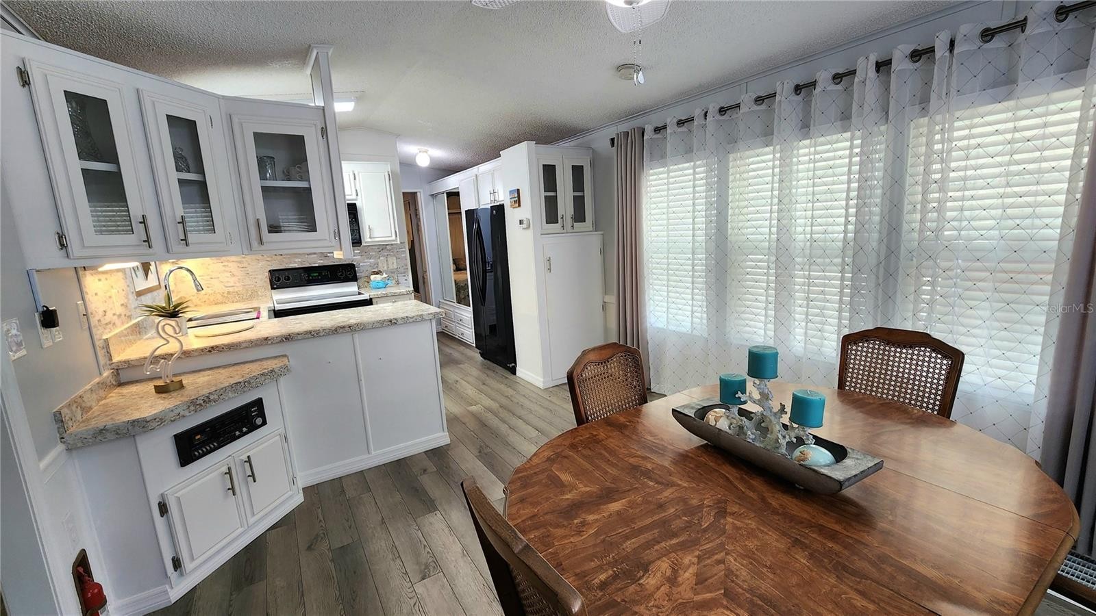 HUGE PRICE IMPROVEMENT ON THIS WELL-KEPT MOBILE HOME IN AN ACTIVE 55+ COMMUNITY! Move-in ready one bedroom, 1 1/2 bath home in Sugar Creek Resort. This home features multiple outdoor seating areas, carport, covered golf cart parking, inside laundry, tankless water heater, and updated kitchen. There is a bonus room which offers sleeping options for guests and has an en suite half bath. Spacious dining area. Updated shower and bathroom vanities. Rear patio overlooks green space and has a tennis court view. The covered front porch sees Glen Creek and the park boat launch. Double-pane tilt-in windows (2024), membrane roof (2021), central A/C (2022). All appliances, a 55" television, and three cabinet sheds are included. SUGAR CREEK RESORT has low HOA fees of just $500 each quarter and include water, sewer, trash, and grass mowing. Park amenities include heated pool, club house, tennis & shuffleboard, workshop, and many social activities during the winter season. Enjoy this home's proximity to the Braden River and River Links Golf Course. Sold for CASH ONLY. Sorry this is not a dog lot.