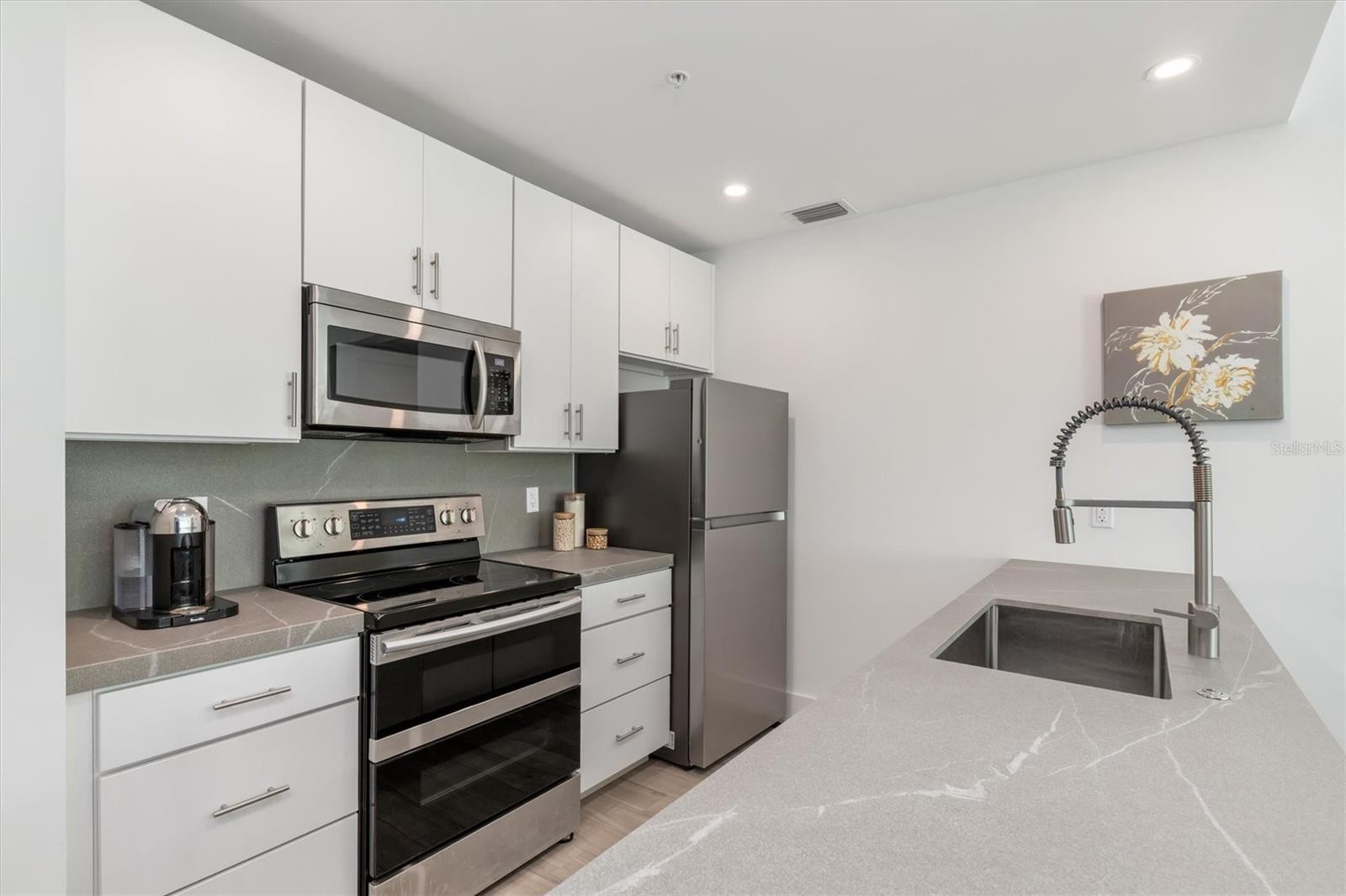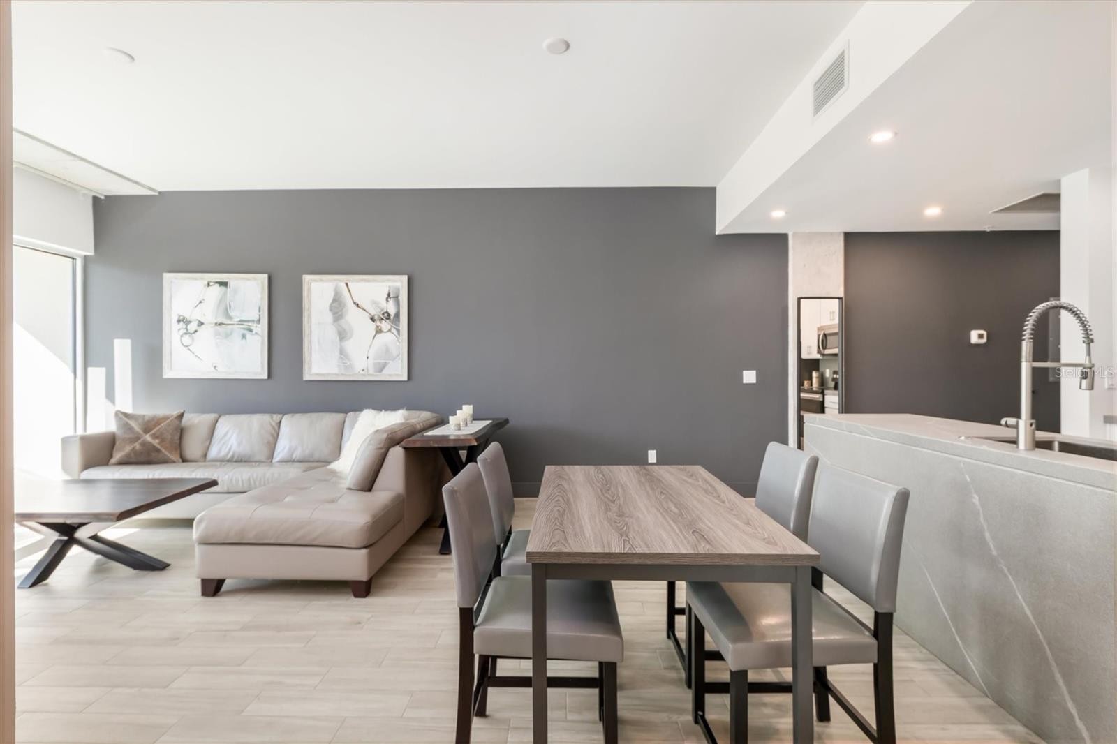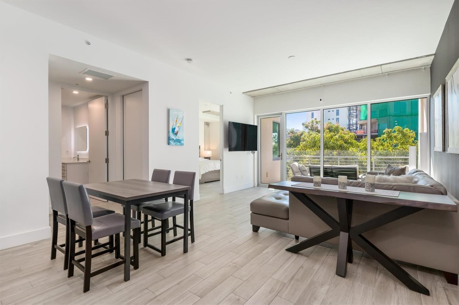 Refined downtown living with a modern, urban edge in Sarasota’s Rosemary District. This stylish 2-bedroom, 1-bath residence features soaring 10-foot ceilings, porcelain tile throughout, upgraded kitchen island, generous closet space, and exposed concrete accents that create a sleek architectural aesthetic. A covered terrace extends the living space, while assigned covered parking and a rare 60-ft temperature-controlled storage unit provide exceptional value and convenience. Built in 2021, this boutique building offers low HOA fees and a third-floor amenity level with pool, BBQ area, and outdoor shower. Ideally positioned among some of downtown’s most established and emerging luxury residences, the location offers effortless walkability to shops, galleries, restaurants, and the cultural heart of the city. A unique purchase opportunity—perfect as a chic pied-à-terre, stylish first condominium, or guest suite complementing a larger primary home.