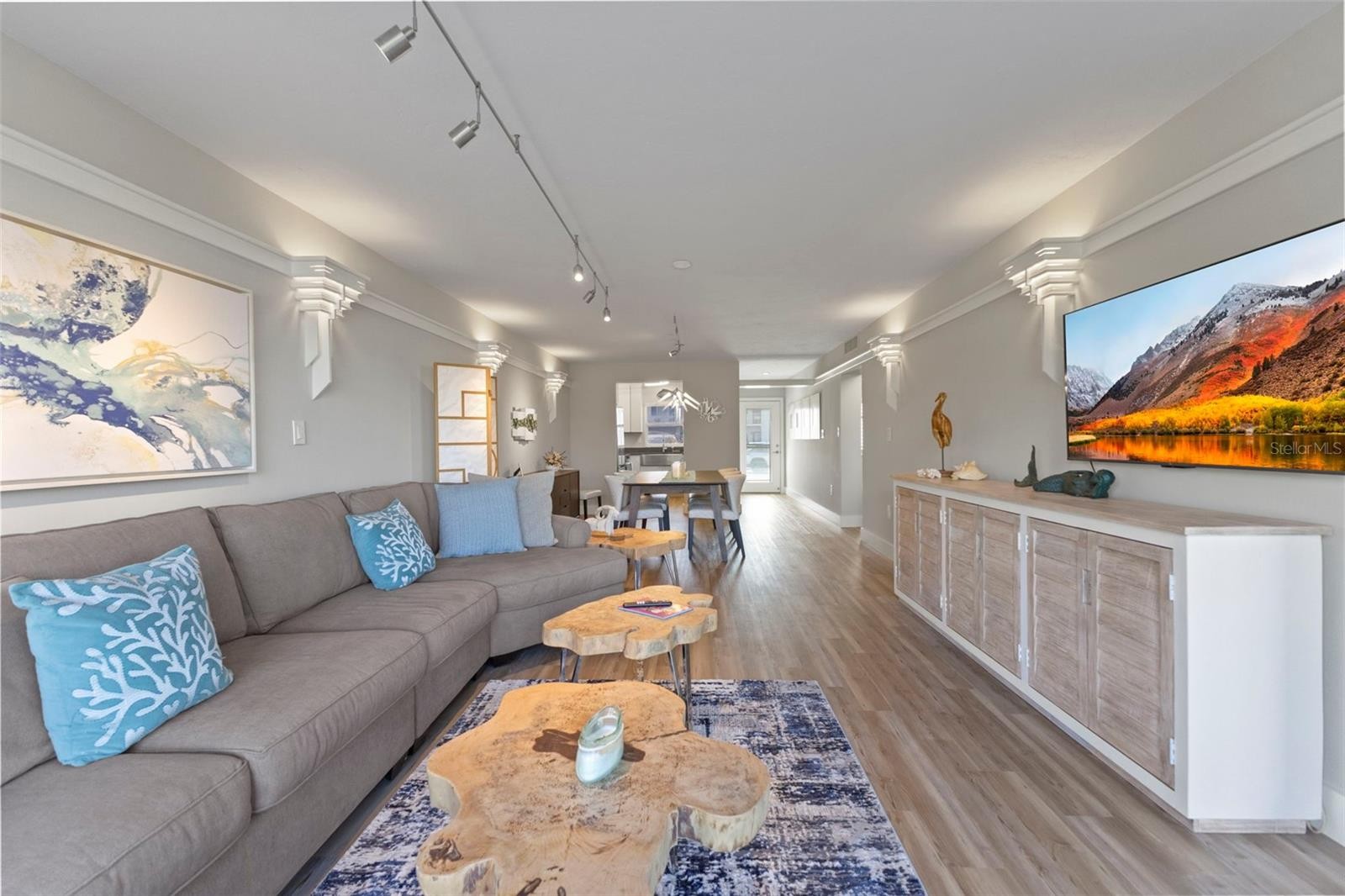 Tucked along the quiet edge of the key, where the water gently meets the shoreline and wildlife drifts by with the tide, this easily accessible residence offers something increasingly hard to find: effortless coastal living with the comfort and privacy of a home. Here, your day begins without elevators or long corridors. You simply pull up, step inside, and settle into a space designed for ease. Groceries are carried in with ease, morning coffee is enjoyed on your lanai, and just beyond, a nearly private lawn stretches out like your own backyard retreat. Only sixty feet away, the tranquil waters of Cranes Bayou create a breathtaking backdrop along with the Sarasota Bay. From your windows and lanai, the view feels intimate and serene as dolphins surface in the distance, manatees glide through calm waters, and coastal birds fill the sky. Just outside, an eagle’s nest tucked within a Spanish pine offers a daily reminder that nature is not something you visit here; it’s something you live beside. The lifestyle extends beyond the view. A deeded private walkway leads you directly to the soft sands of the beach, inviting spontaneous sunset strolls, morning shell hunts, and afternoons spent with your toes in the sand. For boaters, a private slip just steps from your front door makes life on the water feel effortless, ready for quiet cruises or sunset rides along the coast. Recently refreshed with a 2025 community pool upgrade and lush landscaping, the setting feels nature-filled with peacefulness. Inside, the residence reflects a thoughtful balance of high-end furnishings, warm textures, and a blend of contemporary design and classic Old-Florida charm, creating a space that feels both elevated and inviting. Carefully curated lighting, including modern fixtures and Frank Lloyd Wright–inspired sconces, lets you shape the atmosphere, whether you're hosting friends, unwinding with a book, or enjoying a quiet evening at home. This is more than a seasonal escape; it’s a place where mornings feel slower, evenings feel softer, and everyday moments carry the calm of island living. For those looking for a coastal rental that blends privacy, tranquility, and a seamless connection to the water, this inviting retreat delivers an island lifestyle you’ll appreciate the moment you step inside. ANNUAL RATE $4,000 / month. SEASONAL RATE $6,500 / month.