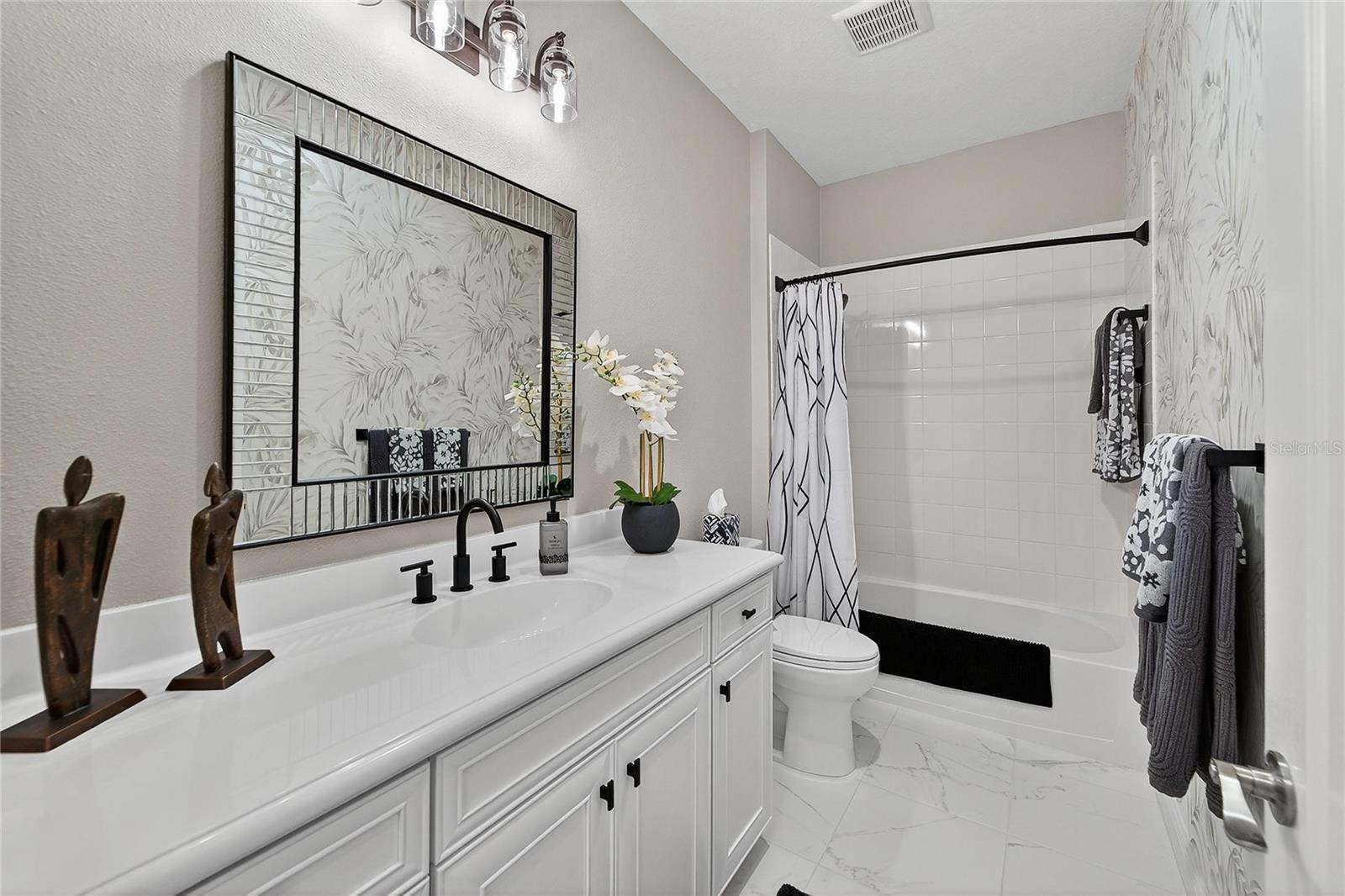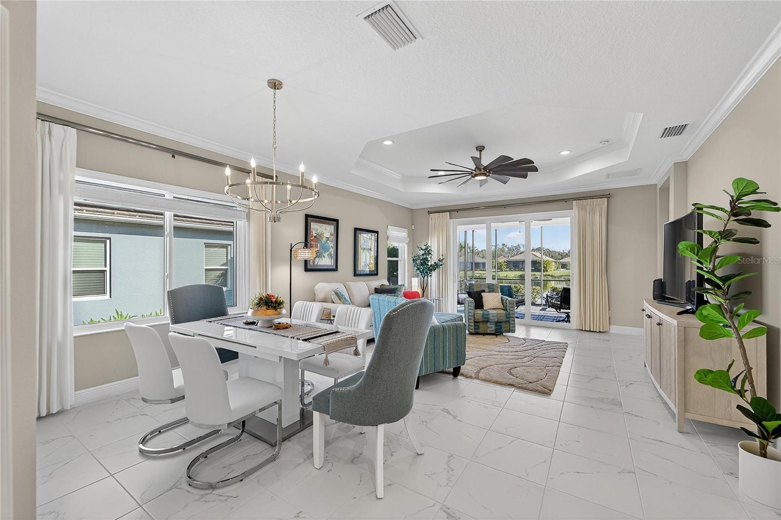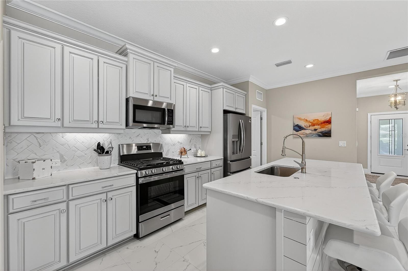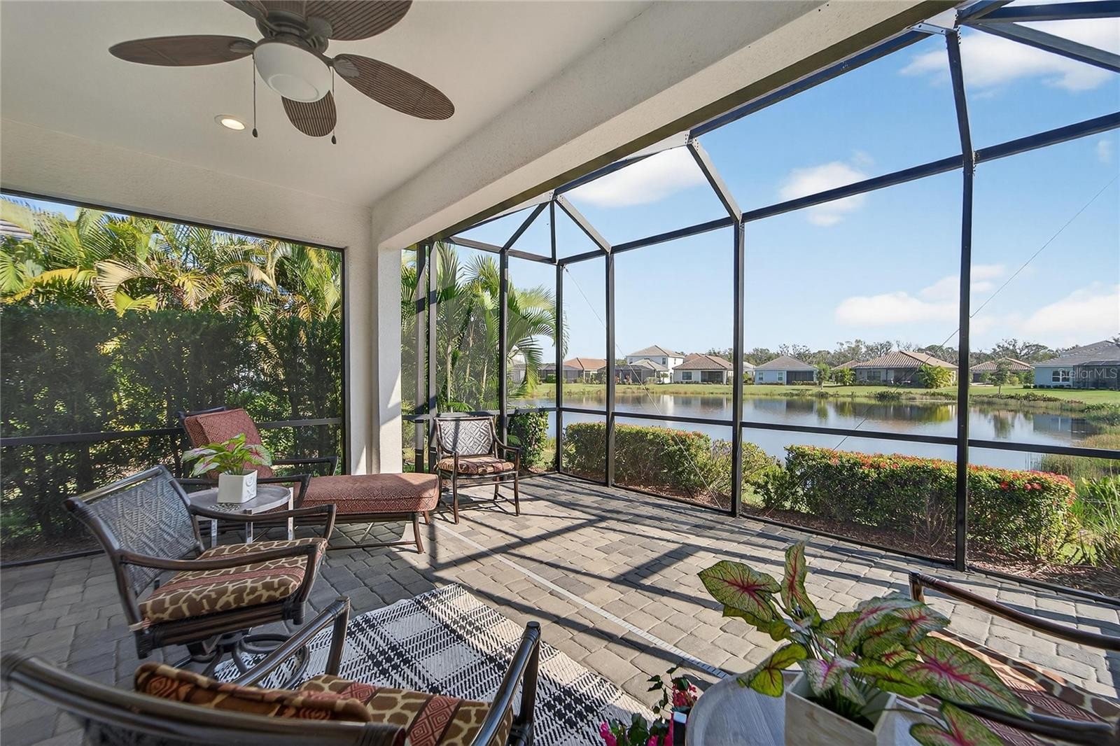 Experience effortless elegance in this exquisitely appointed villa located within the prestigious gated community of Indigo at Lakewood Ranch. This prestigious home has been thoughtfully reimagined with sophisticated updates in 2024–2025. This 3-bedroom, 2-bath residence with a dedicated den/study blends timeless design with modern luxury. From the moment you enter, refined finishes and meticulous craftsmanship are on display. Luxury vinyl plank flooring and ceramic tile extend throughout the home, complemented by designer lighting and updated ceiling fans that elevate every space. The gourmet kitchen is a true showpiece, featuring sleek quartz countertops, a custom ship-lap–accented breakfast island, new premium refrigerator, and gas range/oven, ideal for both intimate gatherings and elegant entertaining. The private owner’s retreat is a serene sanctuary, enhanced by spa-inspired quartz finishes, walk-in shower and dual walk-in closets complete with custom-built closet organizers. Every bedroom is thoughtfully designed for comfort and functionality. Seamless indoor-outdoor living awaits on the west-facing, fully screened lanai with brick pavers, where dramatic pond views provide a nightly backdrop of natural beauty. Additional upscale and energy-efficient features include hurricane-impact windows and doors, a whole-house water filtration system, brick-paved patio and walkways, and a spacious 2-car garage. Residents of Indigo enjoy a resort-caliber lifestyle, with access to an elegant clubhouse, state-of-the-art fitness center with activities director, 2 resort-style pools with spa, and pickleball, tennis, and bocce ball courts — all within one of Florida’s most celebrated master-planned communities. This exceptional villa offers a rare opportunity to enjoy elevated living in Lakewood Ranch, where luxury, comfort, and lifestyle converge. **This home is eligible for FULL USDA Financing**