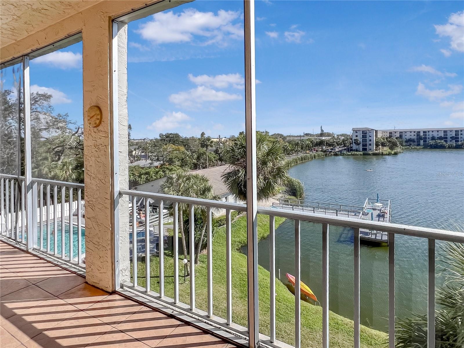 BEAUTIFUL WATER VIEWS! 4TH FLOOR UNIT! FULLY FURNISHED! LOWEST HOA FEES IN THIS BUILDING + BEST LOCATION IN THE COMMUNITY! Welcome to Bayshore On The Lake, a well established 55+ community just a few miles from our renowned Gulf beaches. One of the best buildings in this community... well managed and well located. This spacious, bright, and open condo offers 2 bedrooms and 2 bathrooms with the option to include the furniture for a seamless move-in process. Gently used for only a couple of months each year, this unit is primed and ready for a new owner and has not been used as a rental by the current owner. Separate yourself from the rest with an unbeatable lake view, perfect for morning coffee or evening cocktails. The rear screened porch is large and spans the width of the unit. Also just steps away from the community pool and clubhouse for added convenience. The low HOA fees even come w/ cable and internet included! Local dining, shops, and destinations are just a stones throw away. Surrounded by everything but still feels as if you're a world away. Perfect unit for a variety of lifestyles... full-time, part-time, or future investment. Elevator access in the building makes reaching your new 4th floor unit a breeze. Come see this premium unit and find out why this community is highly desired. Schedule your showing today!