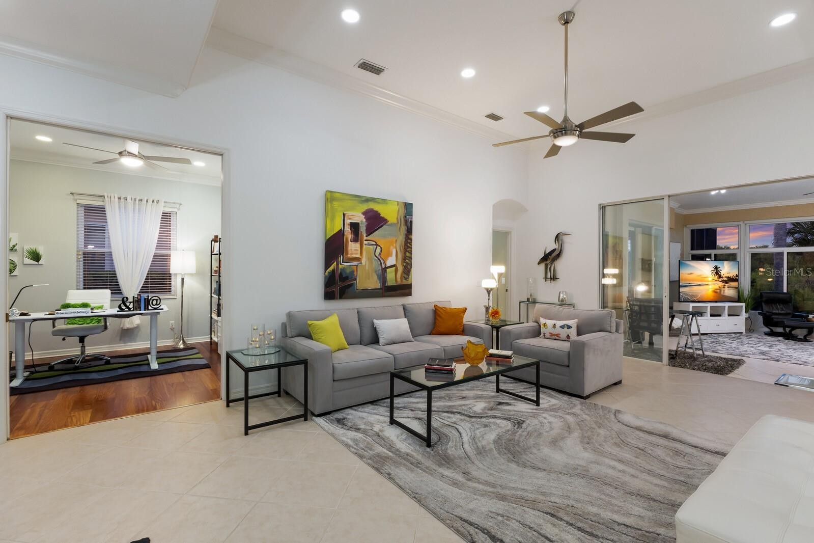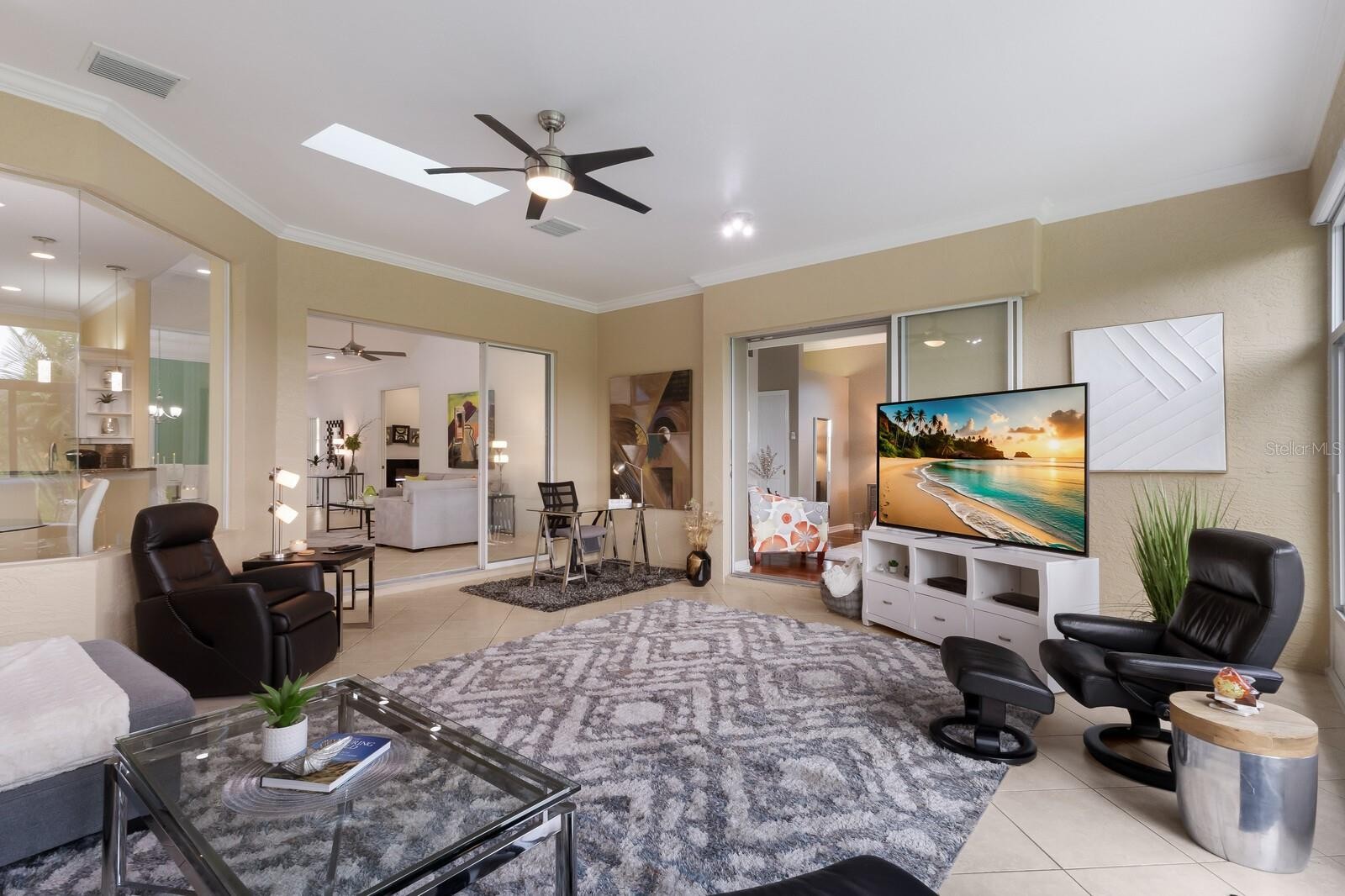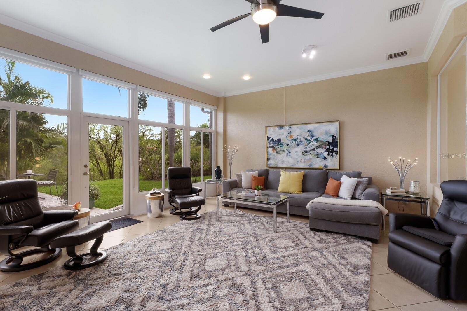 IMMACULATE VILLA partially furnished with 2200SF and a TWO CAR GARAGE! WOW! This 2BR/2BA Villa presents more like a single-family home exuding understated luxury! The sought-after, maintenance-assisted community of Timberly offers you the best of luxury living with a prime location! Positioned only minutes from the exciting new hub at Creekside Commons, placing dining, shopping and community amenities at your fingertips. Relaxed sophistication is the hallmark of this unique split-bedroom residence which features a versatile Den/Flex Room and a light, airy Open Floor Plan with soaring high ceilings! The showstopper is the four-season lanai, reimagined as the ultimate great room—offering serene preserve views, exceptional privacy and a front-row seat to nature’s beauty. A $44,000 renovation added all-new custom windows, new blinds and an enhanced electrical system, creating a light-filled space ideal for entertaining and quiet morning reflection. This distinctive room opens seamlessly to a peaceful garden hideaway with an ADDITONAL PRIVATE SCREENED LANAI, just outside your door! The added space expands your options, creating an inviting setting to unwind or gather with friends while enjoying the coastal lifestyle year-round. Inside, refined upgrades elevate every detail—soaring high ceilings with molding detail is accented with fresh pops of color to deliver a space that is stylish and approachable. The modern eat-in kitchen blends premium granite with a chic, newly installed backsplash and sleek stainless appliances. The thoughtfully designed split-bedroom layout positions a guest bedroom and bath at the front while the primary en-suite at the rear offers private lanai access, dual walk-in closets, split vanities and a luxurious whirlpool tub with separate shower. Adding versatility, a flex space with pocket doors can serve as a private home office or seamlessly extend the dining/living room area ~ keeping you connected while providing the option for privacy when needed. You can move in with confidence and peace of mind thanks to a host of premium upgrades—including a powerful four-ton air conditioner with air purifier, a newer roof with skylight and roof vents, high-impact storm windows, fresh paint, custom paver driveway, and rich engineered hardwoods ~ all bringing comfort, style and security under one roof. Fresh, modern landscaping and new gutters have been added to enhance the home’s polished curb appeal. Beyond its welcoming neighborhood complete with Community Pool, Timberly offers you unparalleled convenience with quick access to Ellenton Prime Outlets and Interstate 75 for easy travel to Tampa and Sarasota airports and just minutes from the vibrant community of Lakewood Ranch. Southwest Florida's pristine beaches and Sarasota’s vibrant downtown are in proximity where residents can enjoy a wealth of recreational options paired with world-class culinary and cultural offerings. Your opportunity awaits to embrace the coastal lifestyle now by making your home in Parrish’s vibrant and thriving community, where small-town charm meets modern convenience and everyday feels like a Florida getaway! Call us today for your private showing!