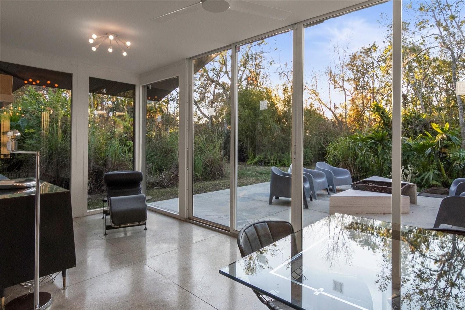 This private wooded 0.6 acre lot is located conveniently halfway between downtown Sarasota and the UTC Mall. Built in 1984, this unique home gives a Mid Century vibe. With its glassed-in sunroom adjacent to the great room and kitchen, the home is bright and cheery. The open floor plan opens up onto the vast back yard that continues endlessly on protected preserve land. The patio area is just off the sunroom and offers plenty of space both covered and open for entertaining. The built-in outdoor grill and covered patio are perfect for an al fresco dining experience. Lighted walking paths wander around the pond and the backyard glows with lots of landscape lighting. With the lush irrigated landscaping, the backyard resembles a mini Selby Garden. The three bedrooms and three bathrooms offer lots of options for a den or office setting. All bathrooms have been remodeled with a sleek modern design. You also have an option to step into the private backyard for an outdoor shower experience! Though the house is located on the edge of a flood zone, it has never flooded and sits higher than most homes in the neighborhood. The home has a newer metal roof that will last for decades. This is a very cool home on a unique lot in a great location and you will be impressed by both the home and setting. Call for a showing today!