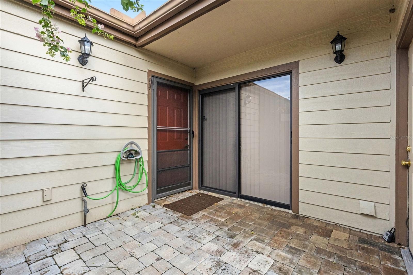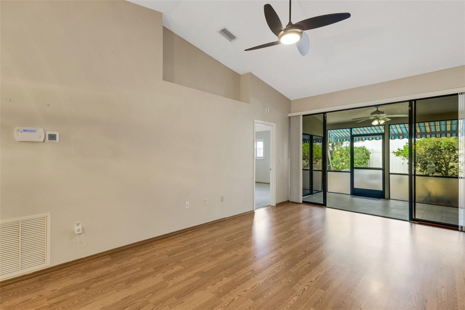 Tucked away in a small, quiet community yet close to all the action near the UTC Mall—where shopping, restaurants, entertainment, and the new Mote Aquarium are right at your doorstep—this 2-bedroom, 2-bath villa offers the perfect blend of convenience and tranquility. Enjoy front and rear courtyards that create a private tropical paradise for outdoor living, complete with your own lemon tree loaded with fruit. Sliding glass doors from the kitchen, primary bedroom, second bedroom, and living room make these spaces feel like natural extensions of the living area. Features include an attached one-car garage with room for storage and a workbench, a NEW ROOF (2023), and Plantation Shutters and Hunter Douglas Vertiglide shades for carefree living. A built-in desk with shelving and a queen-sized Murphy bed in the second bedroom give this room the flexibility of an in-home office or guest space. Close the hall pocket door from the living room to convert this area into a private guest suite. The kitchen and bathrooms have been tastefully updated with beautiful countertops and vanities. A convenient laundry area is tucked behind louvered doors in the kitchen. The friendly community offers a clubhouse, tennis and pickleball courts, and a sparkling pool right around the corner. This home checks all the boxes for enjoying the Florida lifestyle: an excellent location, inviting indoor-outdoor living areas, ample storage, great amenities and bright, airy rooms made for relaxing. Come and see if this is the right place for you!