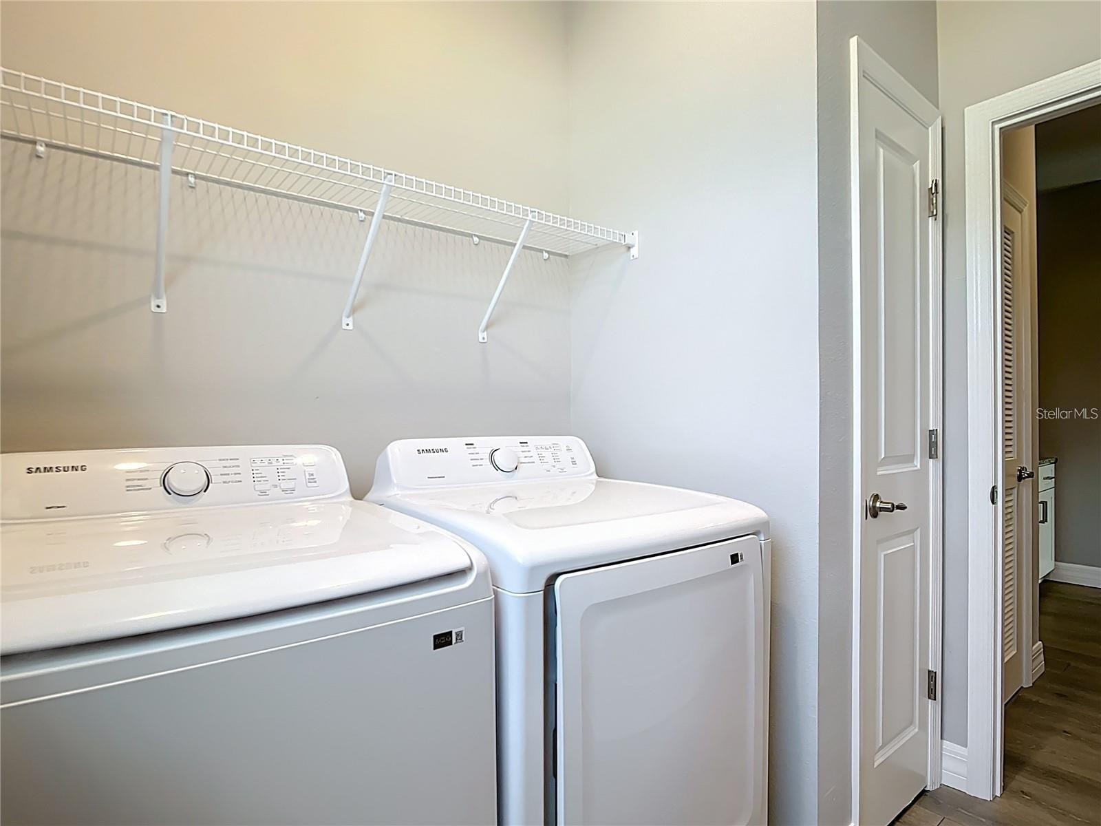 Completed and move-in ready. Model Photos. This concrete block 4-bedroom 3-bathroom 2 car garage home has 80 ft canal frontage and is not in a Flood Zone. This home boast a modern design with high ceilings and features an open spacious floorplan design. With an awesome gourmet-inspired kitchen that features white cabinets with a large center island and subway backsplash and upgrades that include Stainless-steel Samsung appliance package with washer and dryer. Also, from the kitchen walk out onto the spacious lanai through the french doors. Water and scratch resistant luxury wood-vinyl flooring throughout the common areas. A spacious master bedroom with tray ceilings, two walk-in closets, a private bathroom with dual vanity area, and large open walk-in shower. Home also features indoor laundry room connecting the attached garage, drop zone cabinet, double pane windows, and a large sliding glass doors that lead out to the open lanai. This brand new home is a must see!