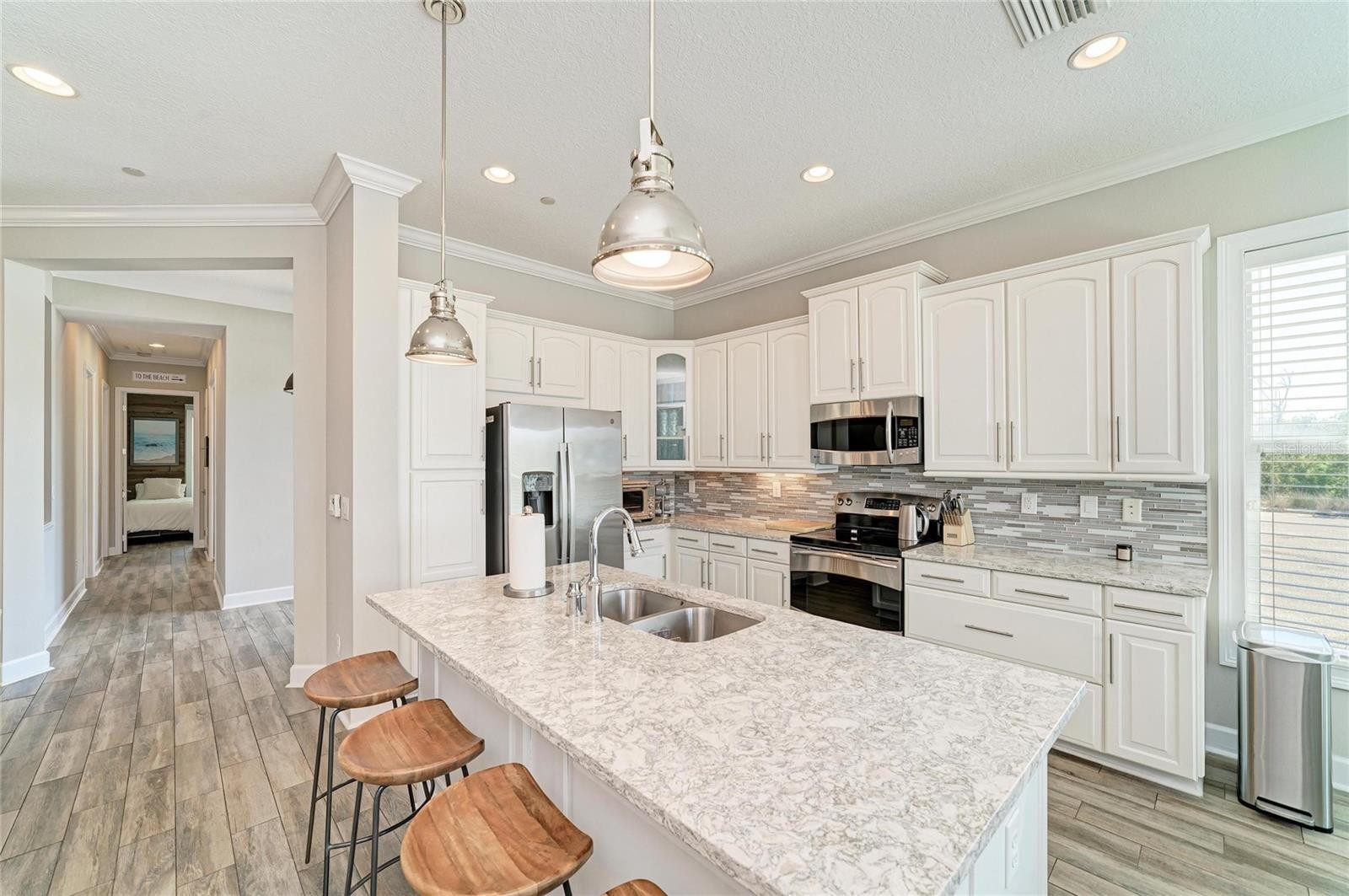 Welcome to refined coastal living in the highly sought-after Abaco floorplan within the Harbour Isle community—where luxury, lifestyle, and effortless elegance converge. This impeccably maintained 3-bedroom, 3-bath residence, complete with a sunroom and a versatile office that easily serves as a fourth bedroom, offers a rare opportunity to experience resort-style living paired with the comfort and sophistication of a meticulously upgraded home. From the moment you step inside, sparkling water views over Sapphire Lake create a serene and captivating backdrop. Perfectly positioned as a private end unit at the edge of the community, the home offers an exceptional sense of privacy—with no visible neighbors and sweeping views of the lake and the lush expanses of Perico and Robinson Preserve just beyond your windows. Pride of ownership is evident in every detail. Thoughtfully enhanced and beautifully maintained, the home reflects a seamless blend of modern convenience and timeless design. Refined updates include low-VOC interior paint, upgraded tile flooring in the guest suites, a beautifully reimagined kitchen, elegant lighting, and a professionally finished epoxy garage floor. Additional enhancements such as a newer HVAC system, whole-house and kitchen water filtration, an updated alarm system, and refreshed fixtures further elevate the living experience. Smart home features—including a Ring entry system, remote thermostat, and an advanced detergent-free laundry system—bring ease and efficiency to everyday living, while updated appliances ensure both style and functionality throughout. Beyond the residence, Harbour Isle delivers an unparalleled coastal lifestyle. Residents enjoy exclusive access to a private beach club overlooking Anna Maria Sound, featuring a resort-style pool, fitness center, Sky Bar, and scenic walking trails. Kayaking, paddleboarding, and sunset watching become part of your daily rhythm, while the gated community offers both peace of mind and a vibrant social atmosphere. An on-site marina provides direct access to the Gulf, inviting effortless days spent on the water. Ideally located just minutes from the sugar-white sands of Anna Maria Island, this home places you at the center of Florida’s most treasured coastal destinations. Explore charming boutiques, waterfront dining, and cultural attractions in nearby Bradenton and Sarasota, or enjoy easy access to biking and hiking through Robinson, Perico, and Neal Preserves, along with boating, golf, and world-class beaches. This is more than a home—it’s a lifestyle defined by comfort, quality, and coastal sophistication. Schedule your private showing and begin living a life you don’t need a vacation from, today!.