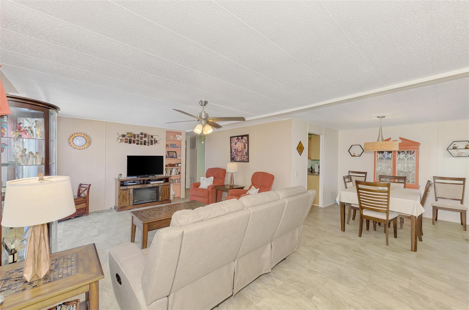 Attractive, rarely available, four bedroom, 2 bath manufactured home, on one of the largest lots in resident-owned Sandalwood Park. Your home features a large kitchen, with new countertops, new sink and new hardware. Plenty of counter space and a large closet pantry. Newer dishwasher and range hood. The living room has sliders out to your new outdoor porch. Screened lanai has ample space and a storage shed and laundry room at the end of it. Driveway extension and golf cart parking. Plenty of closet space. The home has been well-maintained, with new windows installed in 2020, Newer-West Shore Homes shower added in guest bath. AC system replaced in 2018. Roof-over completed in 2021. Sold partially furnished. Sandalwood Park offers a community heated pool, clubhouse, with a fitness room and library, bocce and shuffleboard courts a putting green, dog park and more. This is a great central location, within 4 miles, to beautiful downtown Venice and the beaches on the Gulf of America. Come see this great buy today!
