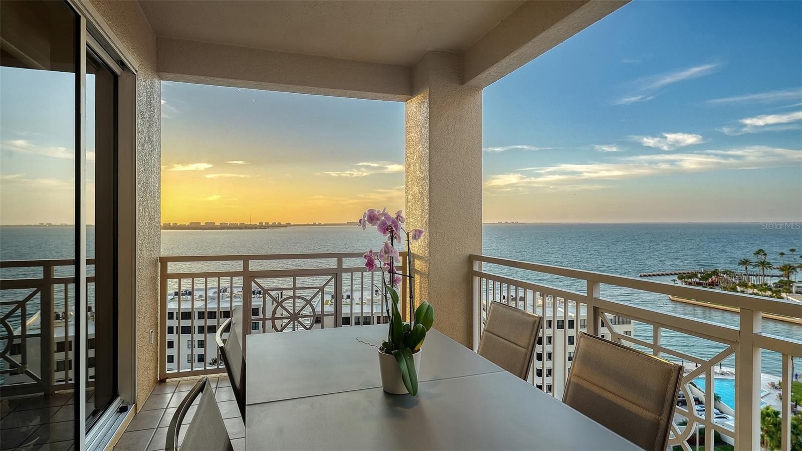Arrive by private elevator directly to the grand foyer of this tenth-floor residence at the Ritz-Carlton Tower Residences, ideally positioned within the coveted ’05 stack—widely considered the premier vantage point in the building. This preferred orientation captures sweeping, unobstructed panoramas of Sarasota Bay and the Ritz-Carlton marina, complemented by spectacular west-facing sunsets. Artist-crafted glass double entry doors with custom illuminated accents provide a striking arrival and set a tone of understated elegance throughout. Residence #1005 offers a highly sought-after four-bedroom layout with four full baths, thoughtfully designed for both refined entertaining and everyday comfort. An openconcept floor plan is enhanced by wood flooring throughout and anchored by a centrally located kitchen featuring a breakfast bar, stainless-steel appliances, dual convection ovens, and an induction cooktop. Floor-to-ceiling, hurricane-rated windows flood the interior with natural light, while two expansive terraces extend the living space outdoors for effortless entertaining. A split-bedroom design ensures exceptional privacy for owners and guests. The primary suite is distinguished by a double-door entry and custom underlit accent shelving, an en-suite marble bath with dual split vanities, private water closet and custom-fitted walk-in closets. The fourth bedroom / study serves as a versatile retreat, highlighted by a gas fireplace framed by floor-to-ceiling built-in cabinetry and an adjacent full bath. A new HVAC system installed in 2025 adds comfort and peace of mind. The residence includes two assigned under-building parking spaces—one conveniently located near the side lobby entrance. Additionally, 2 climate-controlled storage units, one conveniently located just outside the residence. The Tower Residences offer the legendary Ritz-Carlton lifestyle, featuring dedicated private concierge service, a state-of-the-art fitness center, massage and wellness rooms, sauna, resort-style heated pool and spa, private theater, and beautifully appointed social and entertaining spaces. Recent enhancements include a reimagined lobby and entry experience, refreshed landscaping, and an inviting outdoor lounge with grilling facilities. Additional conveniences include 24-hour in-residence dining, a private interior corridor with direct access to the Ritz-Carlton Hotel’s amenities, restaurants, and spa, as well as valet parking for residents and guests. Perfectly positioned along Sarasota’s Bayfront and downtown corridor, with easy access to St. Armands Circle, Lido Beach, cultural attractions, and fine dining, this exceptional offering represents a rare opportunity to secure one of the most desirable residences within the Tower.