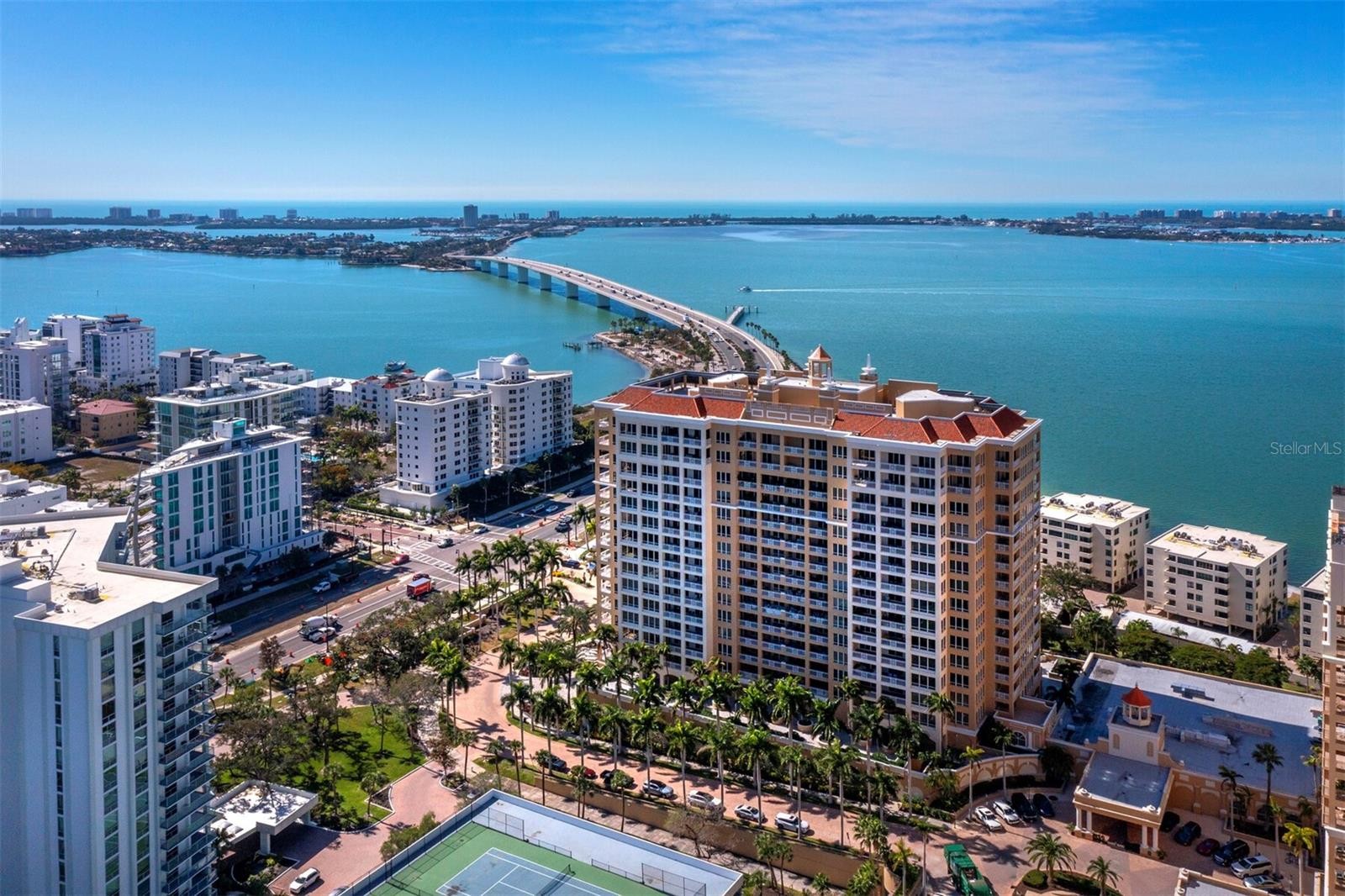 Set high on the 14th floor of the private, luxurious Ritz-Carlton Tower Residences, this elegant three-bedroom, three-bath residence captures breathtaking views of the blue-green waters of the Gulf and Sarasota Bay. Every room with Floor-to-ceiling windows fill the home with natural light, framing ever-changing skies, sparkling water, and glowing sunsets that feel like they were made just for you. Step outside to the nearly 600-square-foot terrace—perfect for morning coffee, sunset cocktails, and effortless entertaining. Inside, the professionally designed interior features gorgeous hardwood flooring throughout, custom cabinetry and built-ins, motorized blinds, plantation shutters, and an integrated entertainment center with televisions and surround sound—creating a space that is both elevated and comfortable. Every detail is designed to feel refined, inviting, and easy to live in. Living at The Ritz-Carlton is more than just owning a beautiful residence—it’s a world-class lifestyle with legendary service. Owner amenities include beautifully appointed social and recreational spaces, state-of-the-art fitness facilities with sauna and steam baths, a massage room, and a resort-style outdoor heated pool and hot tub. Enjoy concierge service, 24-hour in-residence dining, valet, and around-the-clock security. Perfectly positioned in the heart of downtown Sarasota, you’re just moments from the area’s finest beaches, shopping, dining, fishing, golf, theater, and art galleries. Membership opportunities are also available for The Members Golf, Beach and Spa Clubs, offering an additional layer of private, resort-style experiences.