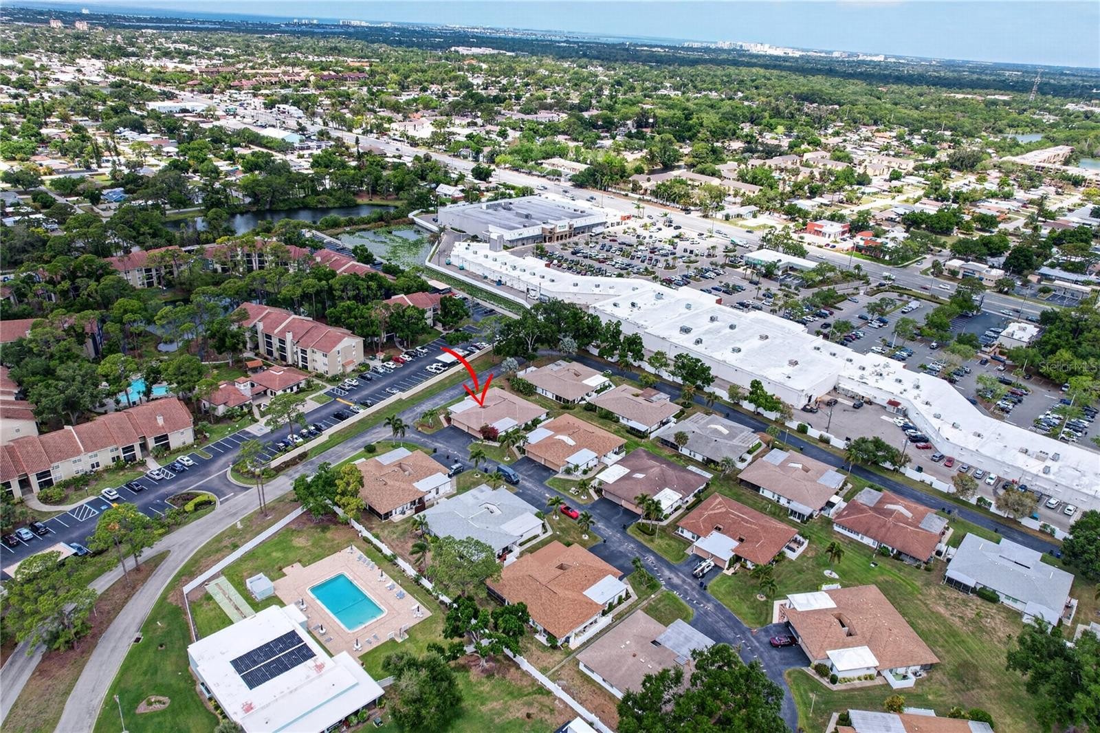 One or more photo(s) has been virtually staged. Great location near Siesta Beach, Gulf Gate, shopping and restaurants! Come see this spacious corner lot villa located in Village In The Pines NORTH- a private hidden community of 2 cul-de-sac streets w/ community pool and a total of 43 extra large villas, all with actual attached garages, which is a very rare commodity. This 2250 sq ft villa is a 2 bd/2ba split floor plan featuring all tile, except carpeted spare bdrm and neutral paint throughout. The spacious entry features an expensive, beautiful solid brass Waterford crystal ceiling light and a large double 5 shelf closet. Remodeled kitchen w/ tray ceiling, beautiful solid wood Glendale oak cabinets w/ 12 extra large drawers, 12 double cabinets and 1 single + neutral light Silestone counter tops & 2018 all stainless hardware & appliances, stainless sink & faucet, digital 3 rack solid surface oven & stove combo w/pull out storage drawer, digital micro +fan combo. Kitchen sliders open onto a fenced pavered patio that could be extended to the length of the unit. The dining room features an expensive Hinkley solid brass chandelier w/ 2 matching side wall decor only sconces, french doors open to a 2026 remodeled outdoor atrium w/ shell drained floor, a perfect place for private sunbathing or plants or table. Living room has 2 vertical windows and steps down to the connecting Florida room w/ large picture windows & a solid metal stained glass look light and fan combo. Master bedroom features terracotta ceramic tile, stainless steel fan, 2 vertical windows, room for king bed & large furniture, professionally designed walk in closet w/ 18 shelves 8 lrg drawers, single & double hung; next to walk in is a large 5 shelf closet + en-suite bathroom w/ safety bars & handles, tiled step in shower & bench, 3 light fixtures, extra long solid wood vanity w/ marble top & lots of drawers. Other side of unit has large spare bedroom w/ 2 long vertical windows, cross wall closet & light beige carpet. Spare bath has sliding door shower/tub combo, lrg solid wood vanity w/ drawers, upscale chrome fixtures & window. Hall has 5 shelf linen closet & brass Waterford crystal ceiling light, same light in laundry room w/ washer, dryer & full wall closet + A/C handler. The door opens into 2 car garage w/ 2 lrg peg boards, lrg work bench, laundry sink tub, 28 gal water heater, moisture barrier reinforced ceiling, digital coded opener & 2 car driveway. This home highlights additional upgrades of new inside solid wood doors throughout with Baldwin brass handles & hinges, upgraded security system, 2023 new roof under warranty and 2020 repiped and replumbed entire interior. Gated community heated pool is 5 driveways east on same side of street, includes small clubhouse w/ bath, shower + changing facilities. Community is 55+, pet free & low fees. Located right behind Beneva Village shopping center w/ over 40 different retail, fast food, hardware, restaurants, grocery, gym, banks, etc. Bus stop just outside front gate connects to Sarasota Westfield Mall to go anywhere. Ready to move right in & enjoy the Florida lifestyle you've been waiting for. Won't last!