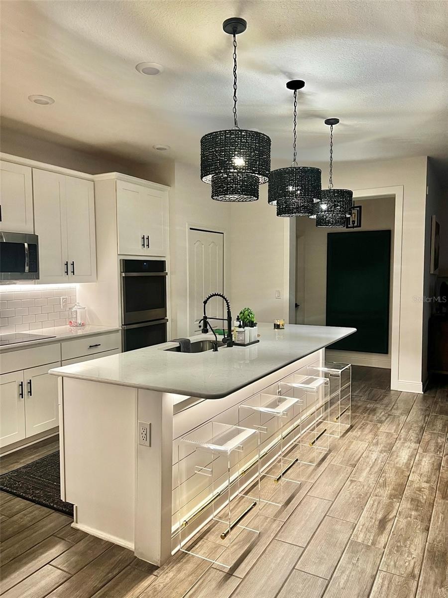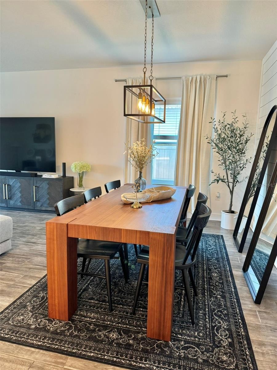 This beautifully upgraded home offers 4 bedrooms and 2 bathrooms with modern designs, custom features, and peaceful pond views with no direct neighbors in the front or the back, creating a rare sense of privacy and open space. Inside, the home features tile flooring throughout with no carpet, dimmable lighting in every room, and a stylish kitchen with stainless steel appliances, under cabinet LED lighting, and ambient island accent lighting that highlights the custom kitchen island seating area. The primary suite includes a professionally designed custom walk in closet with built in cabinetry, shelving, drawers, and storage. The other 3 bedrooms are in the opposite direction to create privacy. The laundry room has also been upgraded with custom cabinetry and storage solutions designed for added organization and functionality. The open concept living and dining area have a designer accent wall same as other walls throughout the home to add architectural character. From the living room you can access the screened lanai that opens to a tranquil backyard featuring California style steppingstone patio seating, pond views, and a fully fenced yard with an additional enclosed dog run. Also, it has a custom motorized sliding door shade provides convenient privacy and light control and can be operated by remote or smartphone. Additional thoughtful upgrades include a smart home security system, whole home water softener system, customizable exterior color changing lighting, an EV ready garage outlet suitable for electric vehicle charging, dimmable lighting throughout the home, and a built in in wall pest control system. A thoughtfully upgraded home offering comfort, privacy, and modern convenience in one of Palmetto’s most accessible locations with quick and convenient access to I 275 and I 75, making travel to Tampa, St. Petersburg, Sarasota, and nearby airports fast and easy.
