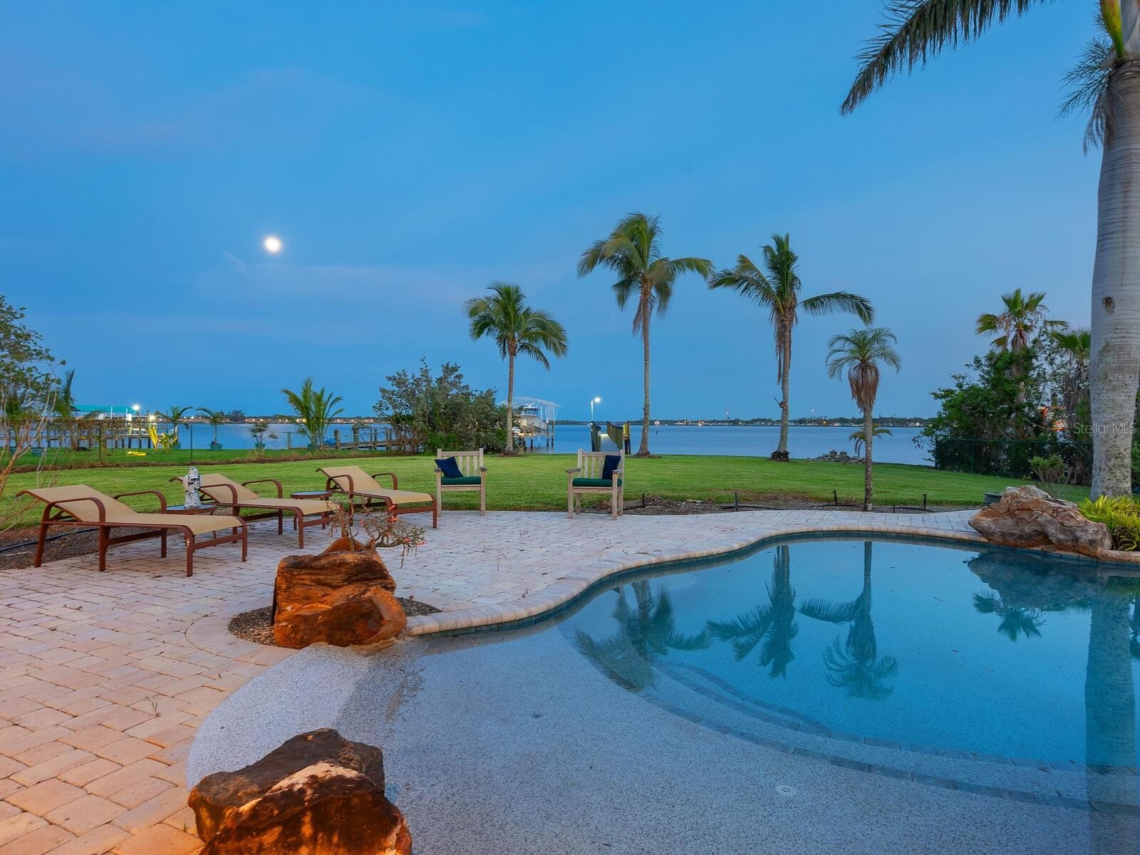 Experience the Best of Florida Living at “Tres Palmas” - Tucked away on a .75 acre lot on the north bank of the Manatee River, this Mid Century Modern home boasts walls of glass that flood the space with natural light and frame breathtaking views of the river and lush tropical landscaping. The home features an open-concept layout with vaulted ceilings, a brand-new kitchen and baths with sleek quartz countertops, and sophisticated design elements throughout. The rear of the home opens completely to the outdoors via a wall of pocket sliders, blending every room seamlessly with an expansive screened porch capturing the river's breezes, the water views and overlooking your tropical pool, spa and summer kitchen. Relax or entertain in your private paradise, complete with a sparkling tropical pool, spa, and a fully equipped summer kitchen—all overlooking the tranquil water. With easy access to I-75, you’re minutes from downtown Bradenton, Sarasota, and St. Petersburg, and within close reach of three major airports. Tres Palmas is more than a home—it’s a retreat. Come live where the river breeze meets timeless design.