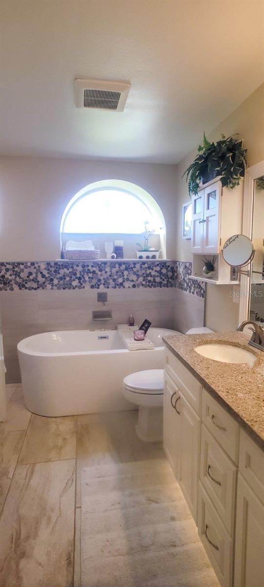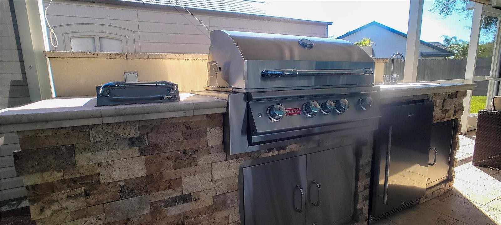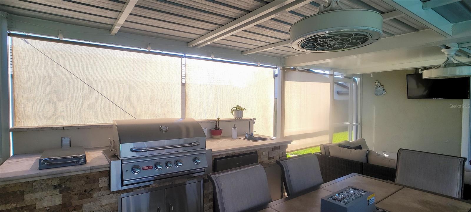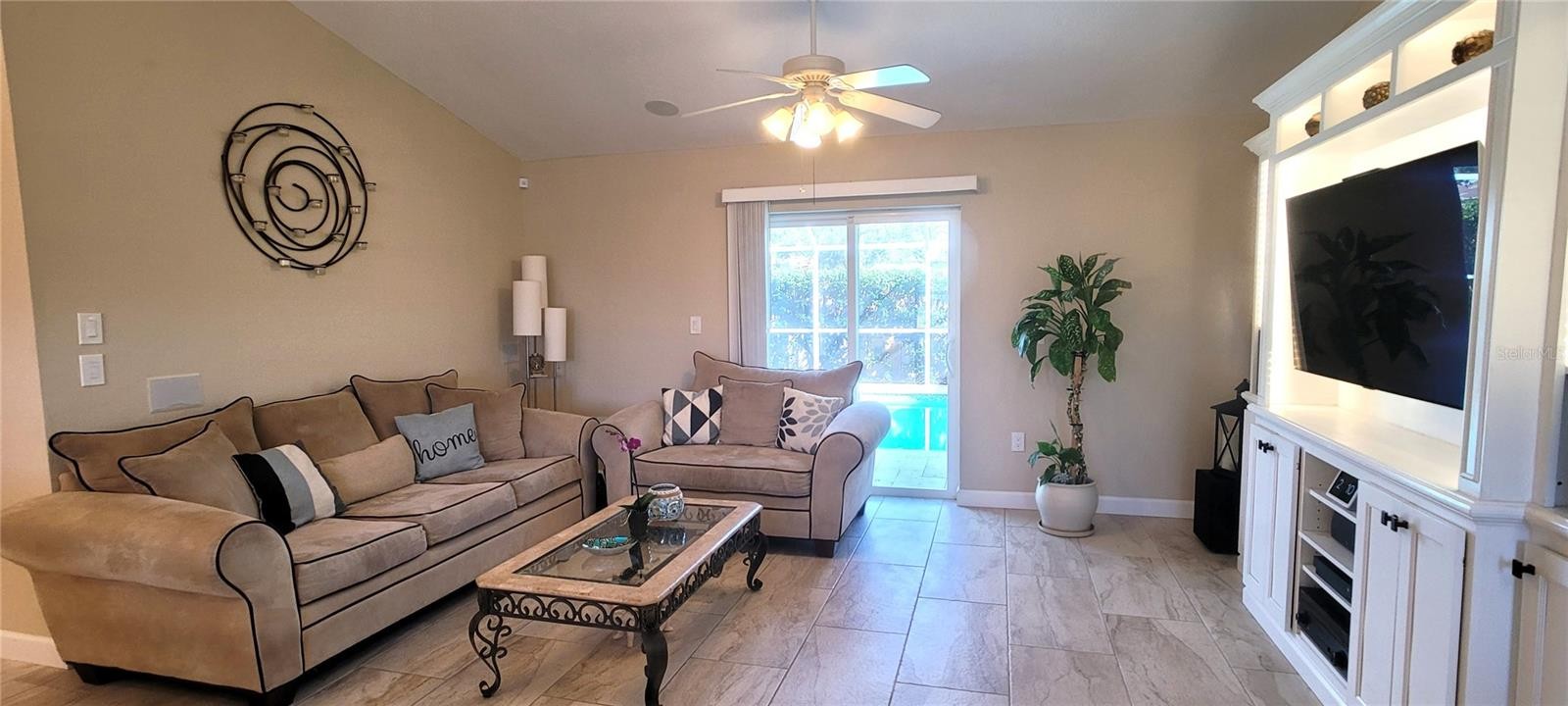 Welcome to your Florida dream home! This meticulously renovated 3-bedroom, 2-bathroom residence plus office has been thoughtfully updated to provide a seamless blend of style and comfort in every corner. At the heart of the home, you’ll find a spacious kitchen featuring an abundance of cabinetry, a dedicated pantry, elegant granite countertops, and a central island. This space flows effortlessly into the open-concept dining and living areas, creating a perfectly integrated environment for family life and entertaining. The interior shines with ceramic tile flooring throughout, complemented by a fresh, light color palette that highlights the modern finishes in every room. The primary suite serves as a private retreat, leading into a spa-like en-suite bath equipped with a double vanity and a modern freestanding bathtub—the ultimate spot to unwind and indulge after a long day. Step outside into your own tropical paradise. The exterior features a sparkling pool surrounded by premium travertine decking, a shaded outdoor kitchen, a dining area, and a dedicated TV lounge. This outdoor oasis is perfectly designed for year-round enjoyment. Additionally, the garage has been expertly converted to maximize the home's living space, now housing a private office, a laundry room, and a convenient storage area. Move-in ready and waiting for you. Roof 04/2025, Other major renovation in 2024 & Pool lanai 2018 / Hurricane shutters / Battery backup System