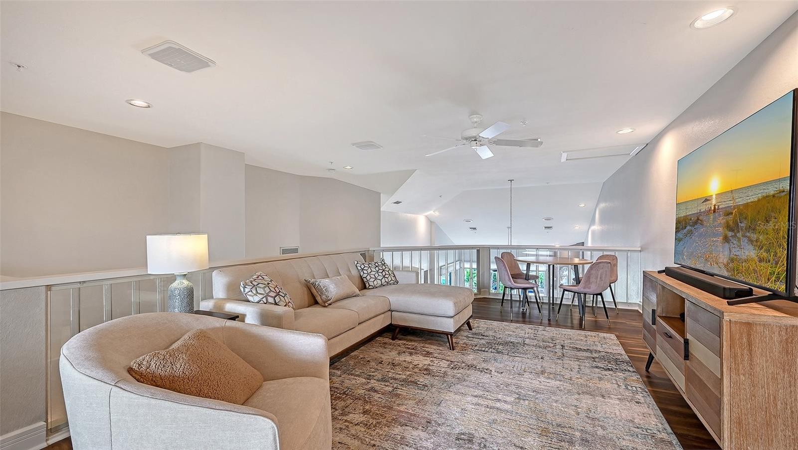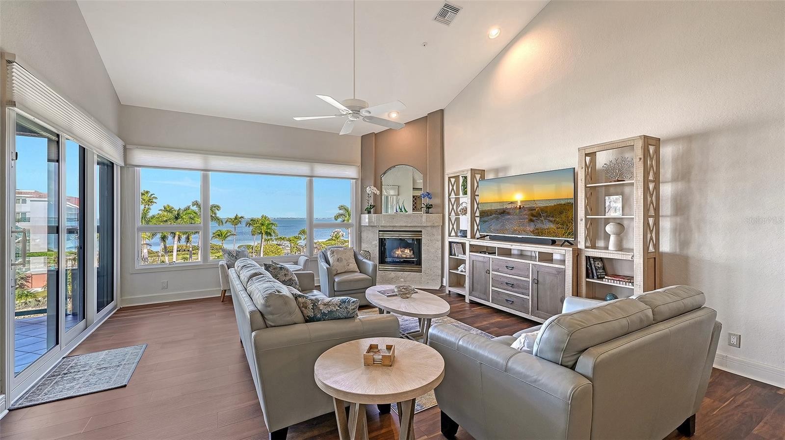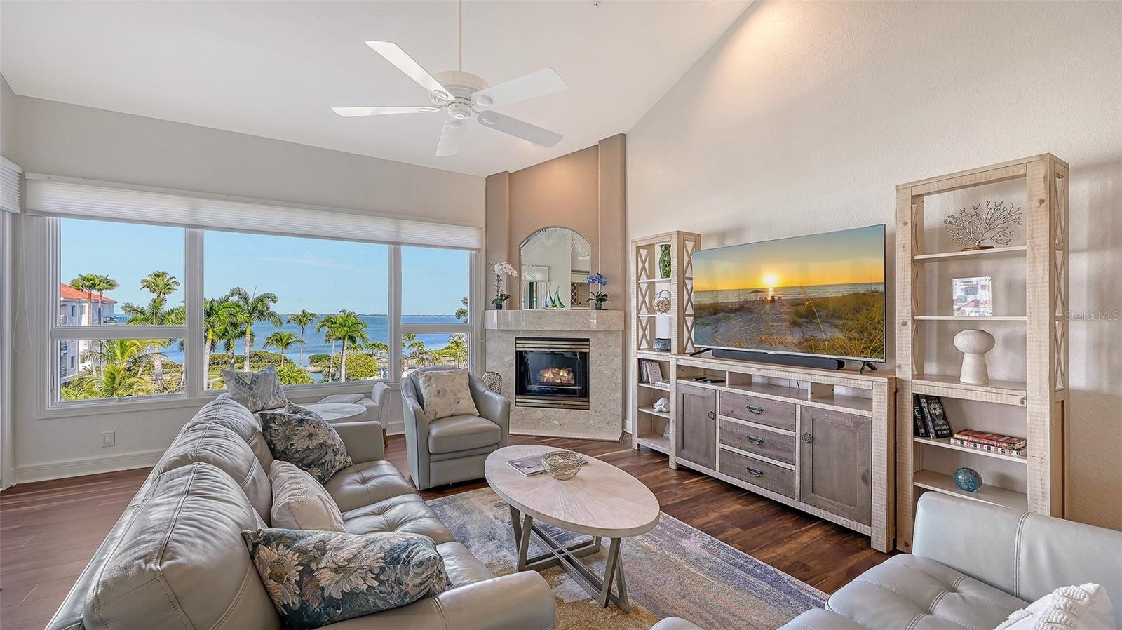 Under contract-accepting backup offers. Welcome to this exceptional penthouse residence at Tangerine Bay on Longboat Key. This three-bedroom, three-and-a-half-bath home is one of the largest floor plans in the community and was originally designed and built as the builder’s personal residence, offering features and scale not found in other units. Spanning two levels, the layout lives like a private home with soaring ceilings, abundant natural light, and generous indoor-outdoor spaces. The main level offers a spacious primary suite, an additional guest bedroom, a fireplace, granite countertops, a full laundry room, and all hurricane-impact windows and sliders, complemented by added storm shutters for extra protection. From the main living areas, enjoy beautiful views of Sarasota Bay along with lush tropical foliage and the resort-style pool. The pool area at Tangerine Bay is one of the most impressive on Longboat Key, designed with meandering landscaping, a surrounding lagoon, and the ambiance of a five-star resort — truly a special setting to overlook each day. The second level features an oversized guest suite, an office, and an additional large living room complete with a Murphy bed, offering great flexibility for guests or multigenerational living. A private two-car garage located conveniently next to the elevator adds ease and security. Tangerine Bay is a gated, amenity-rich community offering a heated pool and spa, cabana, fitness center, clubhouse, community day dock, kayak launch, two pickleball courts, a tennis court, on-site management, and beautifully maintained tropical grounds. This rare penthouse combines generous space, exceptional design, and resort-style living in one of Longboat Key’s most desirable waterfront communities.