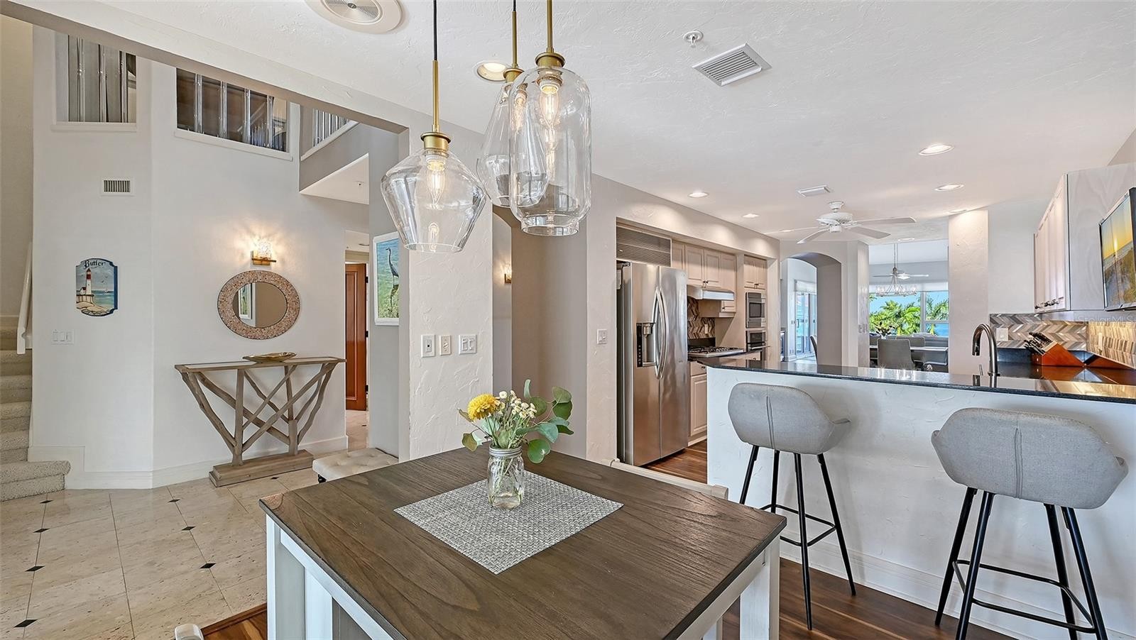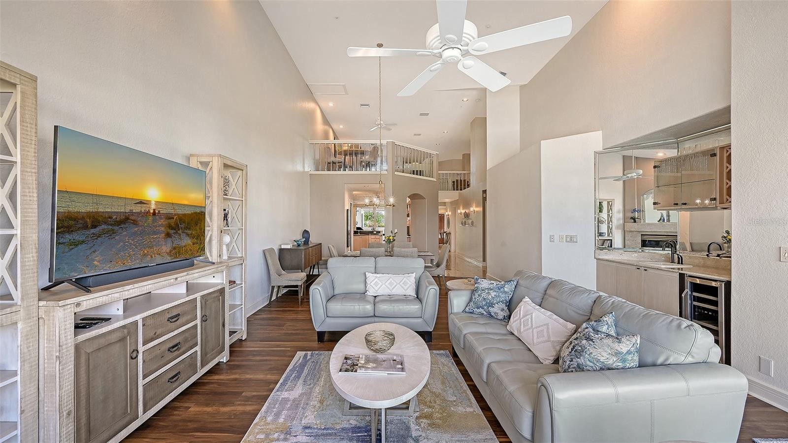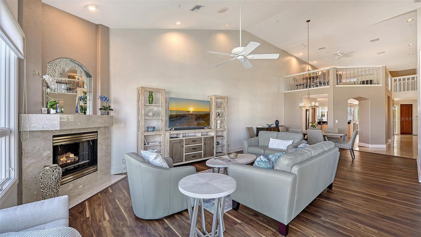 Under contract-accepting backup offers. Welcome to this exceptional penthouse residence at Tangerine Bay on Longboat Key. This three-bedroom, three-and-a-half-bath home is one of the largest floor plans in the community and was originally designed and built as the builder’s personal residence, offering features and scale not found in other units. Spanning two levels, the layout lives like a private home with soaring ceilings, abundant natural light, and generous indoor-outdoor spaces. The main level offers a spacious primary suite, an additional guest bedroom, a fireplace, granite countertops, a full laundry room, and all hurricane-impact windows and sliders, complemented by added storm shutters for extra protection. From the main living areas, enjoy beautiful views of Sarasota Bay along with lush tropical foliage and the resort-style pool. The pool area at Tangerine Bay is one of the most impressive on Longboat Key, designed with meandering landscaping, a surrounding lagoon, and the ambiance of a five-star resort — truly a special setting to overlook each day. The second level features an oversized guest suite, an office, and an additional large living room complete with a Murphy bed, offering great flexibility for guests or multigenerational living. A private two-car garage located conveniently next to the elevator adds ease and security. Tangerine Bay is a gated, amenity-rich community offering a heated pool and spa, cabana, fitness center, clubhouse, community day dock, kayak launch, two pickleball courts, a tennis court, on-site management, and beautifully maintained tropical grounds. This rare penthouse combines generous space, exceptional design, and resort-style living in one of Longboat Key’s most desirable waterfront communities.