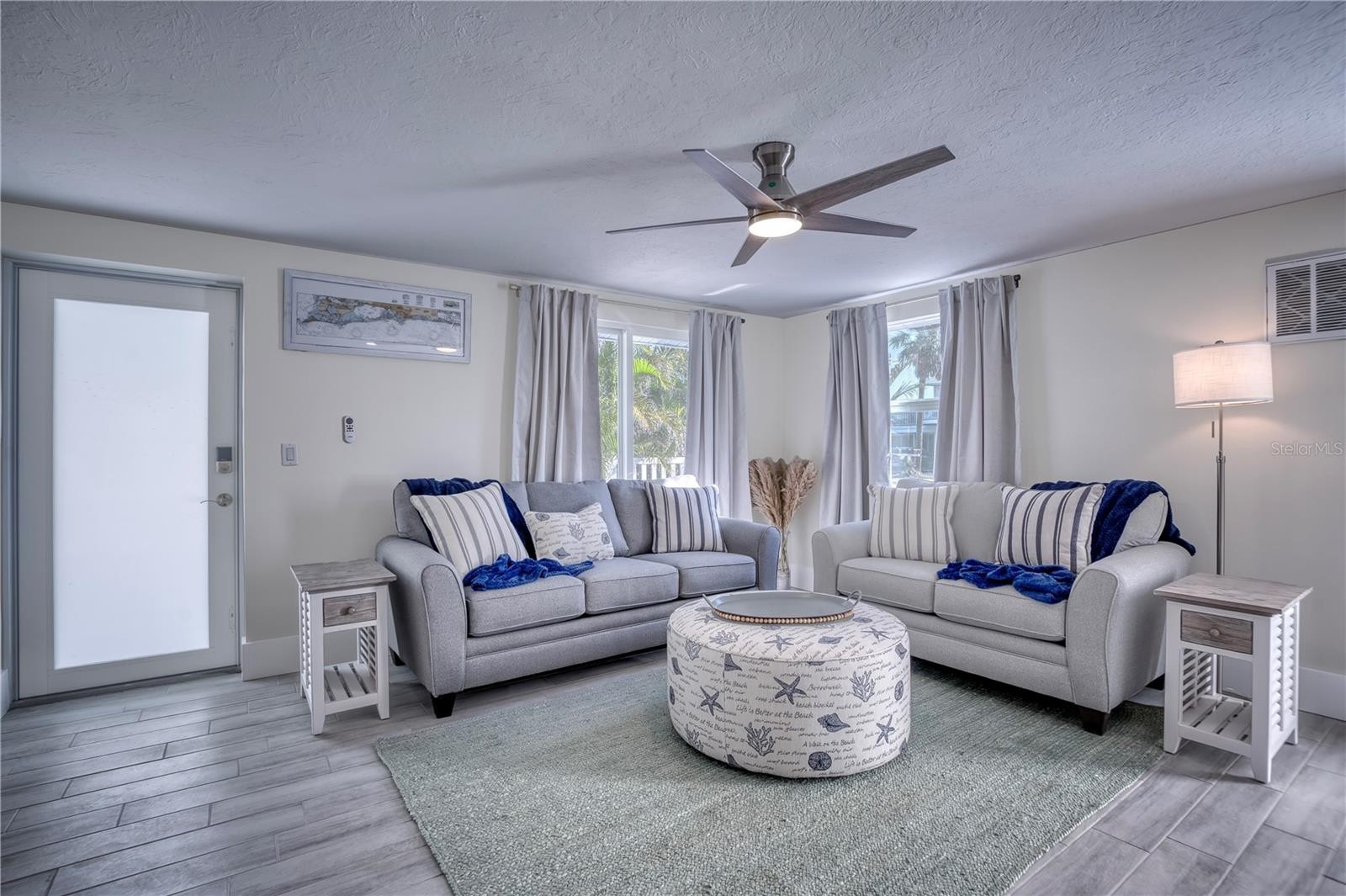 Embrace the pinnacle of island luxury with this impeccably designed, turnkey Holmes Beach duplex—operating as a successful Airbnb and ready for seamless ownership transition. Each side features two spacious bedrooms and one bath, complete with gleaming marble countertops, white shaker cabinetry, elegant, natural-flow tile backsplashes and breathtaking remodeled bathrooms. With fresh paint, brand-new flooring, and a 2022 roof, the home is both stunning and secure. Every door and window is hurricane-rated and newly installed—offering peace of mind in every detail. Outdoors, one side boasts a heated pool with newly installed heater and a gorgeous waterfall feature, while the other side offers a soothing hot tub just installed in 2025 as well. Two outdoor showers add to the coastal experience, surrounded by lush, meticulously maintained landscaping. With five parking spots and separate entrances, you can host larger groups as a whole or individual parties in each unit and your guests will fall in love with this location when they find out public beach access is less than a block away! This duplex is uniquely positioned for maximum rental flexibility. Weekly rentals are fully allowed, making this a prime investment. High-end furnishings down to the last detail—silverware, plates, bedding, towels—ensure a seamless guest experience. Just steps from the vibrant charm of historic Bridge Street—known for its waterfront dining, boutique shops, and lively atmosphere—and minutes from the serene Bean Point, this property is at the heart of one of Florida’s top destinations. This is more than a home; it’s a fully operational, luxurious escape. Whether you’re continuing its rental success or claiming it for yourself, this is an unparalleled opportunity for coastal living and investment combined.
