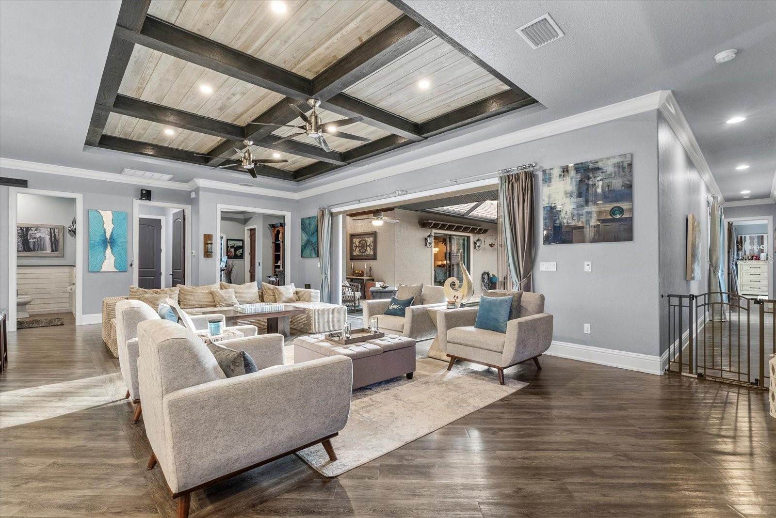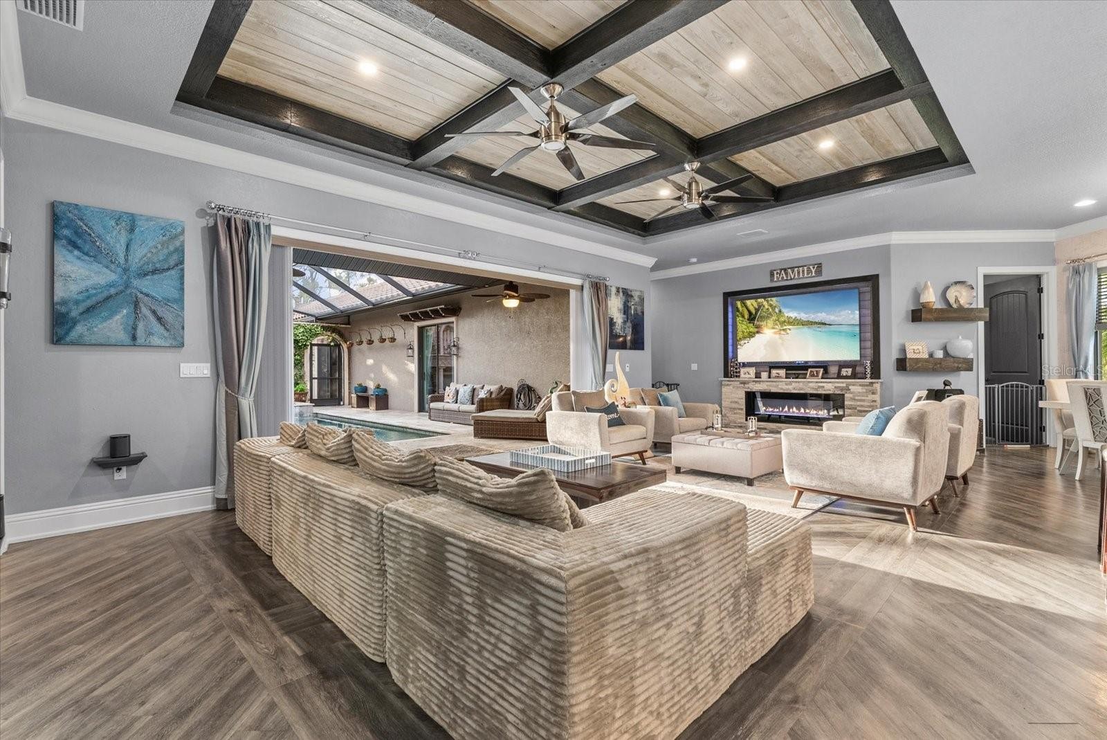 3-acre estate home in North Port Estates featuring 6 bedrooms, 4.5 bathrooms, 3,802 square feet, and a rare courtyard pool design. Built in 2017 with exceptional attention to detail, this custom estate features a resort-style courtyard with a heated pool, covered lanai, and outdoor fireplace, creating seamless indoor-outdoor living ideal for both entertaining and everyday living. Inside, the home highlights an open-concept floor plan with high-end finishes, spacious living areas, and abundant natural light throughout. The chef’s kitchen flows into the main living space, making it perfect for hosting gatherings of any size. A standout feature of the property is the attached 2 Bedroom in-law suite, complete with its own private entrance, full kitchen, living room, 2 large bedrooms, and oversized closets, offering the perfect setup for multigenerational living, extended guests, or potential rental income. Situated on 3 private acres with a long driveway, mature landscaping, and peaceful surroundings, this property provides a rare combination of privacy, space, and flexibility with no HOA restrictions. Conveniently located just 2 miles from the new Sarasota Memorial Hospital North Port campus, minutes from the I-75 on-ramp for easy access to Sarasota, Venice, and Naples, and approximately 4 miles from Publix, shopping, and dining, this home offers the perfect balance of quiet estate living and everyday convenience. This is a rare opportunity to own a gated estate with acreage, a private guest suite, and a courtyard-style pool in one of North Port’s most desirable areas.