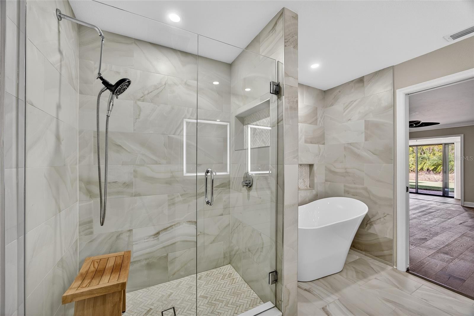 Modern Luxury Meets Coastal Ease – Stunning 2023 Total Renovation - No expense spared! Must be seen to be appreciated! The Ultimate Retreat - step into a masterclass of modern design. This 1,706 sq. ft. Condominium/Villa has been reimagined in 2023, offering a seamless blend of elegance and functionality. With 2,450 total square feet of living space, this home feels expansive, airy, and grounded by rich hardwood floors that flow throughout much of the entire residence. The heart of the home is a culinary masterpiece featuring: • Sleek Black Stainless Appliances and a convenient drawer microwave. • An oversized island with a breakfast bar, perfect for morning coffee or casual hosting. • A sophisticated built-in buffet equipped with a wine refrigerator and dedicated ice maker, making this the premier spot for entertaining. Large and open space living/dining space allowing options with furniture layout. Convenient built ins and dedicated TV space along one wall complimented by an elegant fireplace that add warmth and ambiance to the living areas. Spa-Inspired Sanctuary: The primary suite is a true getaway, offering peaceful outdoor views, direct access to the private paver patio via sliders, three custom closets (two built in and one walk in) and built in TV storage with fireplace beneath. Both the primary and guest baths are finished with exquisite porcelain tile and feature heated LED mirrors, providing a five-star spa experience every single day. Versatility & Peace of Mind • Flexible Layout: The third bedroom is perfectly positioned to serve as a high-end home office. • Total Protection: Enjoy ultimate security and energy efficiency with impact windows throughout and quality window treatments. • Outdoor Living: The seamless transition to the paver patio allows for effortless indoor-outdoor living. • Screened Lanai: Enjoy a screened lanai featuring custom porcelain tilework and wood ceiling with water tranquil water views right off the living/ dining area. • New HVAC system and venting in 2023 • Epoxy garage floor for a luxurious feel • Super quiet & private neighborhood with easy access to I-75, US-41, Siesta Key and Crescent Beach. Great location close to restaurants, shopping plus Sarasota Sports Club and TPC Prestancia Golf Club are just minutes away for the avid golfer. Don't miss this opportunity to make this beautiful home your new Florida retreat or permanent residence! Schedule your private showing today!