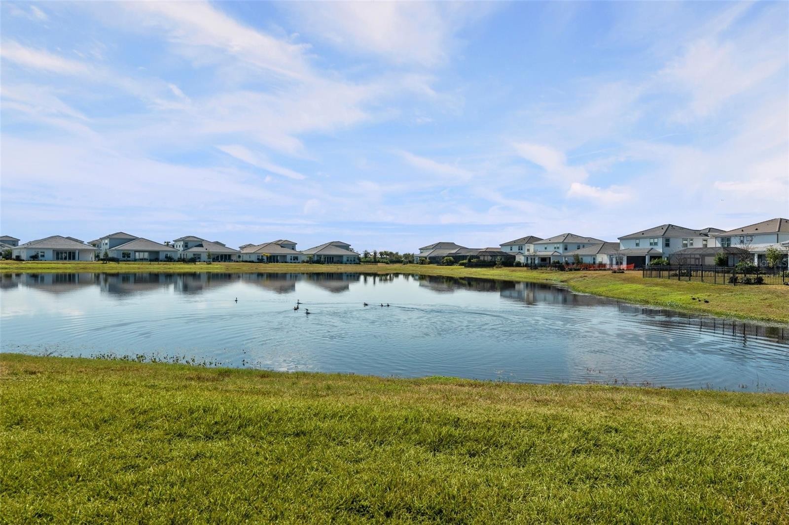 One or more photo(s) has been virtually staged. Welcome to this meticulously maintained 5-bedroom home with a dedicated FRONT OFFICE and UPSTAIRS LOFT, located in the GATED community of Star Farms. Situated on an oversized POND-VIEW lot and NOT located in a flood zone, this property offers space, functionality, and beautiful water views with endless possibilities for the backyard. An UPGRADED glass front door welcomes you into an open and airy floor plan with LUXURY VINYL PLANK FLOORING THROUGHOUT the main living areas. Just off the entry is a flexible room that can serve as a formal dining room, home office, playroom, or den. The great room seamlessly flows into the kitchen, creating an ideal space for everyday living and entertaining. The kitchen features QUARTZ COUNTERTOPS, elegant white cabinetry, stainless steel appliances that convey, and a UPDATED backsplash. The MAIN LEVEL also includes a private guest bedroom and full bathroom, perfect for visitors or multi-generational living. Upstairs, you’ll find four additional bedrooms, two full bathrooms, a versatile loft area, and a convenient laundry room with WASHER and DRYER INCLUDED. The thoughtfully designed split floor plan provides added privacy, with three secondary bedrooms on one side and the spacious primary suite on the other. The primary suite offers dual closets and a luxurious en-suite bath complete with double vanities and an oversized walk-in shower. BLINDS are installed throughout the home, and it has been impeccably cared for inside and out. HOA fees include access to all resort-style amenities, gated entrances, and lawn care, offering true low-maintenance living. Residents enjoy an impressive array of amenities including a clubhouse, tiki bar and on-site restaurant, two resort-style pools, two fitness centers, pickleball and tennis courts, dog parks, walking and biking trails, and vibrant social events and gathering spaces. Ideally located near shopping and dining, Mall at University Town Center, Downtown Lakewood Ranch, Waterside at Lakewood Ranch, top-rated schools, medical facilities, and Sarasota’s beautiful Gulf beaches, this exceptional home offers the perfect balance of luxury, convenience, and lifestyle. Schedule your private showing today.