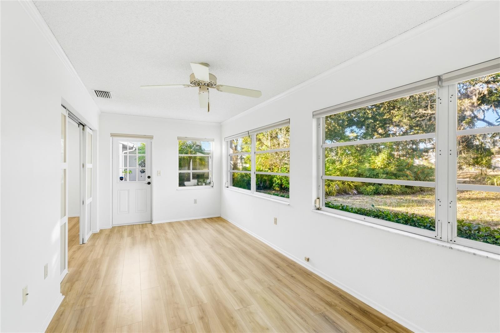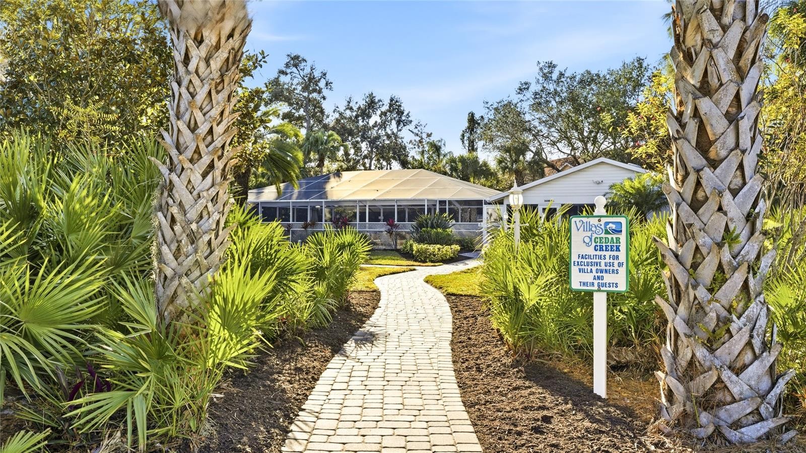 One or more photo(s) has been virtually staged. Located in the Villas of Cedar Creek, this well-maintained 2-bedroom, 2-bath villa offers just over 1,400 square feet of light-filled living space designed for comfort and ease. Surrounded by mature trees and greenery, the setting feels peaceful and established while remaining close to UTC Mall, I-75, Lakewood Ranch, shopping, dining, and everyday conveniences. Inside, the home features updated laminate wood flooring throughout the main living areas and bedrooms, creating a clean, cohesive look. The spacious living and dining areas offer flexible layout options and are enhanced by abundant natural light. The kitchen is bright and functional with stainless steel appliances, ample cabinetry, and a convenient layout that opens easily to the main living space. A highlight of the home is the enclosed Florida room, which adds valuable additional square footage and functions beautifully as a sunroom, home office, or secondary living area. Large windows frame views of the surrounding greenery, reinforcing the calm, residential feel throughout the home. Both bedrooms are generously sized, with the primary suite offering a comfortable retreat complete with a private bath and ample closet space. Additional features include modern lighting, ceiling fans, neutral finishes, and a full-size interior laundry area. The attached two-car garage, accessed via a screened breezeway, provides everyday convenience and extra storage. Residents of Cedar Creek enjoy low HOA fees and access to a community pool and hot tub, along with a walkable neighborhood setting filled with mature landscaping, ponds, and wildlife. This villa is an excellent option for a primary residence, seasonal retreat, or lock-and-leave lifestyle in one of Sarasota’s most convenient locations. **THIS PROPERTY QUALIFIES FOR A 1% LENDER INCENTIVE IF USING PREFERRED LENDER. INQUIRE FOR MORE DETAILS.**