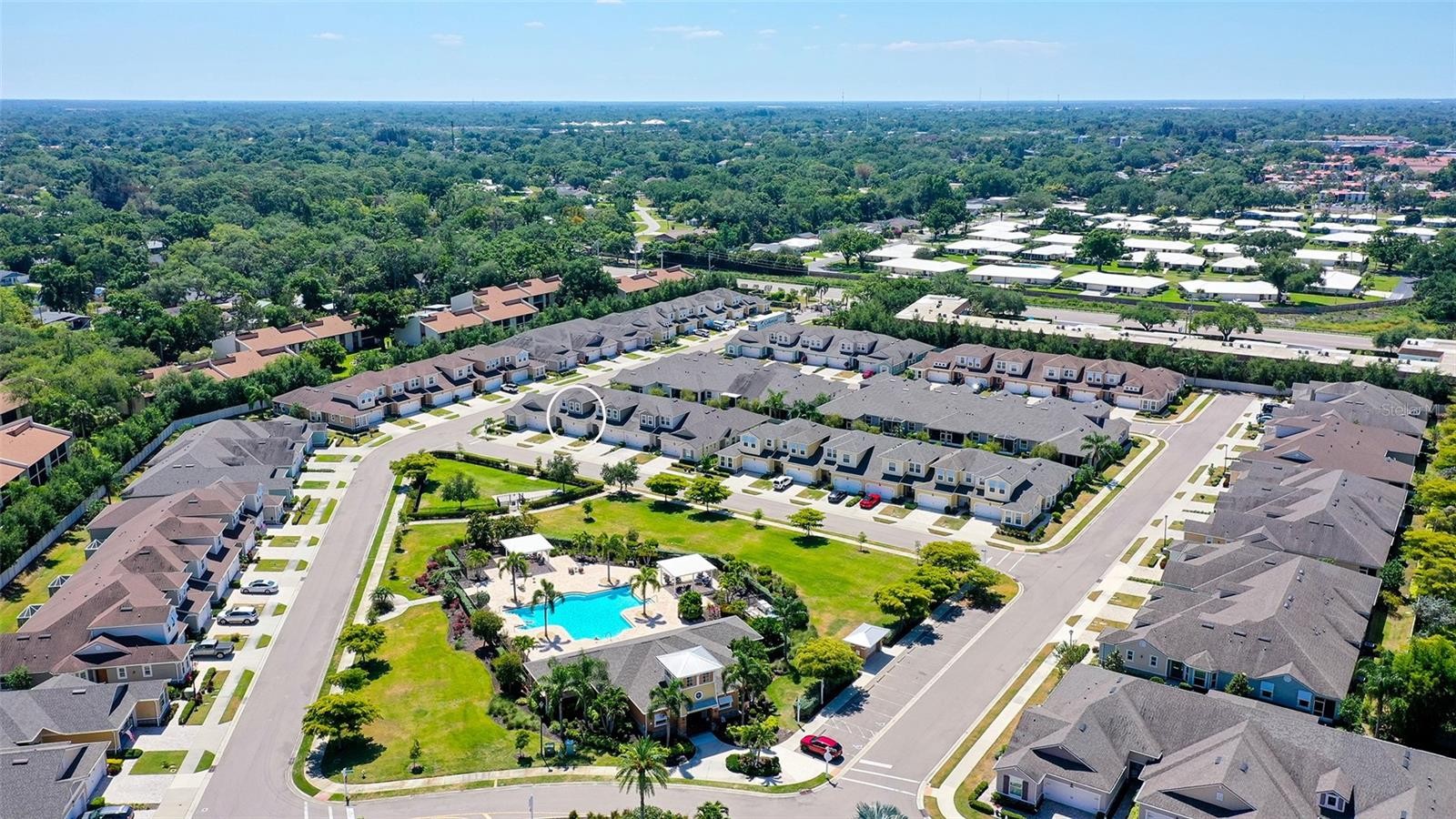 Location is everything, and this exceptional townhome in Enclave at Forest Lakes delivers. Ideally situated in the heart of Sarasota, this gated community offers easy access to two public golf courses, the Legacy Trail, and all major routes, along with resort-style amenities including a pool, dog park, grilling area, and gathering spaces. Built in 2018, the home features ceramic tile flooring and a thoughtfully designed open layout perfect for everyday living and entertaining. The kitchen blends style and function with rich cabinetry, granite and quartz countertops, stainless steel appliances, a stacked stone backsplash, wall oven and microwave, and an electric cooktop. The living and dining areas flow seamlessly to a screened, covered lanai, ideal for year-round enjoyment. Upstairs offers a versatile loft and flex space, along with two spacious bedrooms and a well-appointed bath. The main-level primary suite provides a private retreat with crown molding, dual sinks, a walk-in shower, and a large walk-in closet. Positioned on one of the largest lots in the community and directly across from the pool and dog park, the home offers a rare combination of space and convenience. With no CDD fees and a prime Sarasota location near beaches, dining, and top-rated schools, this home offers comfort, quality, and lifestyle in one exceptional package.