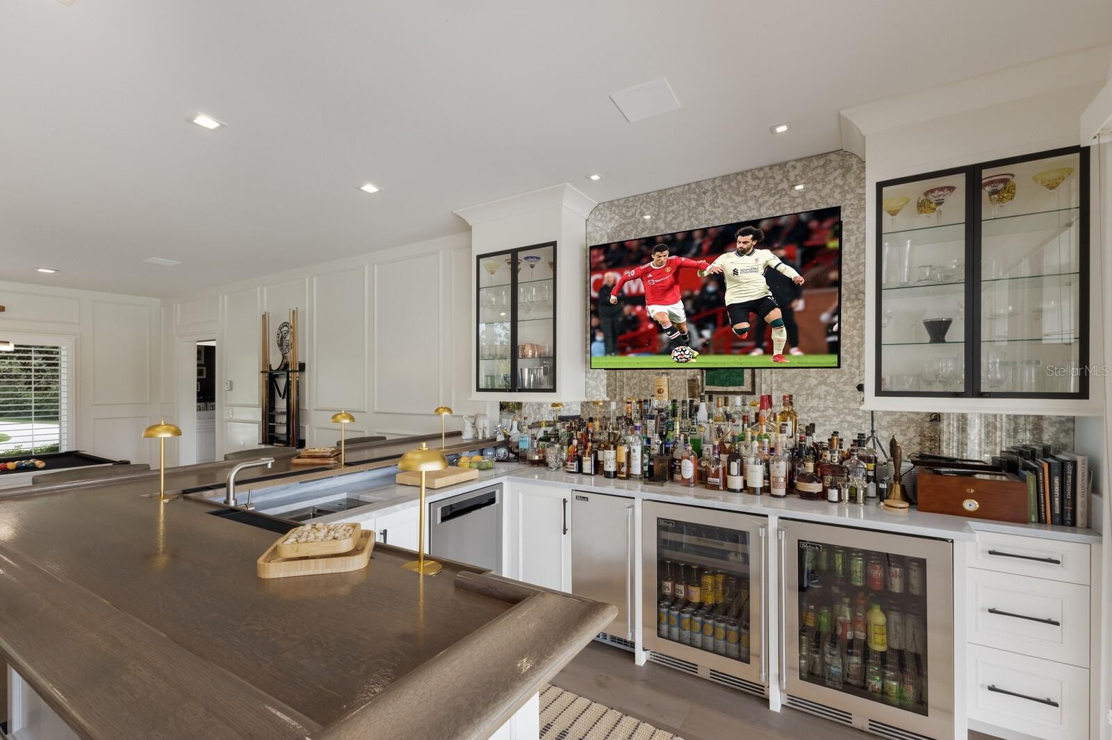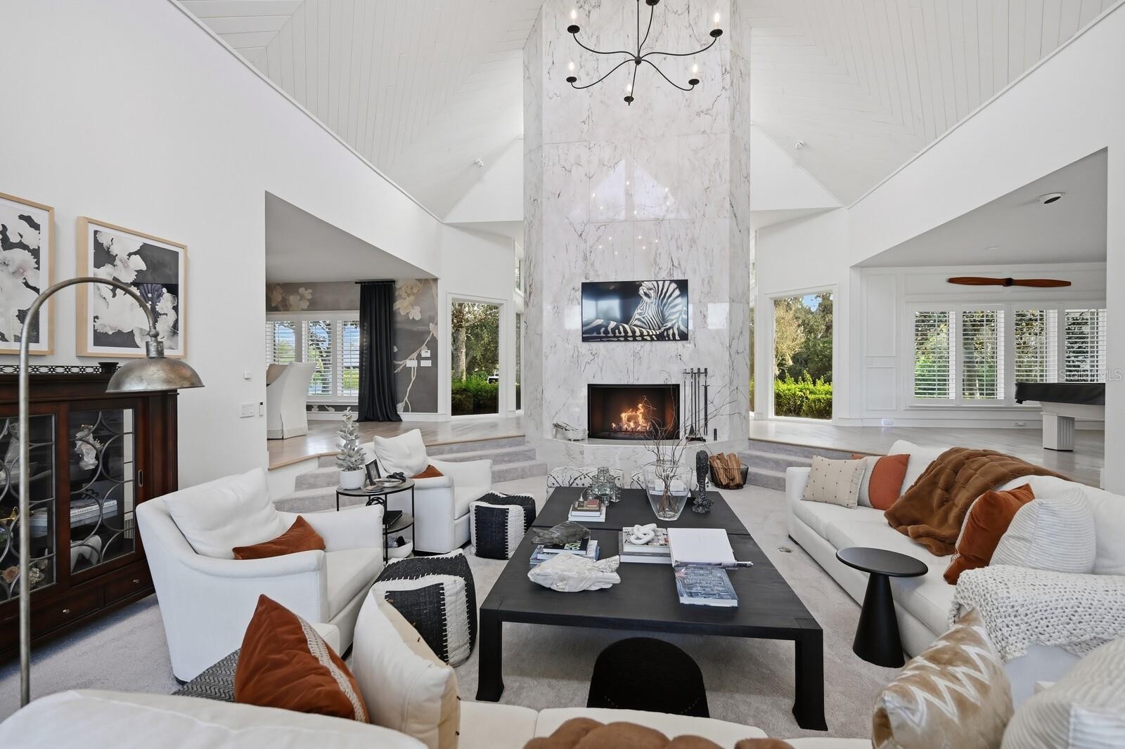 Welcome to 3709 Beneva Oaks Way, an extraordinary estate nestled within the gated enclave of Beneva Oaks, where timeless elegance meets modern luxury on a private, lushly landscaped one-acre sanctuary just minutes from Sarasota’s renowned beaches, shopping, and dining. Completely reimagined in 2021 by esteemed Luxury Home Builder, Vertical l Design+Build and award Winning Interior Design Firm, Trade Mark Interiors, this impeccably curated residence features comprehensive upgrades including all-new pool equipment and heating, whole-house re-plumbing and re-wiring, advanced HVAC ducting with automated controls, a ground-level I-joist floor system, designer lighting an automated landscape lighting, new flooring, alarm system, fresh sod and landscaping, two new septic systems, and a brand-new roof in 2024 for lasting peace of mind. Celebrated for its exceptional design, the home has been featured in Martha Stewart Living, House Beautiful, and Southern Living, with award-winning kitchen, living room, and primary bath recognized by Florida Design Magazine’s Seaglass Design Awards, SRQ Magazine’s Home of the Year, and Best Overall Renovation Honors. Grand double doors open to a breathtaking interior defined by soaring ceilings, walls of glass, and an open-concept layout designed for both refined entertaining and everyday comfort. The dramatic living room showcases exquisite designer lighting and a striking marble fireplace, while the chef’s kitchen is a true showpiece with top-tier Thermador appliances, six-burner gas cooktop, double wall ovens, convection microwave, Fisher & Paykel dishwasher drawers, Bosch dishwasher, dual farmhouse sinks, pot filler, ice maker, wine refrigerator, and an oversized island with bar seating that flows seamlessly to the outdoor living areas. An expansive game room with an old-world, five-star-hotel-inspired bar sets the stage for unforgettable evenings, complemented by a stunning dining room adorned with statement lighting and elegant Japanese-inspired wallcovering. The primary suite is a private retreat with a sitting area, direct pool and spa access, and a spa-inspired bath featuring a soaking tub, walk-in shower, dual vanities, custom cabinetry, and hand-selected antique marble and limestone flooring with radiant heat. Outdoors, the resort-style pool and expansive entertaining areas create a serene oasis for alfresco dining and relaxation, while four generous guest suites with walk-in closets and full bath access providing exceptional comfort. Completing the estate is an oversized three-car garage with workshop, abundant storage, and the ultimate man cave—making this remarkable residence a rare offering that embodies impeccable design, craftsmanship, and elevated living.