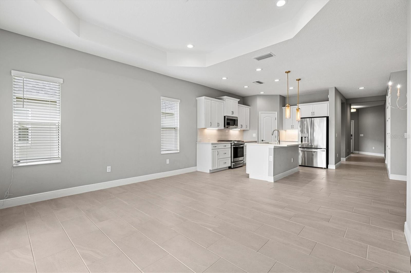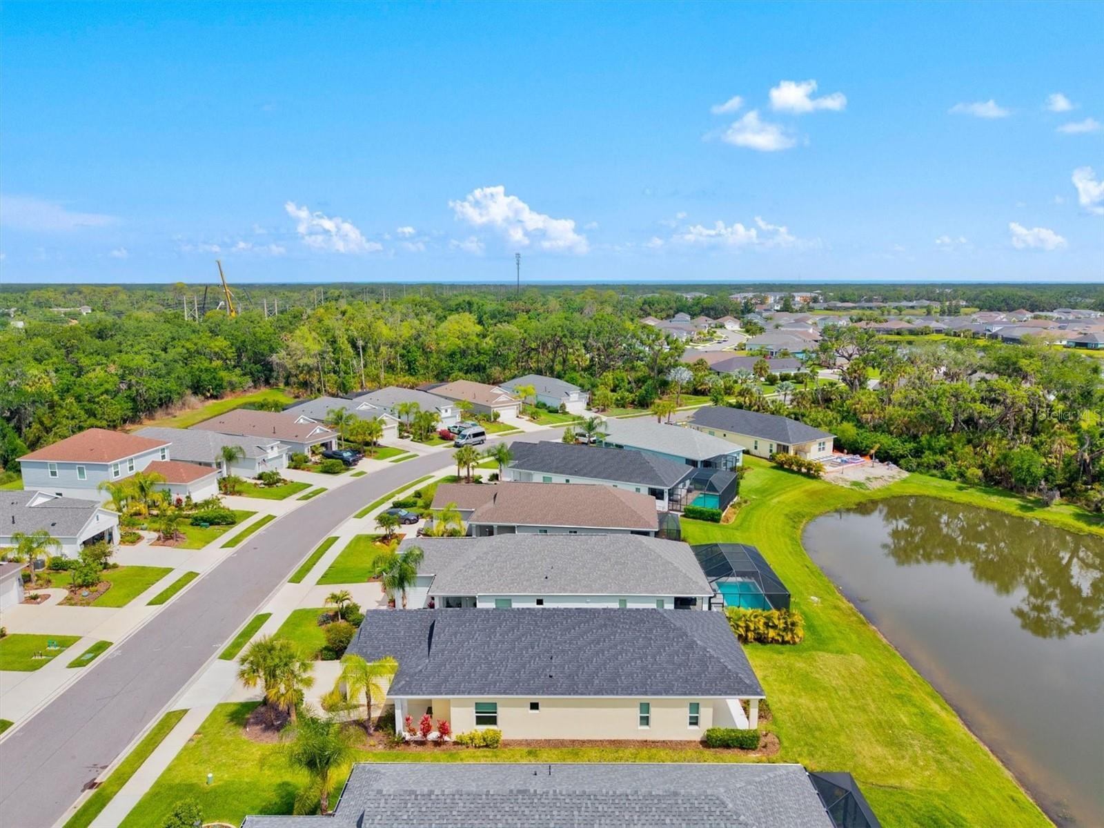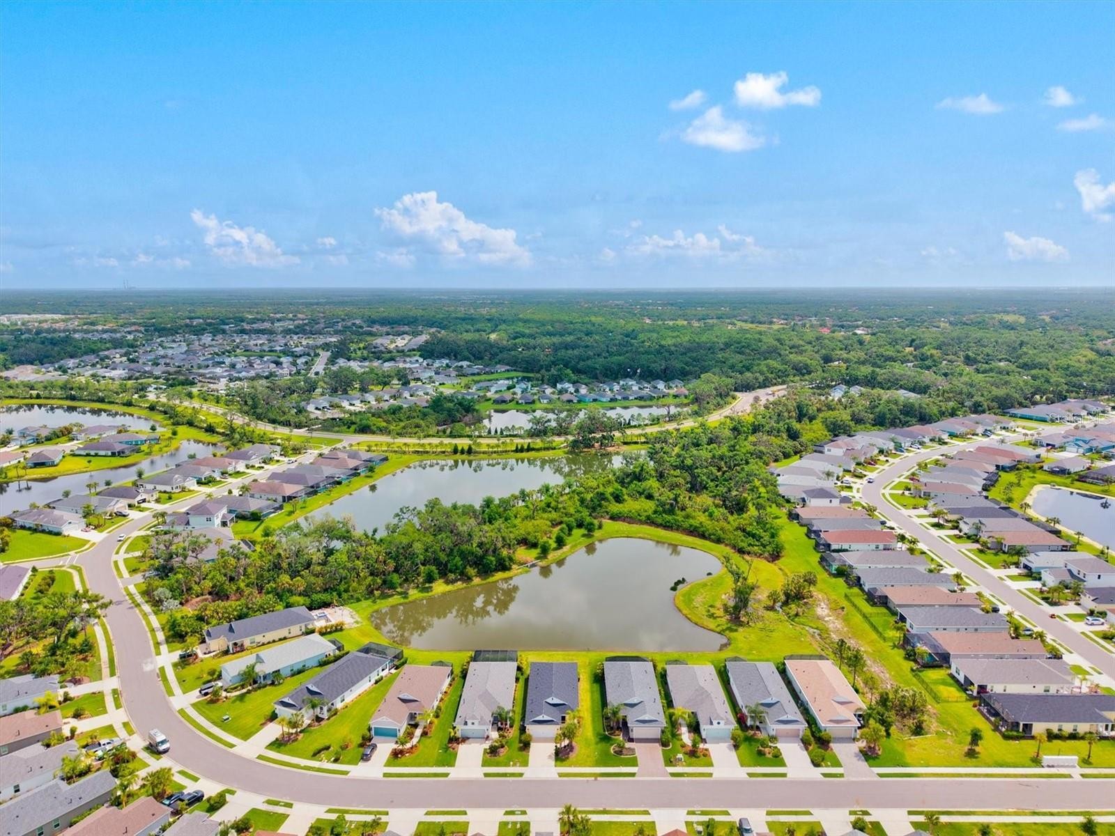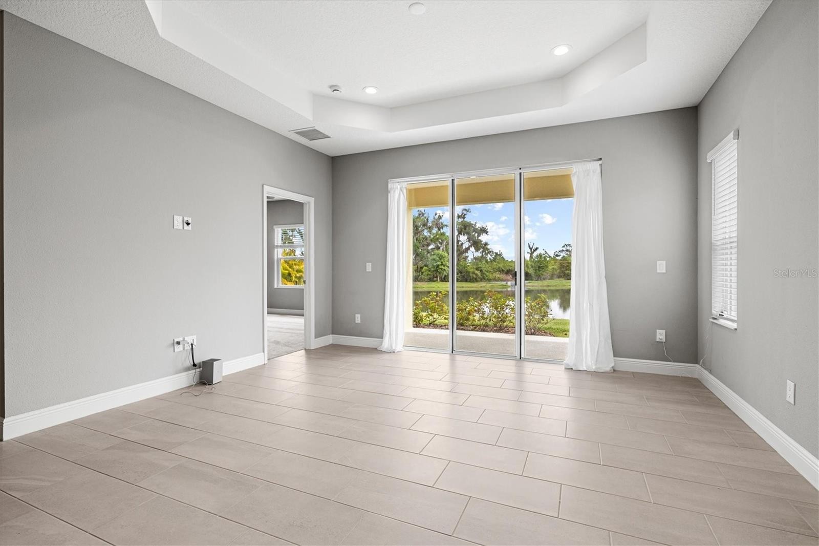 Positioned to capture one of the most desirable water views in the community, this near-new residence offers a seamless blend of modern design, natural light, and effortless Florida living. From the moment you step inside, the open-concept layout draws your eye straight through the main living space to the tranquil water beyond, creating a sense of calm that carries throughout the home. The kitchen anchors the space with clean, contemporary finishes including quartz countertops, shaker-style cabinetry, stainless appliances, and a spacious island designed for gathering. Pendant lighting and a tile backsplash add subtle detail, while the layout flows naturally into the dining and living areas, making both everyday living and entertaining feel easy and connected. The primary suite is thoughtfully positioned to take advantage of the same serene water views and offers generous proportions at nearly 16 by 13 feet. The en suite bath features a well-appointed design with a beautiful walk-in shower, dual vanities, a private water closet, and a walk-in closet, all enhanced by abundant natural light. Additional bedrooms are well-sized and versatile, while a dedicated den provides the flexibility for a home office, reading space, or additional lounge area. The split-bedroom layout offers both privacy and functionality, complemented by brand new carpet that enhances the home’s fresh, move-in ready appeal. Step outside to the covered lanai where the true lifestyle of this home comes to life. Overlooking the water, this space is ideal for morning coffee, evening unwinding, or simply enjoying the peaceful setting and Florida weather year-round. Located within a gated, amenity-rich community, residents enjoy access to scenic walking trails, beautifully maintained landscaping, parks, a resort-style pool, and a fitness center. The setting delivers a true destination feel while still being conveniently connected to everything the area has to offer. With easy access to healthcare, and centrally located between Tampa, St. Petersburg, and Sarasota, this home also benefits from proximity to the rapidly growing Parrish area, including dining, shopping, and the nearby outlet mall just minutes away. A move-in ready opportunity combining water views, thoughtful design, and a lifestyle-driven location.