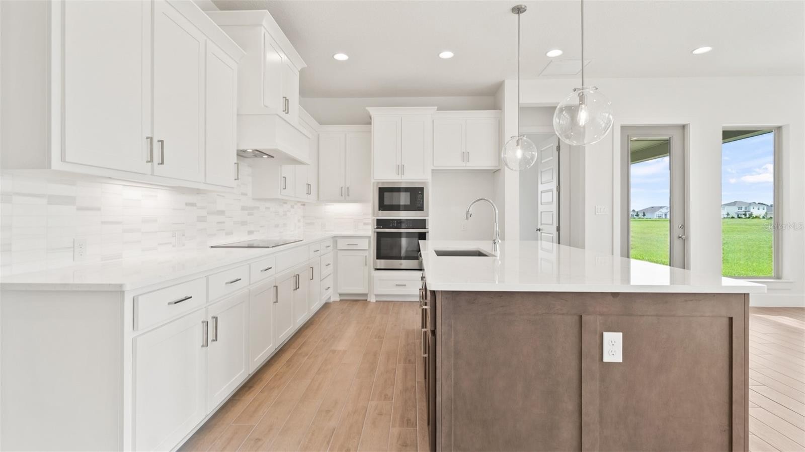 READY FOR MOVE-IN! The front porch opens into a welcoming entryway with an extended tray ceiling that embraces the main hallway. A bonus flex room overlooks the front yard right off the front door. A full guest suite with a private bathroom and ample closet space is off the main hallway. The kitchen features an island with built-in seating and walk-in pantry. The dining area flows from the kitchen to the connecting family room which offers plenty of natural light from its wall of windows and access to the backyard extended covered lanai. The primary bedroom has a wall of windows overlooking the backyard. Double doors lead into the bathroom which hosts dual vanities, a garden tub, glass enclosed shower, two walk-in closets and dual access to the laundry room. Two secondary bedrooms with a shared bathroom complete the home along with ample storage space throughout. The drop zone is located off the two-car garage.