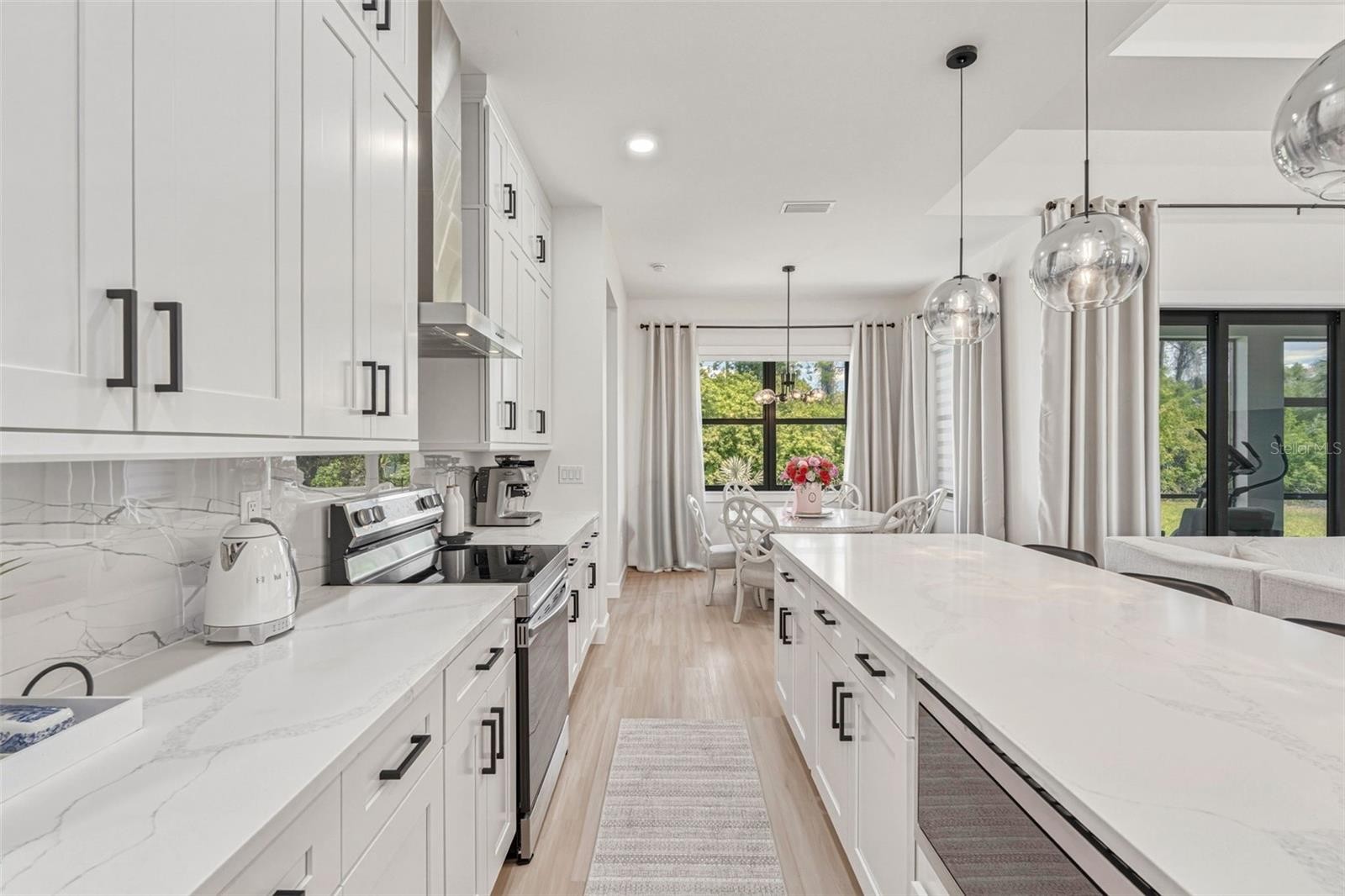 Step into IMPECCABLE MODERN LUXURY with this newly completed architectural stunner, offering 2,525 square feet under roof on a rare HALF-ACRE spread with CITY WATER and NO CDD, NO HOA, and NO FLOOD ZONE. This CUSTOM 3 BEDROOM with a VERSATILE FLEX ROOM home defines SIGNATURE VALUE by including the BUILDABLE ADJACENT LOT, effectively doubling your privacy and investment potential. The interior showcases the PINNACLE OF CONTEMPORARY DESIGN, featuring soaring 14-FOOT TRAY CEILINGS and expansive HURRICANE-RESISTANT WINDOWS that flood the home with natural light. STUNNING ARTISAN GLASS FIXTURES, including ICONIC BUBBLE-STYLE PENDANTS, add a touch of MODERN ELEGANCE to the dining and kitchen areas. At the heart of the home is a GASTRONOMY KITCHEN detailed with GORGEOUS QUARTZ COUNTERTOPS, modern white CEILING-HIGH CABINETRY, and STATE-OF-THE-ART APPLIANCES complemented by an EXTERIOR-VENTED RANGE HOOD, EXQUISITE MARBLE-PATTERNED BACKSPLASH and SPACIOUS PANTRY. The PRIMARY OASIS serves as an elegant sanctuary, offering a HUGE WALK-IN CLOSET and a STUNNING WET-ROOM with a FRAMELESS SHOWER and DESIGNER TILING. Featuring LUXURY VINYL FLOORING THROUGHOUT, CUSTOM DESIGNER CLOSETS THROUGHOUT, and an 80 GALLON NEW HIGH-EFFICIENCY RHEEM Pro-Terra WATER HEATER. Outside, a GRAND LANAI with a FLOATING SWING overlooks your EXPANSIVE DOUBLE LOT, providing a MASSIVE FOOTPRINT for an OVERSIZED POOL and the ULTIMATE OUTDOOR LIFESTYLE. Perfectly located just a short drive from the vibrant WELLEN PARK, DOWNTOWN VENICE AVENUE, and the pristine sands of VENICE, MANASOTA, and ENGLEWOOD BEACHES, this property delivers the very best of the FLORIDA LIFESTYLE. Schedule your private showing today and start enjoying YOUR FLORIDA PARADISE!