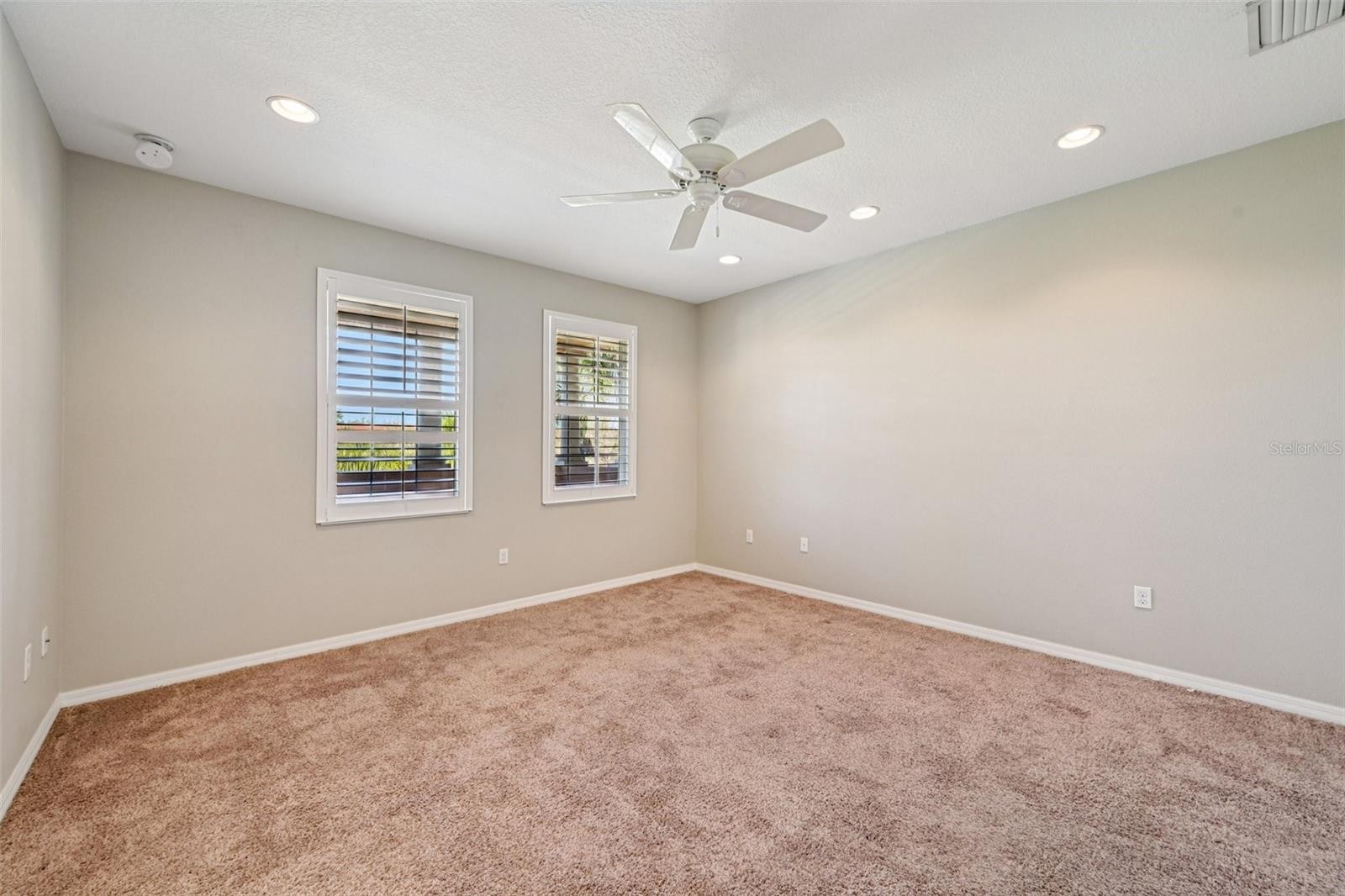 Move In Ready! Looking for a great floor plan with attached garage where you enjoy a heated resort-style pool, grilling area, tennis and pickle ball courts and walking trails? It is here in San Michele. This community is centrally located quick to the Beaches and University Town Center. Offering a townhome with generous 1,660 square feet of well-designed living space, your next home awaits in this thoughtfully laid out residence and community! The residence features three bedrooms, two full and one half bathrooms and a one car attached garage for your convenience. This functional floorplan provides ample room for comfortable daily life. Beautiful Plantation Shutters adorn the large windows to easily allow ample natural lighting. The sunset facing primary bedroom offers a serene retreat, with a spacious layout and massive ensuite bathroom and walk in closet. Two additional bedrooms provide flexible usage, whether as a home office, guest room, or personal retreat. The bathrooms are tastefully appointed, ensuring modern convenience and privacy. The open concept design seamlessly integrates the living, dining, and cooking areas, creating a harmonious flow throughout the home. Abundant natural light and high-quality finishes contribute to the inviting ambiance. The kitchen offers a breakfast bar and an extra large walk in pantry/storage area. The laundry is inside and pockets off the kitchen area. The private one car attached garage allows you to enter the home directly for both security and convenience. This townhome presents an ideal living situation for those seeking a well-appointed, comfortable, and adaptable residence close to the beaches yet secure from weather events. A single bay garage is located at the rear of the building and attached to enter the residence. There are additional spaces for driveway parking as well. The lake facing front door has a covered porch large enough to enjoy patio seating while relaxing to watch the Sunset outdoors or just observe the natural habitat along the shoreline of the lake. You'll appreciate maintenance free living at this picturesque community with playground, community pool and tennis available for your enjoyment.