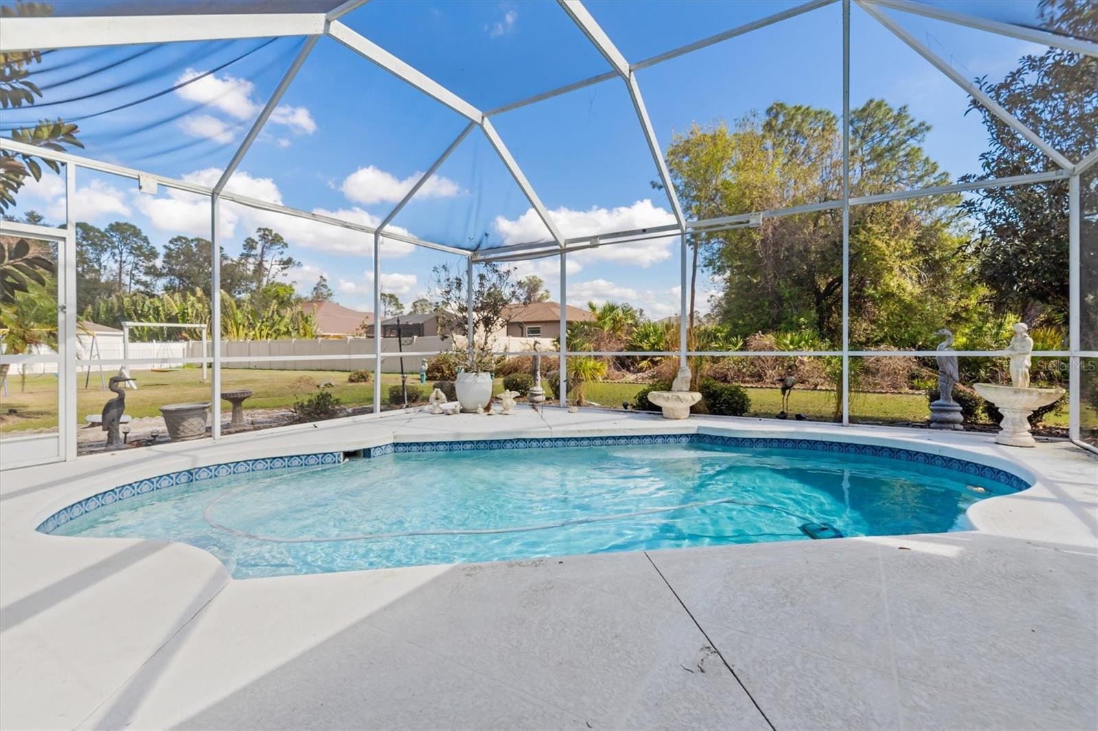 This charming 3-bedroom, 2-bathroom home in Florida is a perfect blend of comfort and convenience. The open floor plan features a spacious living room and family room, ideal for both relaxation and entertaining. The primary bedroom offers a serene retreat with a stunning view of the sparkling inground pool. Step outside to the lanai, where you can enjoy outdoor living while overlooking the expansive backyard. The home sits on two large lots, providing ample space for outdoor activities, and includes a handy storage shed for extra storage. A 2-car garage adds to the home’s functionality. Located with easy access to I-75, as well as shopping centers and beautiful beaches just a short drive away, this home offers both tranquility and convenience. With split bedrooms, privacy is ensured while still offering an inviting space for the entire family. This property is an ideal Florida retreat!