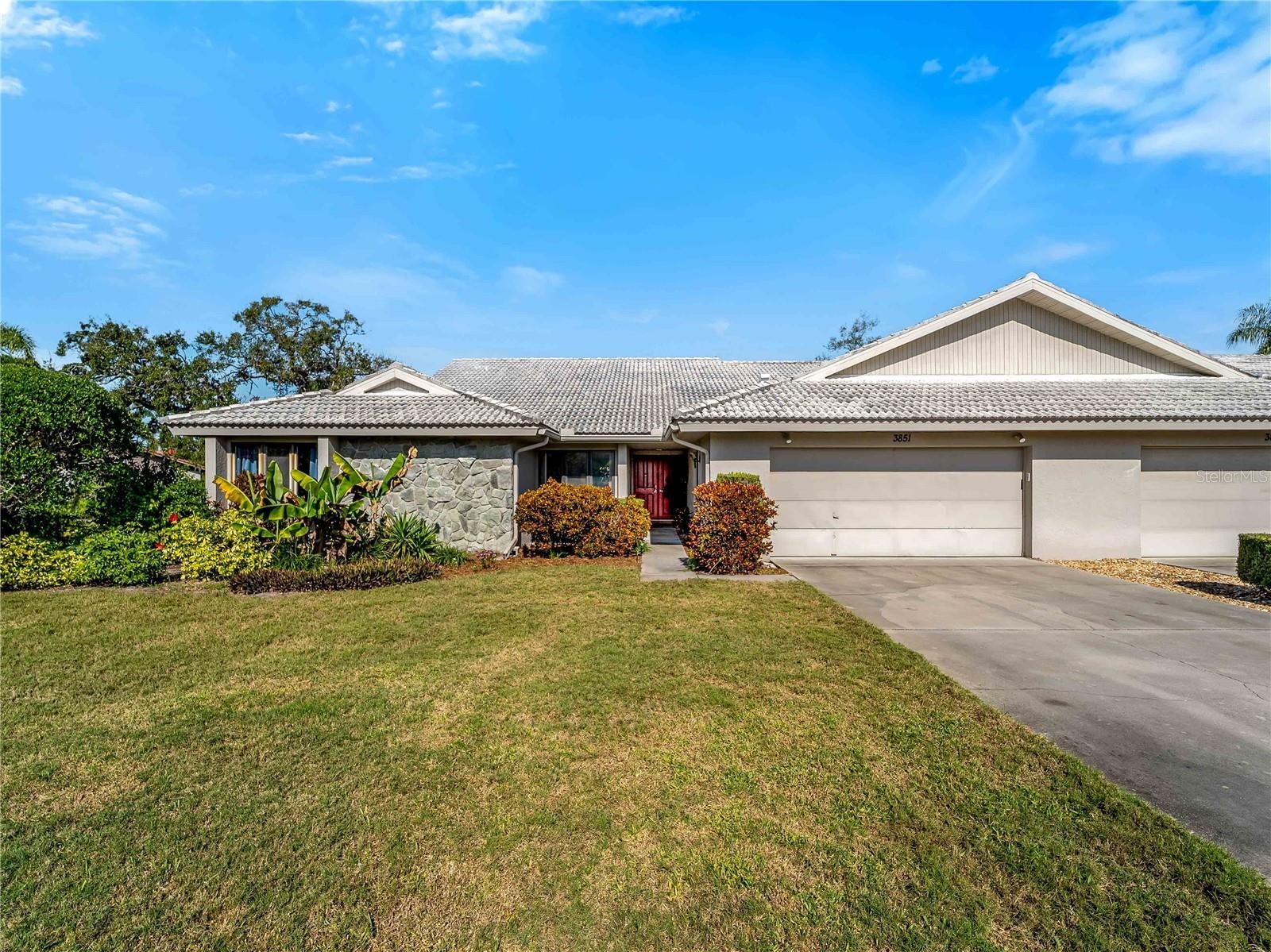 One of the most desirable 55+, maintenance free communities in Sarasota, this conveniently located villa offers the perfect sanctuary for enjoying the Florida lifestyle. You will be impressed by the spacious interior, featuring brand-new carpet and fresh paint, with a brand-new roof scheduled for completion at the end of March. The flexible 3-bedroom/2-bathroom or 2-bedroom/2-bathroom plus den floor plan provides 2,433 square feet of living space. The Florida room showcases relaxing views of lush landscaping, creating an ideal spot to unwind. The living room features soaring vaulted ceilings and is perfect for entertaining family and guests, while the open formal dining room is ideal for holiday and family gatherings. Additional highlights include a spacious two-car garage with abundant storage. The community pool is conveniently located right across the street, and residents may enjoy optional membership in the Lakeshore Village Association, which offers a clubhouse with an additional pool, tennis and pickleball courts, pool table, and table tennis for a small annual fee. World-famous Siesta Key Beach is just a short drive away. Downtown Sarasota, shopping, dining, golf courses, I-75 access, and outstanding medical facilities are all close by. Small pets are welcome, and furnishings are available if desired.