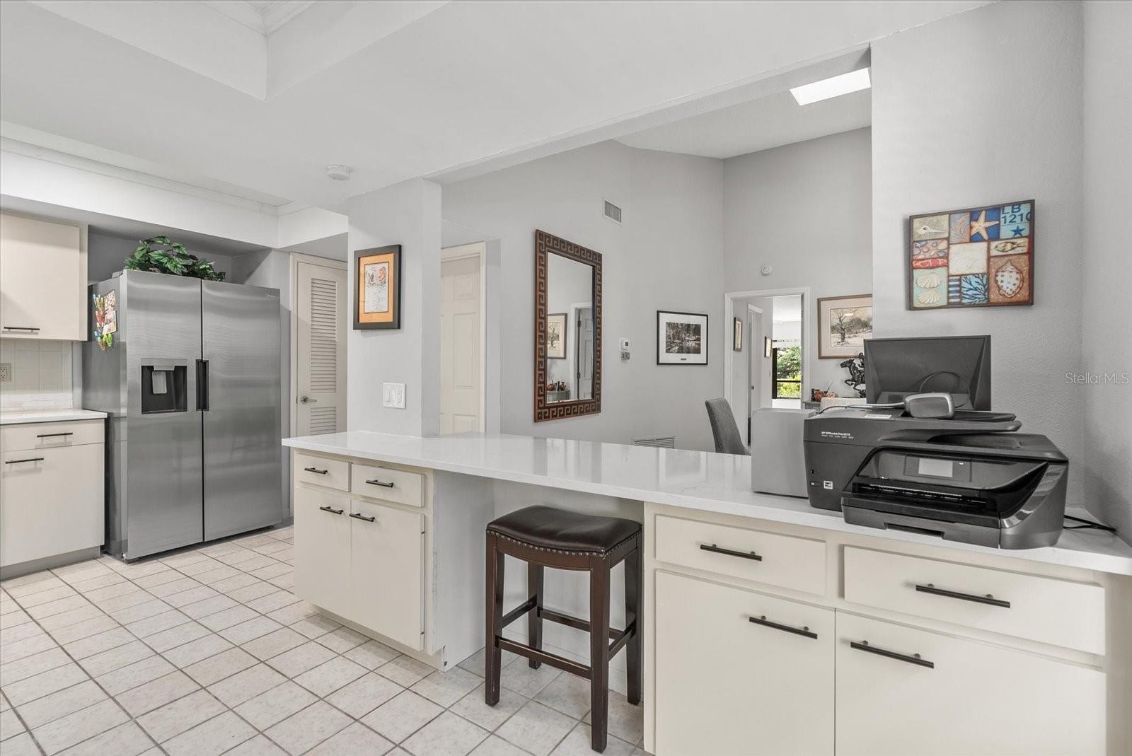 Lakeshore Village | 2 Bed / 2 Bath Villa | 55+ Community From the moment you step inside, serene lake views and soaring cathedral ceilings set the tone for this beautifully renovated 2-bedroom, 2-bath villa in the sought-after Lakeshore Village community ? minutes from the world-famous white sands of Siesta Key. Thoughtfully reimagined in 2023, this villa was taken down to the studs in all the right places. The kitchen was opened to the living area and completely transformed with quartz countertops, new cabinetry, designer backsplash, stainless appliances, updated lighting, and a new ceiling with fan. Both baths received full upgrades including granite countertops, new sinks, faucets, and shower doors ? and the primary bath now features a luxurious soaking tub. New flooring flows throughout. Three oversized skylights and abundant windows bathe the interior in natural light, while three large sliding glass doors retract fully to connect the living space to a 23-foot tiled lanai ? expanding the total living area to over 1,800 sq. ft. The split-bedroom floor plan offers privacy for owners and guests alike, and the inside laundry room adds everyday convenience. A 2-car garage with overhead storage completes the package.