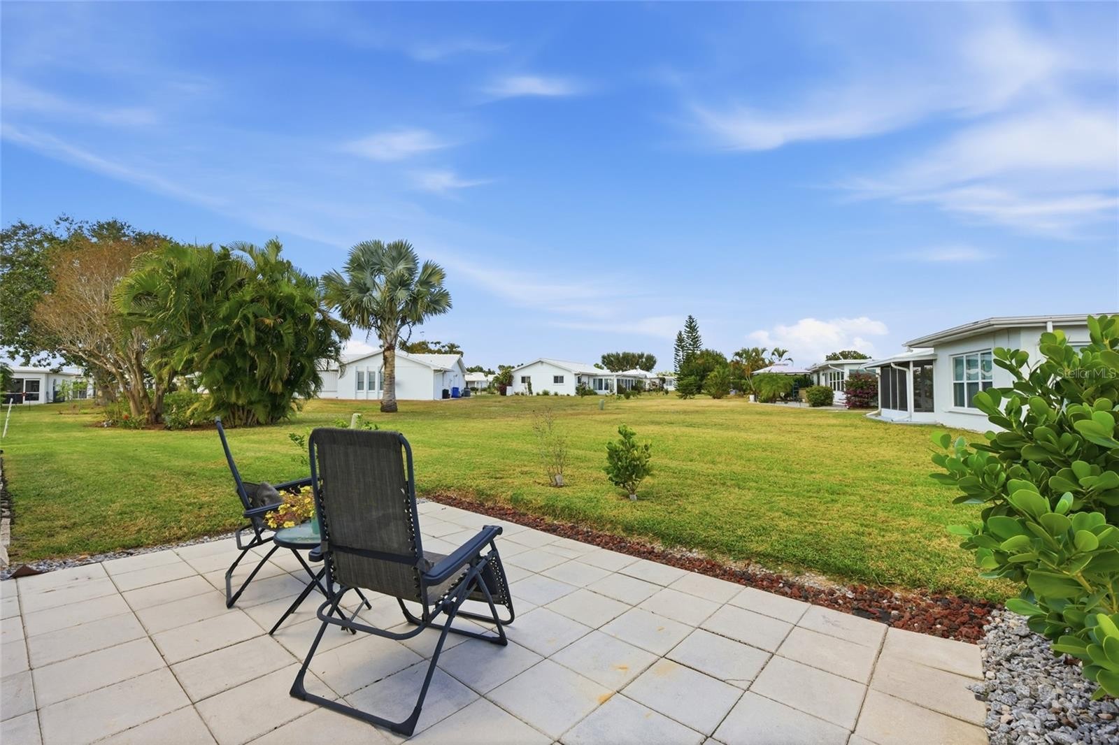 One or more photo(s) has been virtually staged. Welcome to River Isles, a delightful 55+ community of single-family residences nestled along the picturesque Braden River. Residents love the friendly character of the neighborhood, its challenging 9-hole executive golf course (golf membership not required), and its very affordable HOA fees of just $180 per quarter. This updated 2-bedroom, 1.5-bath home offers an efficient and comfortable floor plan with many recent improvements, including: New LVP Flooring (2025), double-door counter-depth refrigerator (2025), water heater (2025), Hurricane Impact Windows (2016), and a Tile Roof (2016). An expansive 10 x 25 tiled Florida Room overlooks tranquil garden views, expansive lawns, and visiting tropical birds. Large picture windows fill the space with natural light, while Custom Louvered Blinds provide excellent light and privacy when desired. A convenient kitchen pass-through makes entertaining easy. The open-concept living room flows into the dining area and Florida Room, creating a bright, welcoming gathering space. Two generously sized bedrooms are served by a full bath with tub/shower. A second bath and laundry area are conveniently accessible from both the kitchen and garage. Step outside to a large outdoor paver patio, perfect for relaxed conversation, morning coffee, or weekend BBQs. A unique bonus feature is the sun porch with a drive-in golf cart garage, offering flexible space beyond traditional storage. In addition to housing your golf cart and clubs, this area can easily serve as a craft room, hobby space, or light fitness area. Golfers will appreciate that the first tee is just a one-minute cart ride away. After a round of golf, enjoy the heated and cooled resort-style pool. The clubhouse also offers shuffleboard courts, a fitness center, card room, and an impressively stocked library, all supported by an active community that is very golf-cart friendly. The home is vacant and move-in ready.