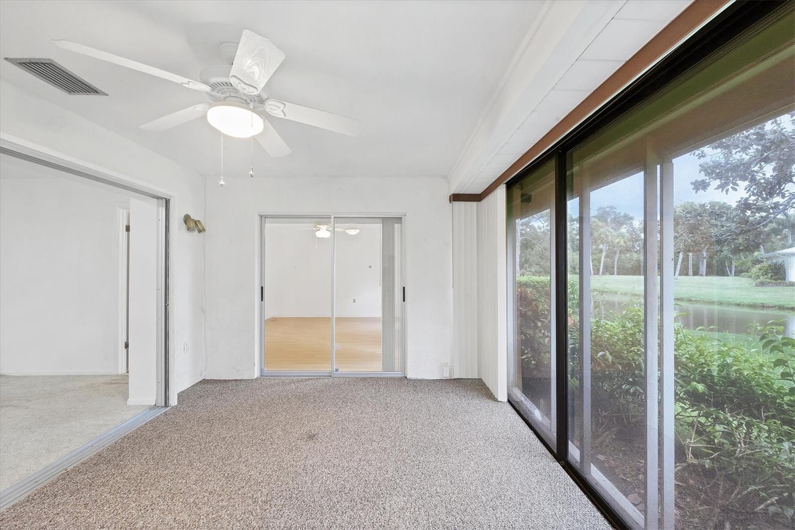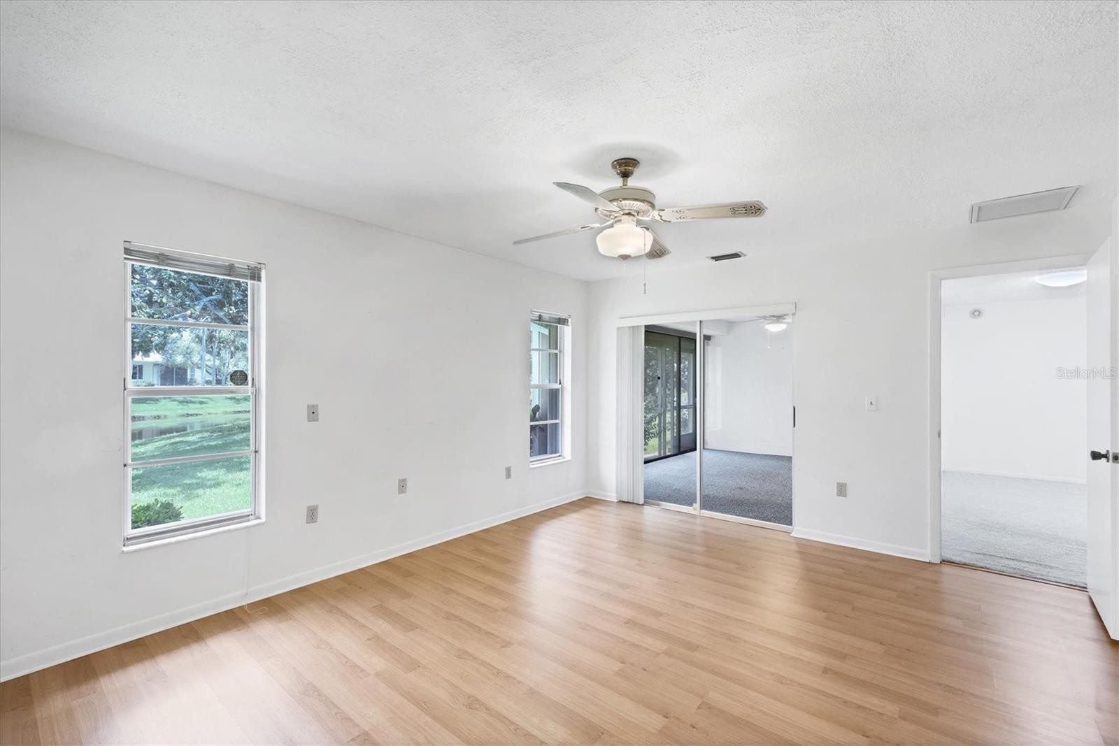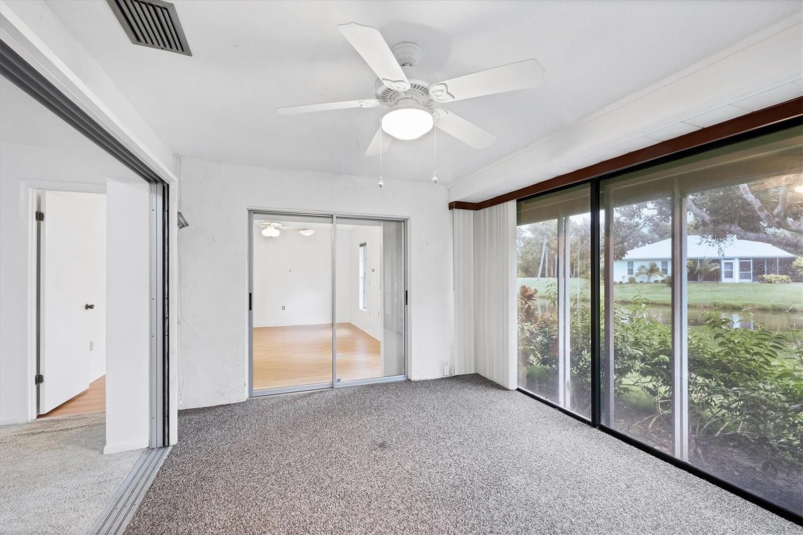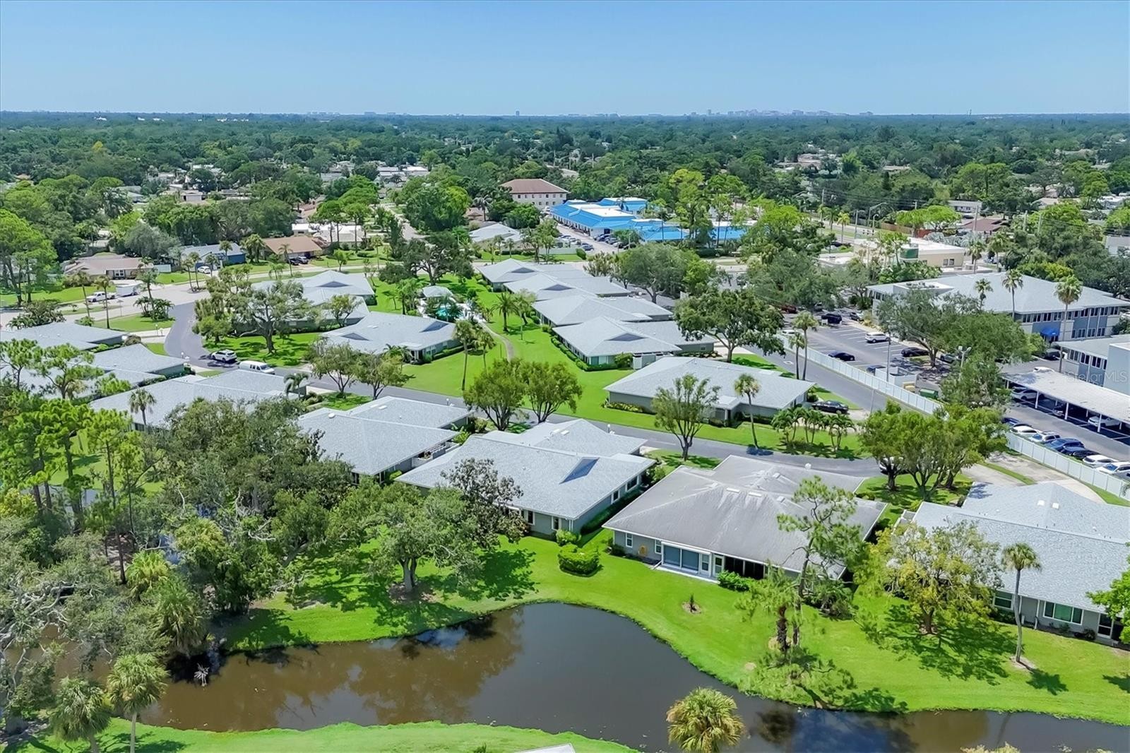 Tucked within Center Gate Village, this inviting home is ready for your updates—featuring a NEW ROOF (2023) and NEW A/C (2022), two separate living spaces, a bright Florida room, and peaceful pond views that make every day feel a little more relaxed. Step inside and you’re welcomed by a spacious living room at the front of the home, where natural light fills the space and flows easily into the dining area. A wide pass-through window from the kitchen to the dining room keeps the conversation going while meals are prepared. The kitchen provides ample cabinetry, generous counter space, and, on the opposite side, a breakfast bar with space for seating that opens to the great room. Just off the kitchen, the laundry room is equipped with extensive cabinetry for storage, a utility sink, and a countertop with additional storage underneath—keeping everything organized and within reach. The great room offers a comfortable second living space with plenty of room for seating and the option to add a casual dining area. Nearby, the second bedroom is conveniently positioned close to the full guest bathroom, making it ideal for visitors or a private home office. The primary bedroom is set at the back of the home and features sliding doors to the Florida room, a walk-in closet, and an en-suite bathroom with a vanity area, linen closet, and step-in shower. Accessible from both the great room and the primary bedroom, the Florida room is an inviting spot to relax year-round while overlooking the open grassy yard, mature trees, and glistening pond beyond. Center Gate Village residents enjoy access to a community pool and a location that truly delivers on convenience. Shopping, dining, medical facilities, and access to I-75 are right outside your door, while US-41 and the beautiful Gulf beaches are only a short drive west. Make this inviting home your own and start enjoying the best of Sarasota living!